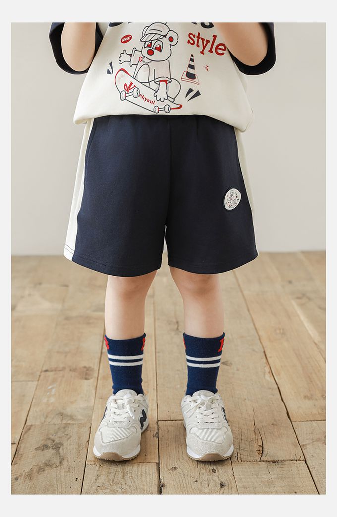 腰鬆緊側撞色拼接運動短褲-老鼠-藏青