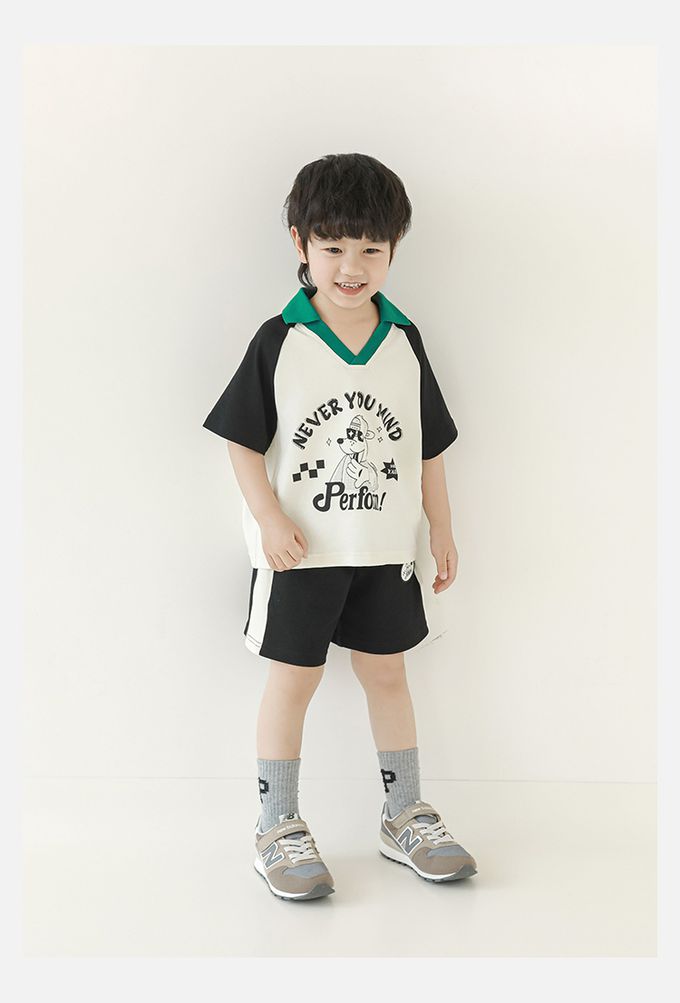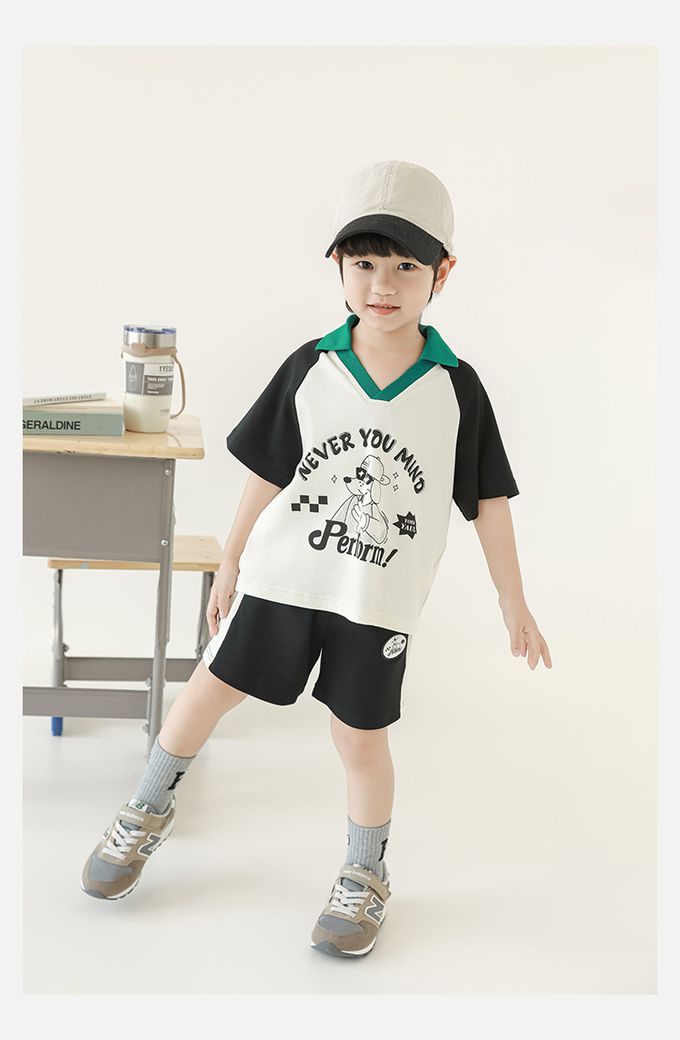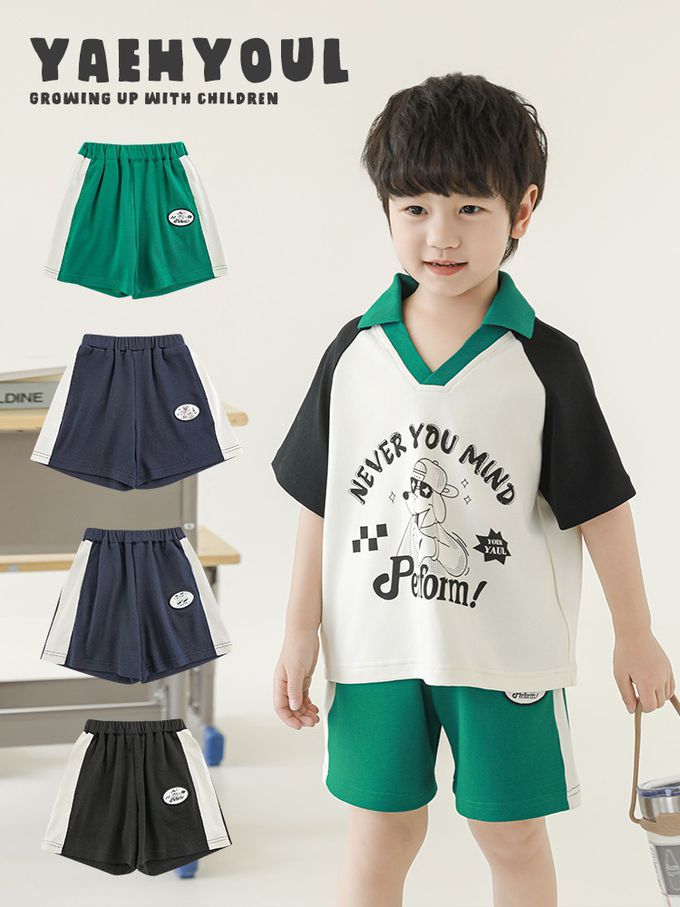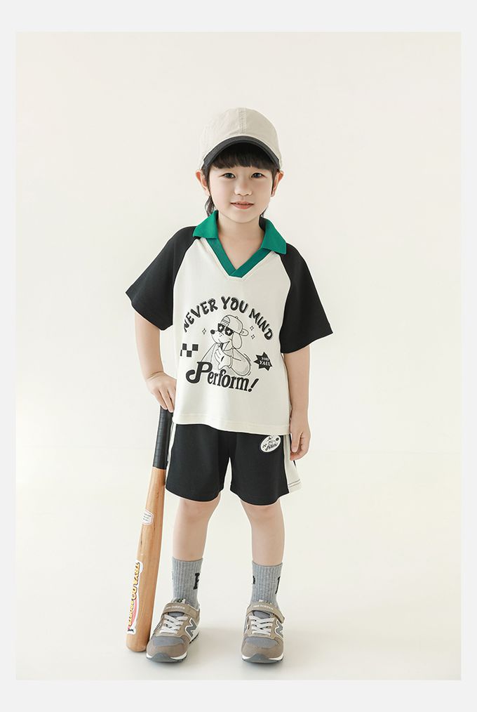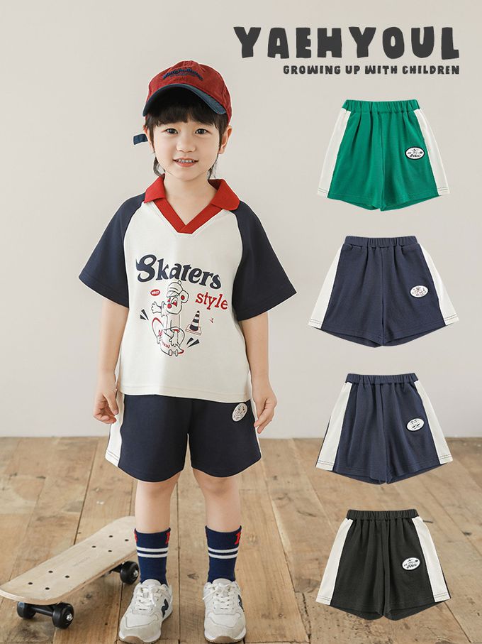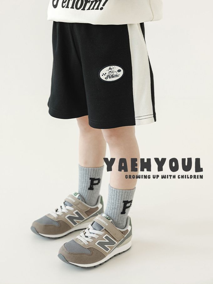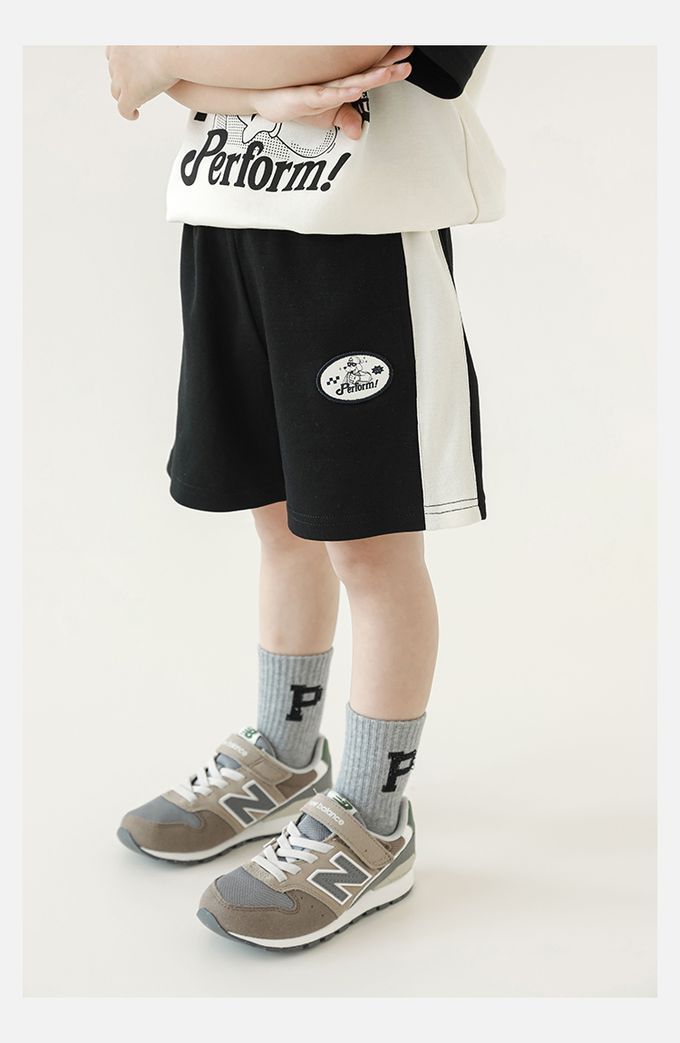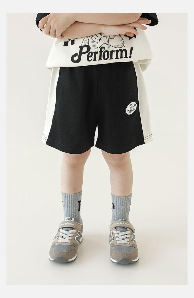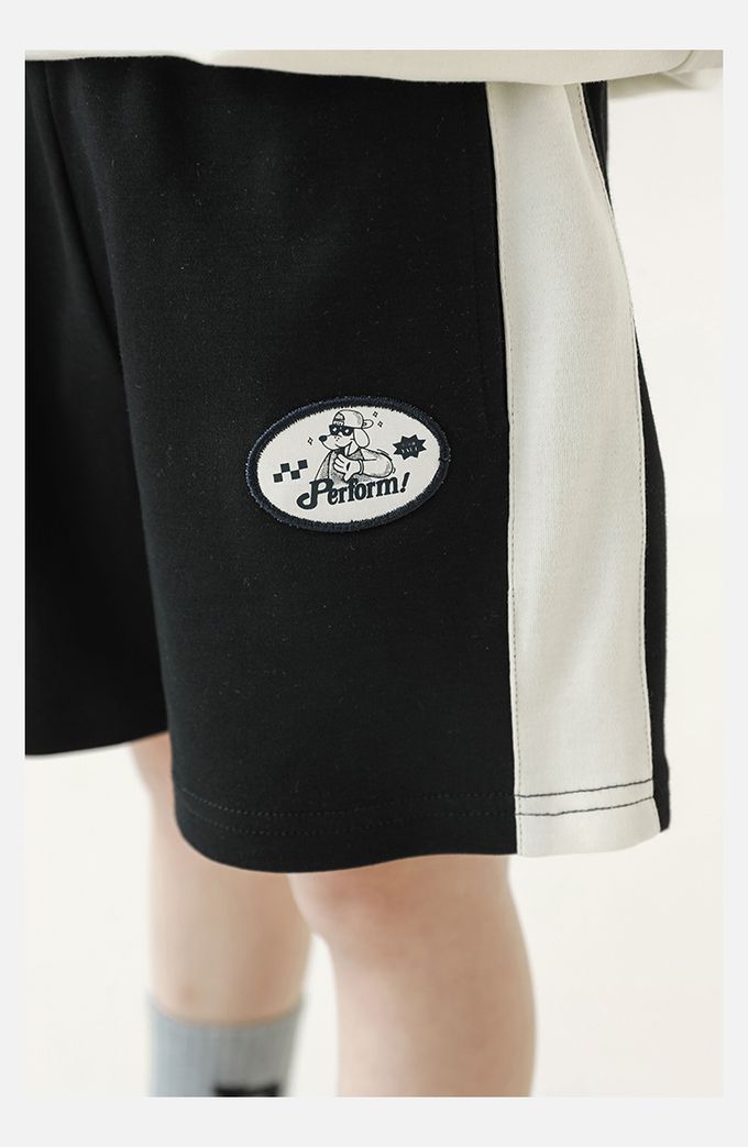 腰鬆緊側撞色拼接運動短褲-小狗-黑色
