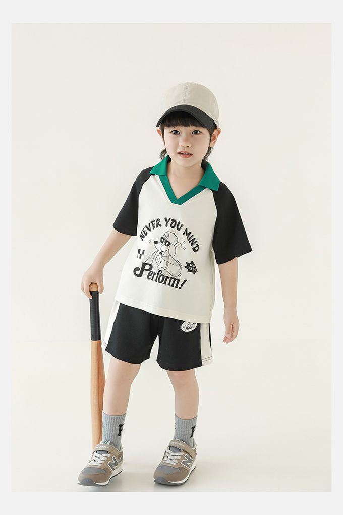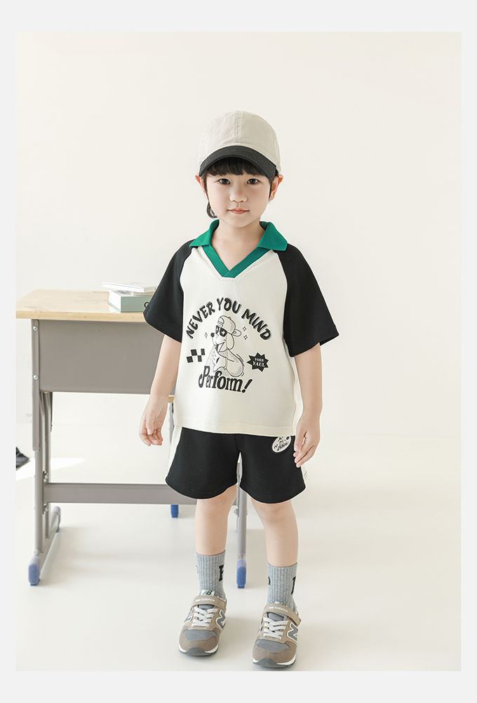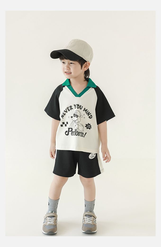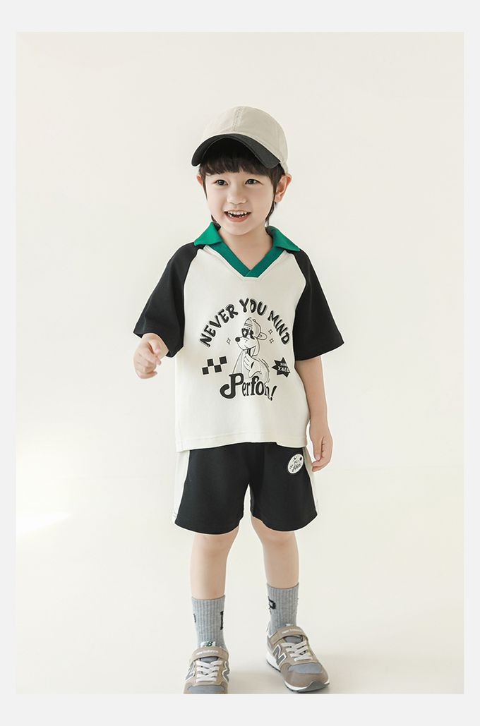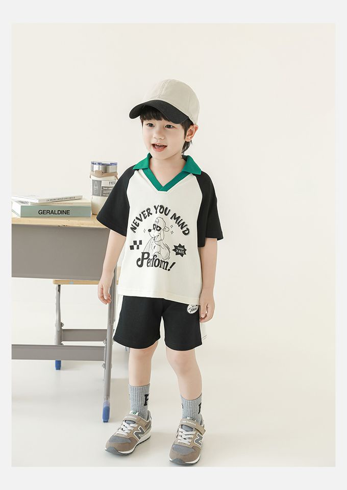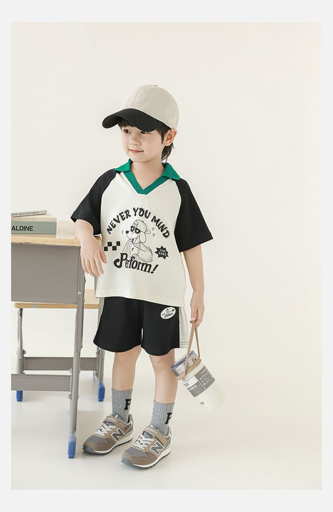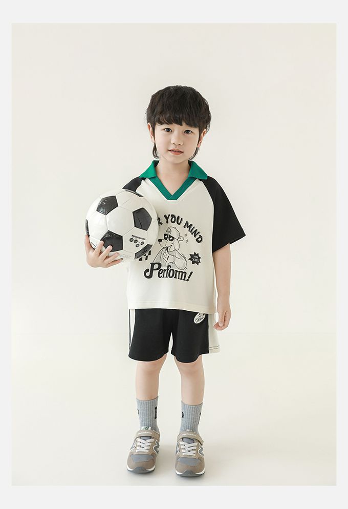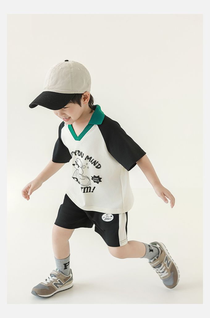 腰鬆緊側撞色拼接運動短褲-小狗-黑色