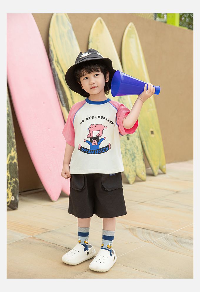 TONGMO - 純棉腰鬆緊休閒短褲-拼色直條-葡萄
