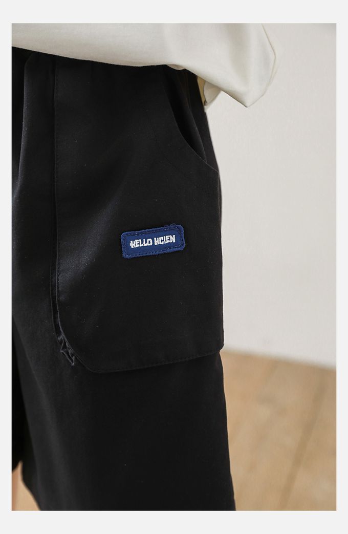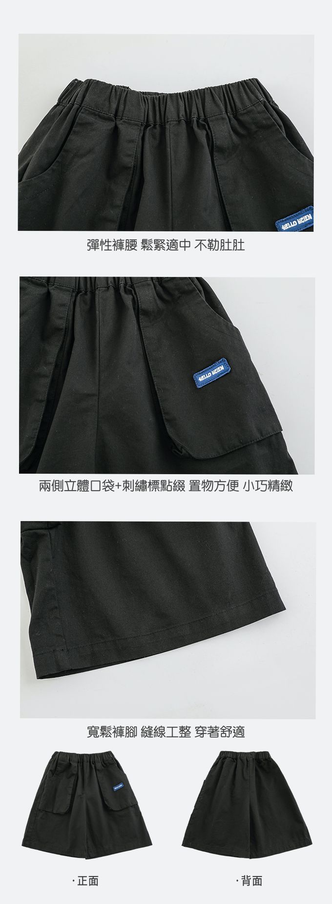純棉腰鬆緊休閒短褲-雙口袋-黑色