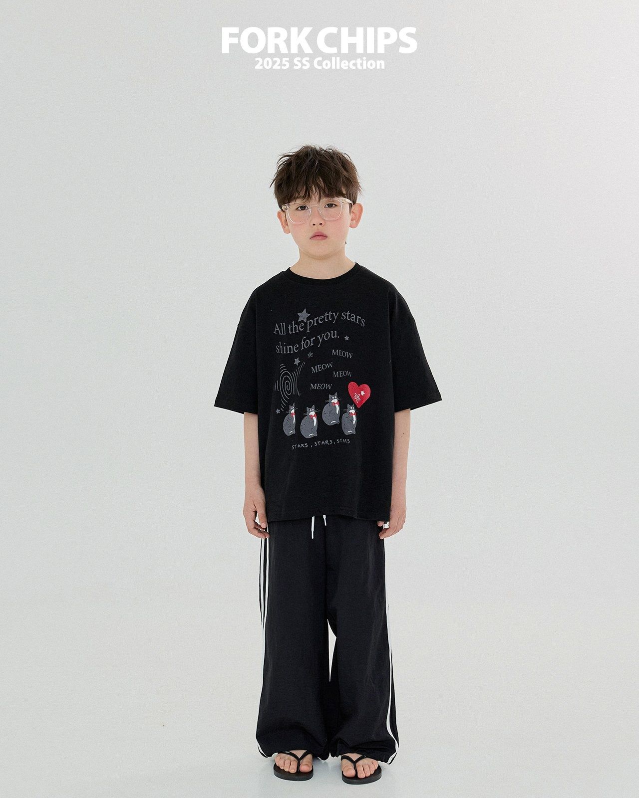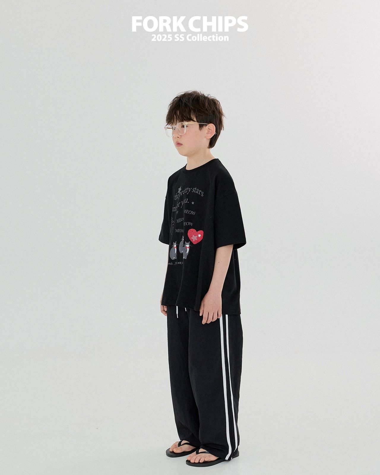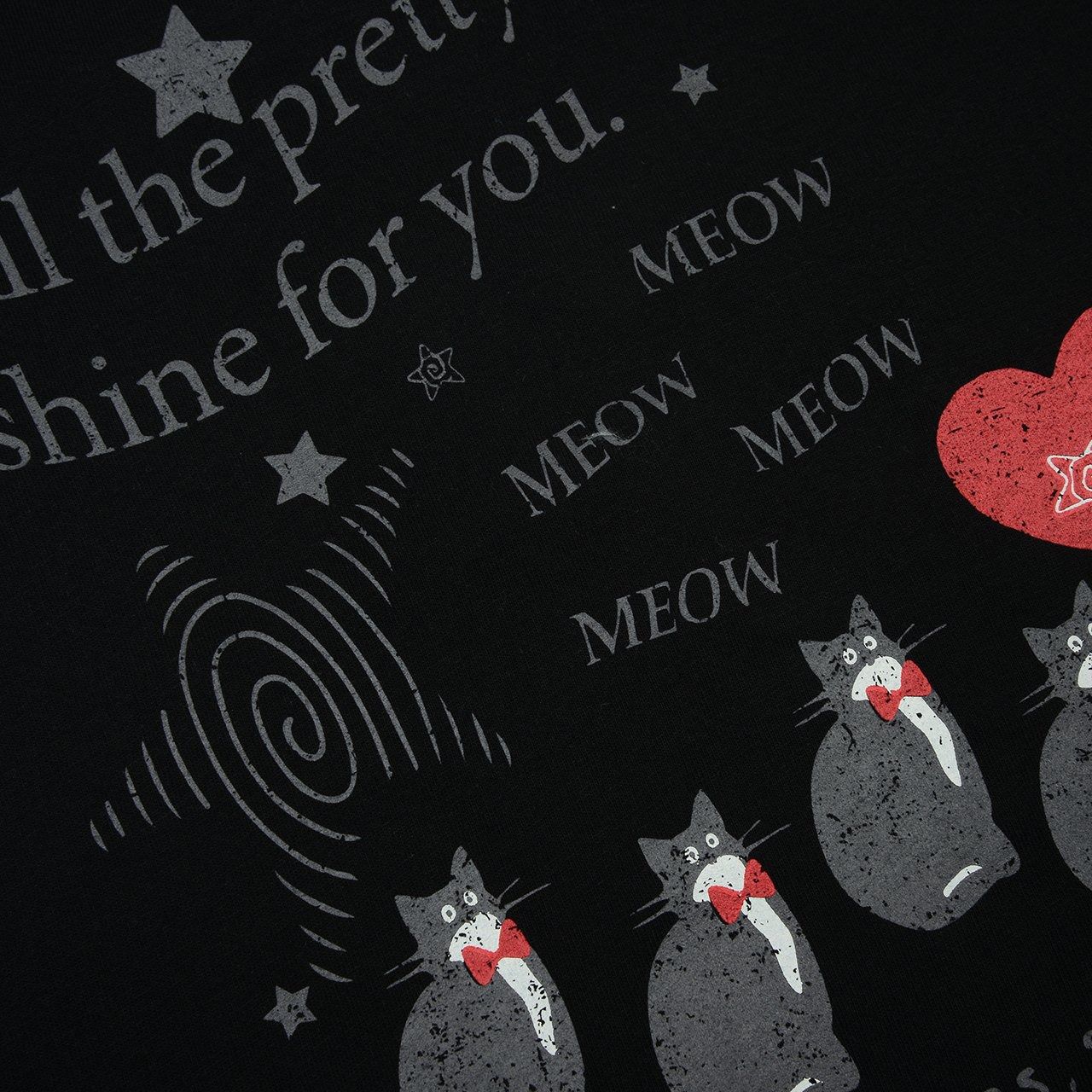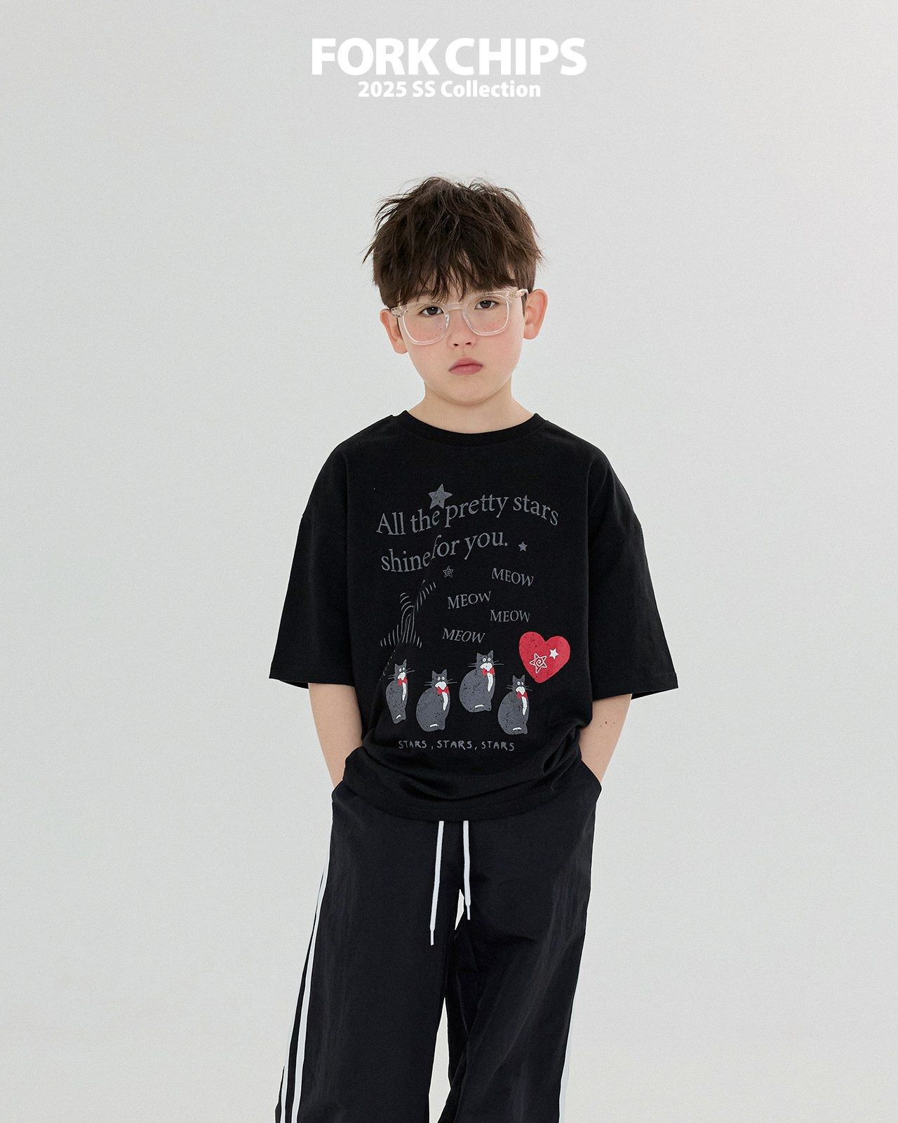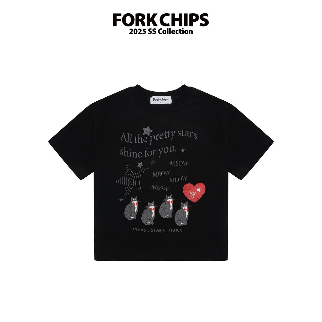 韓國 FORK CHIPS - 貓咪的愛寬鬆短袖上衣-黑