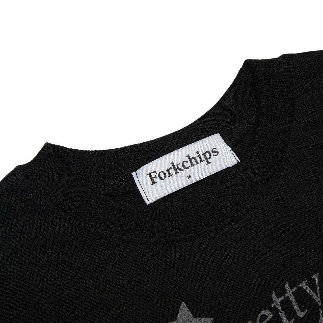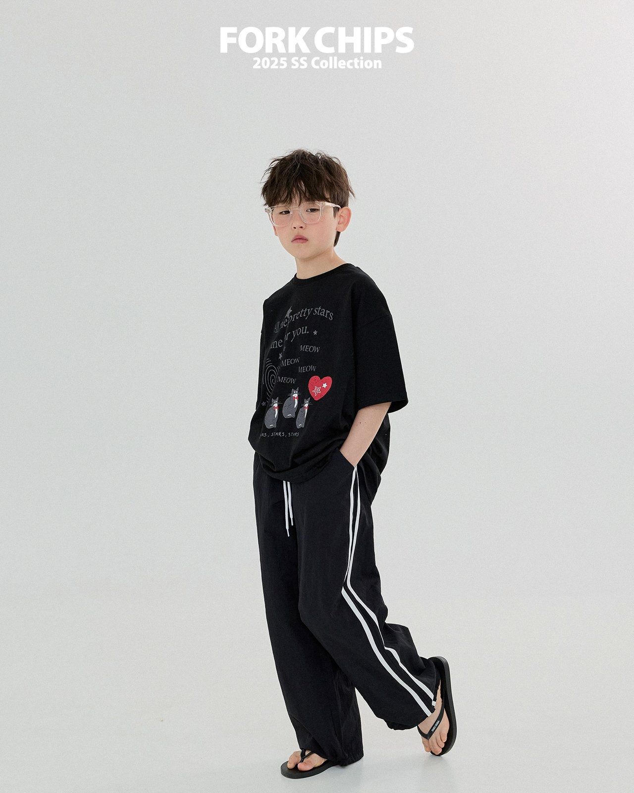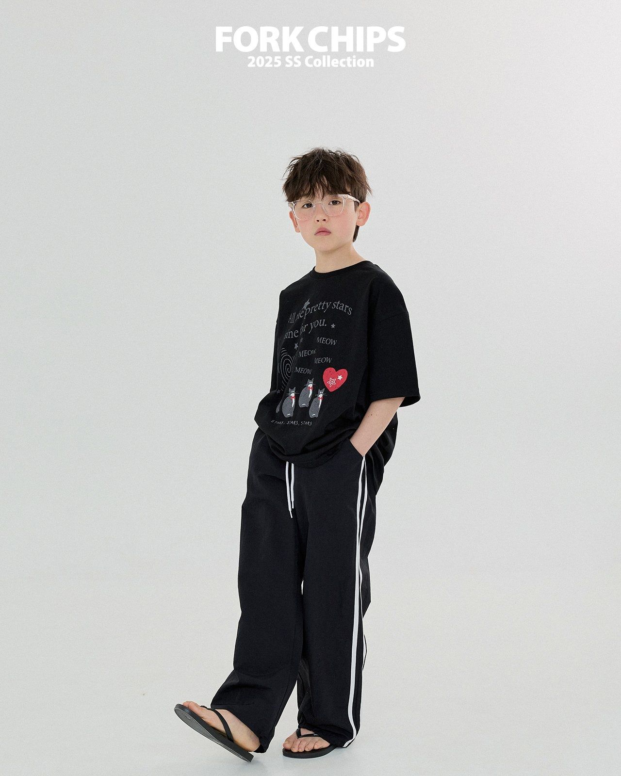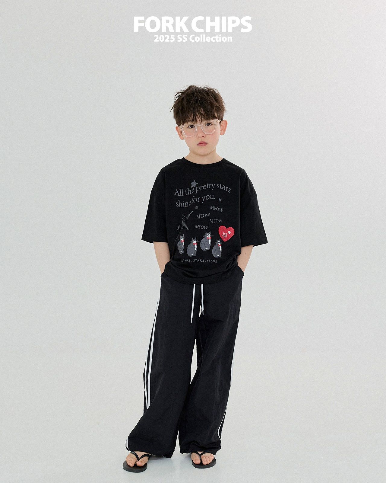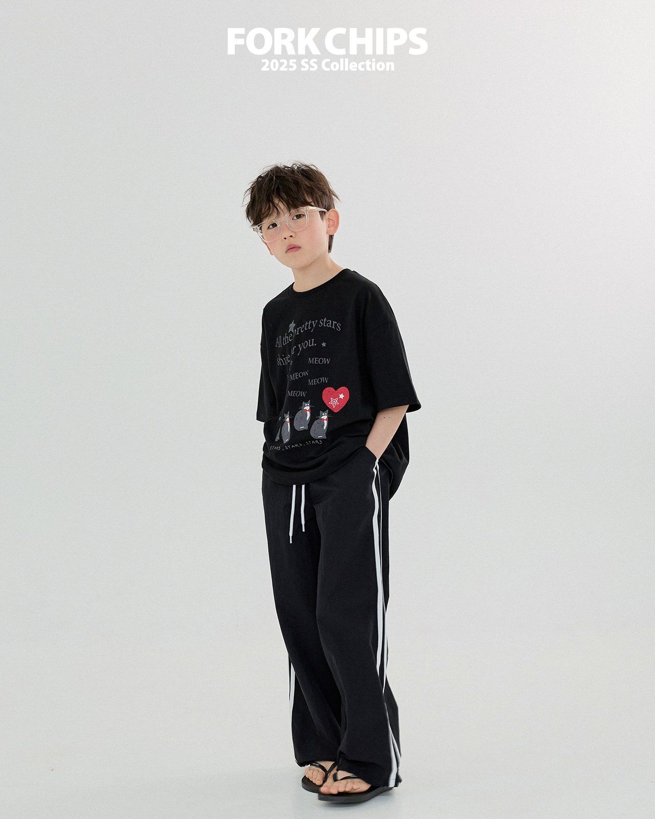韓國 FORK CHIPS - 貓咪的愛寬鬆短袖上衣-黑