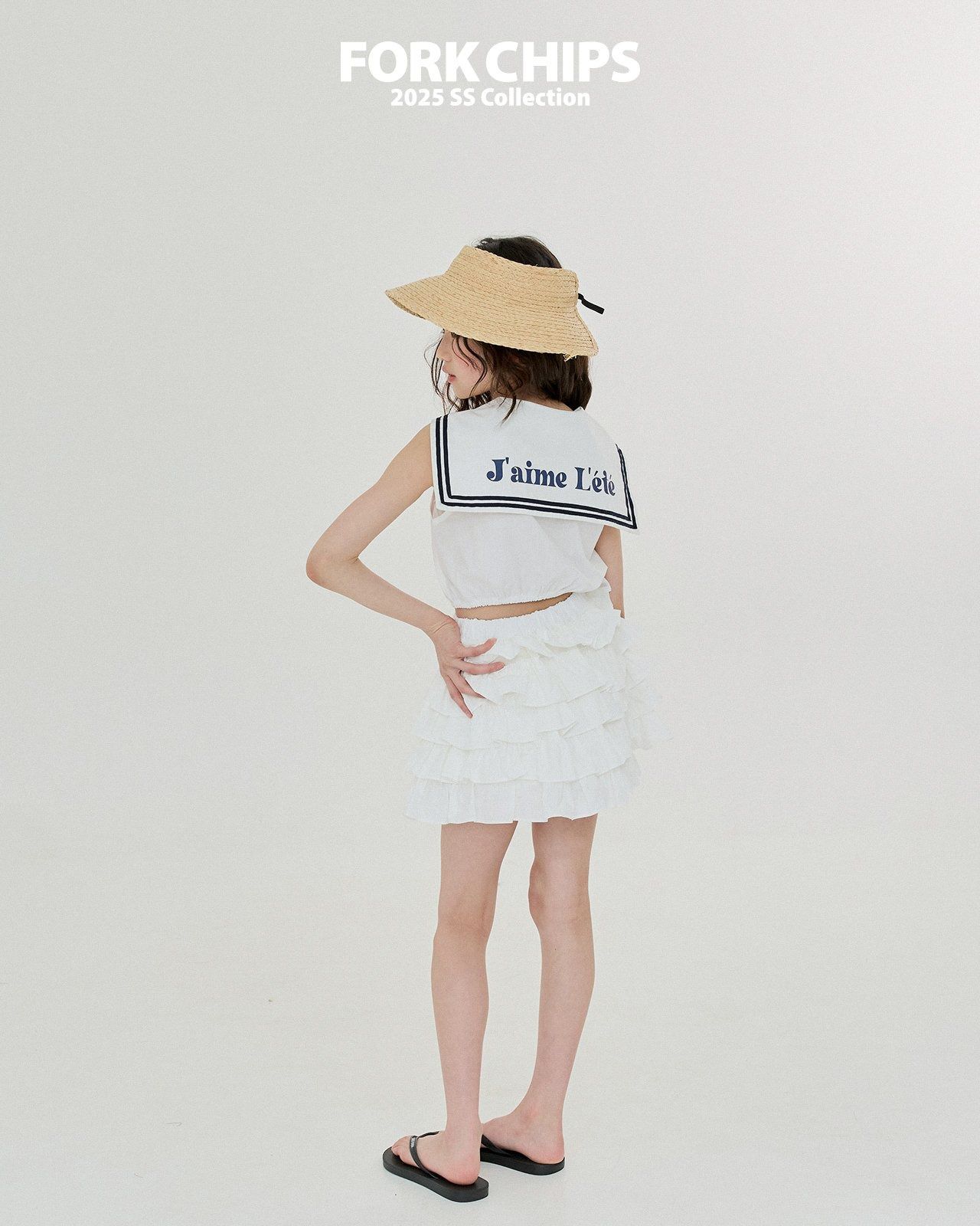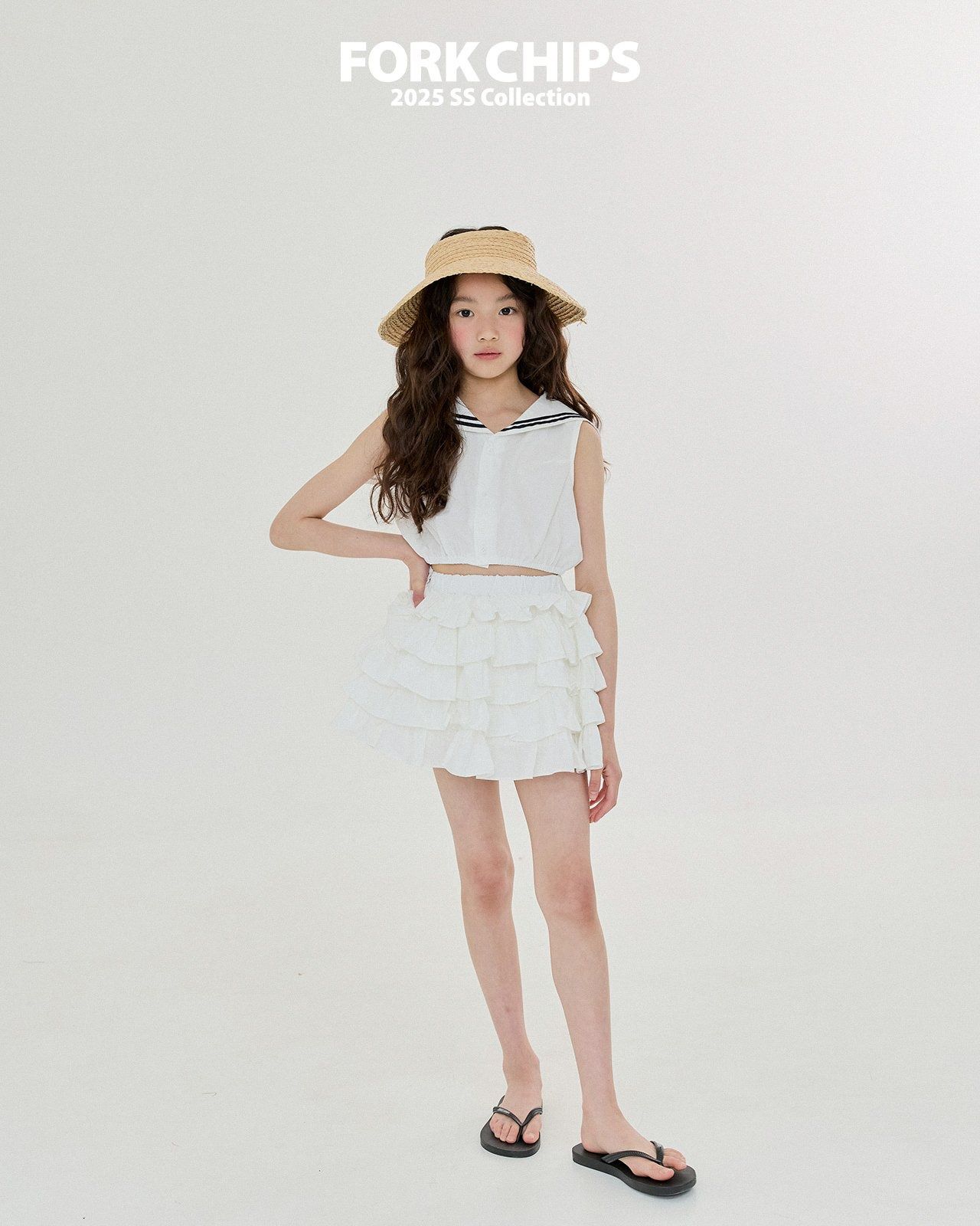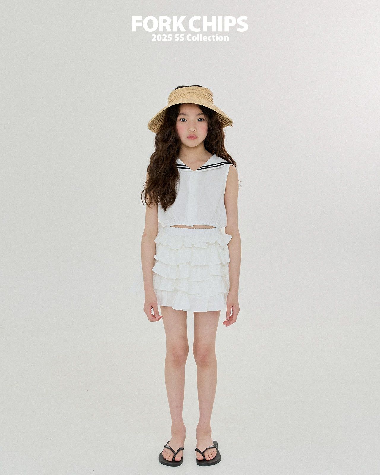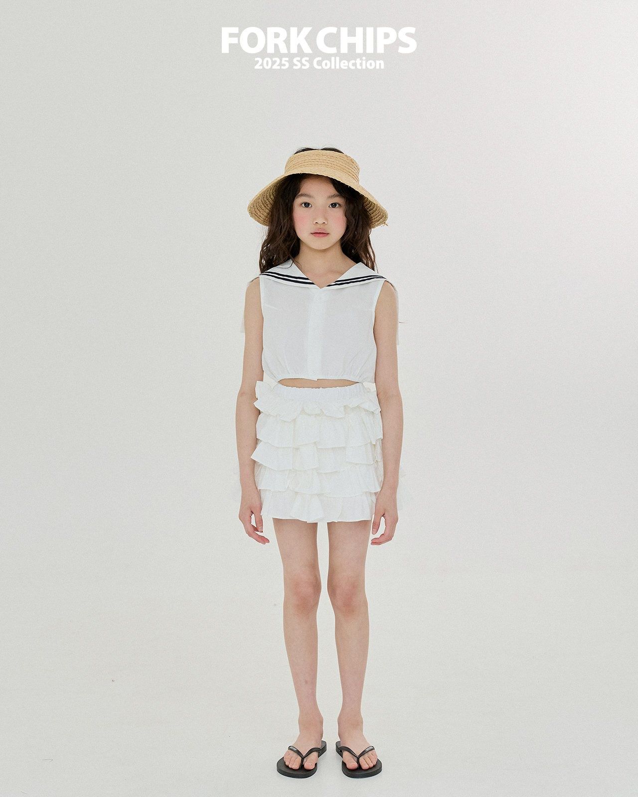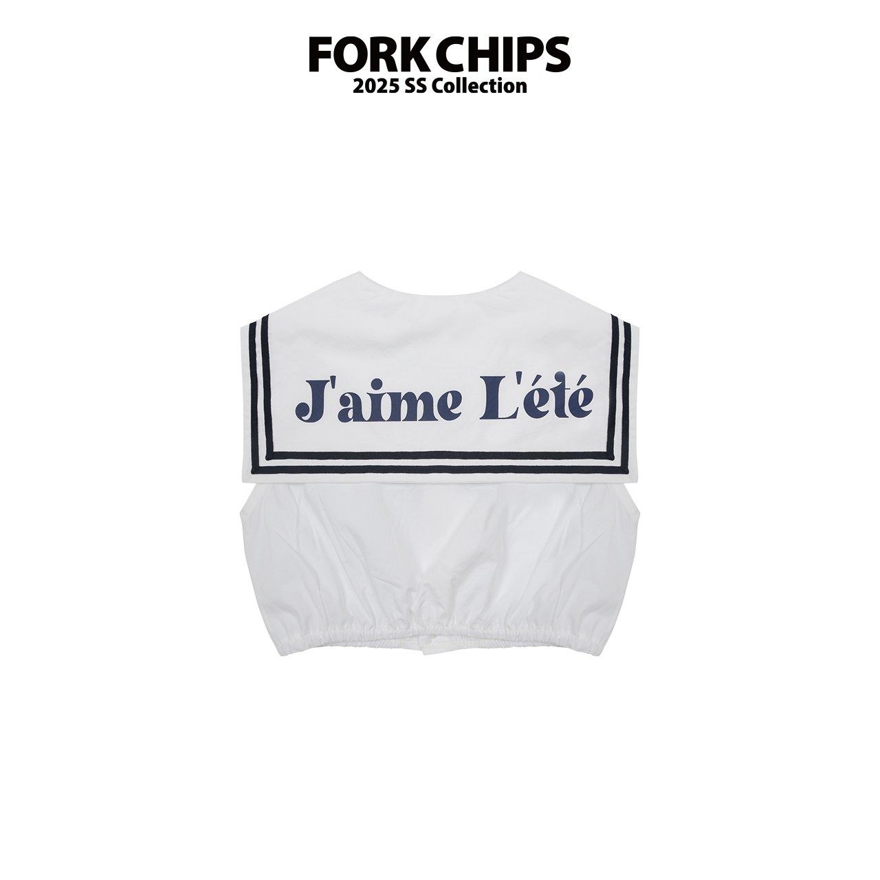 韓國 FORK CHIPS - 水手翻領縮無袖襯衫-白