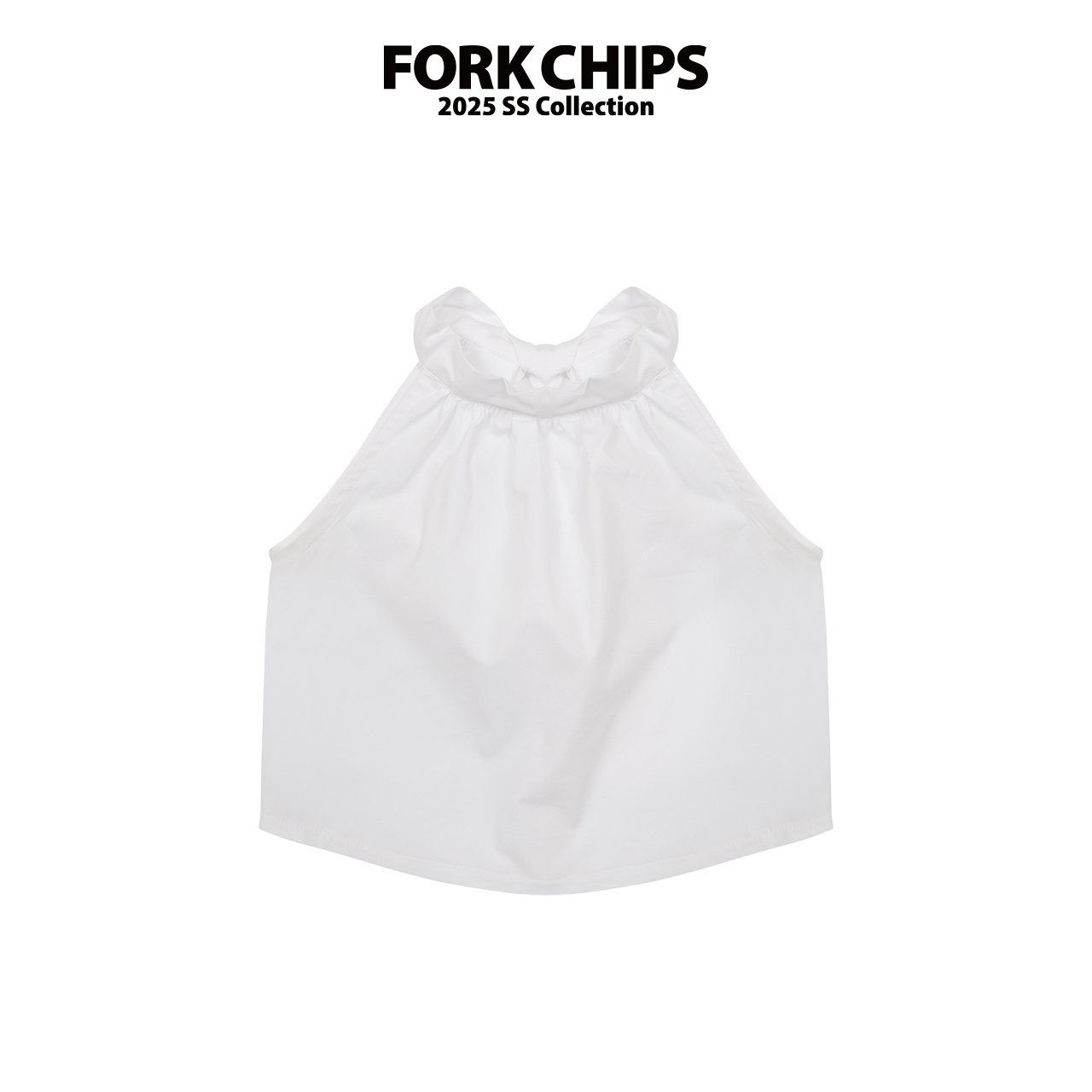 韓國 FORK CHIPS - 優雅綁帶抓褶削肩背心-白