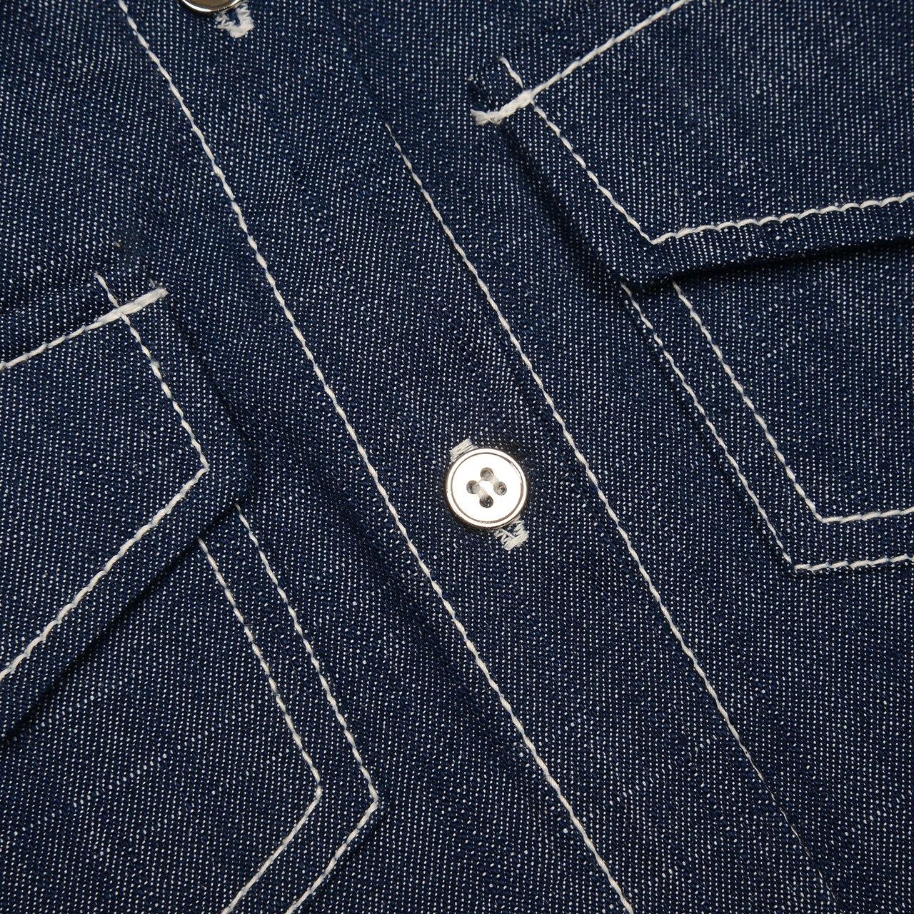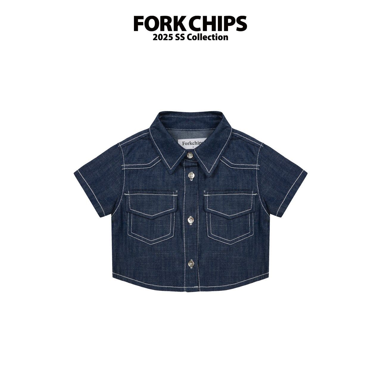 韓國 FORK CHIPS - 經典修身丹寧翻領襯衫-深藍