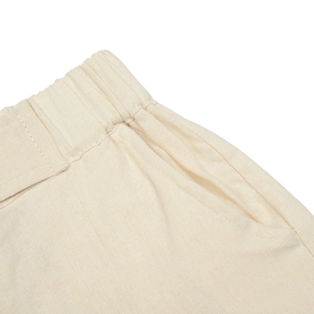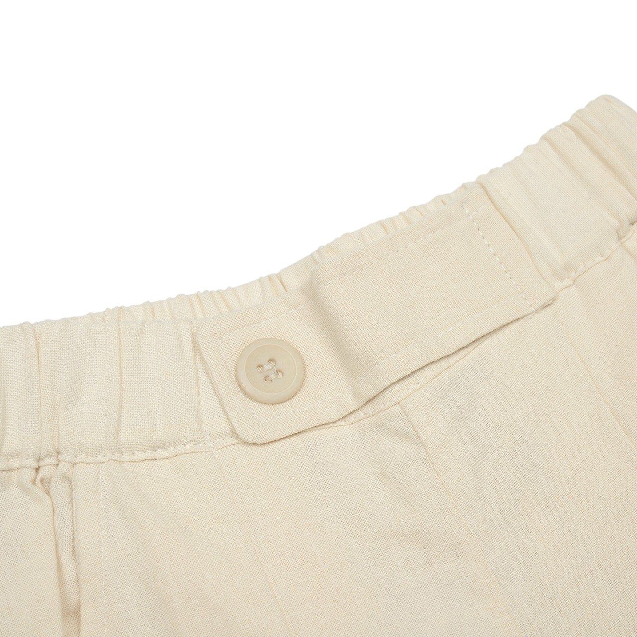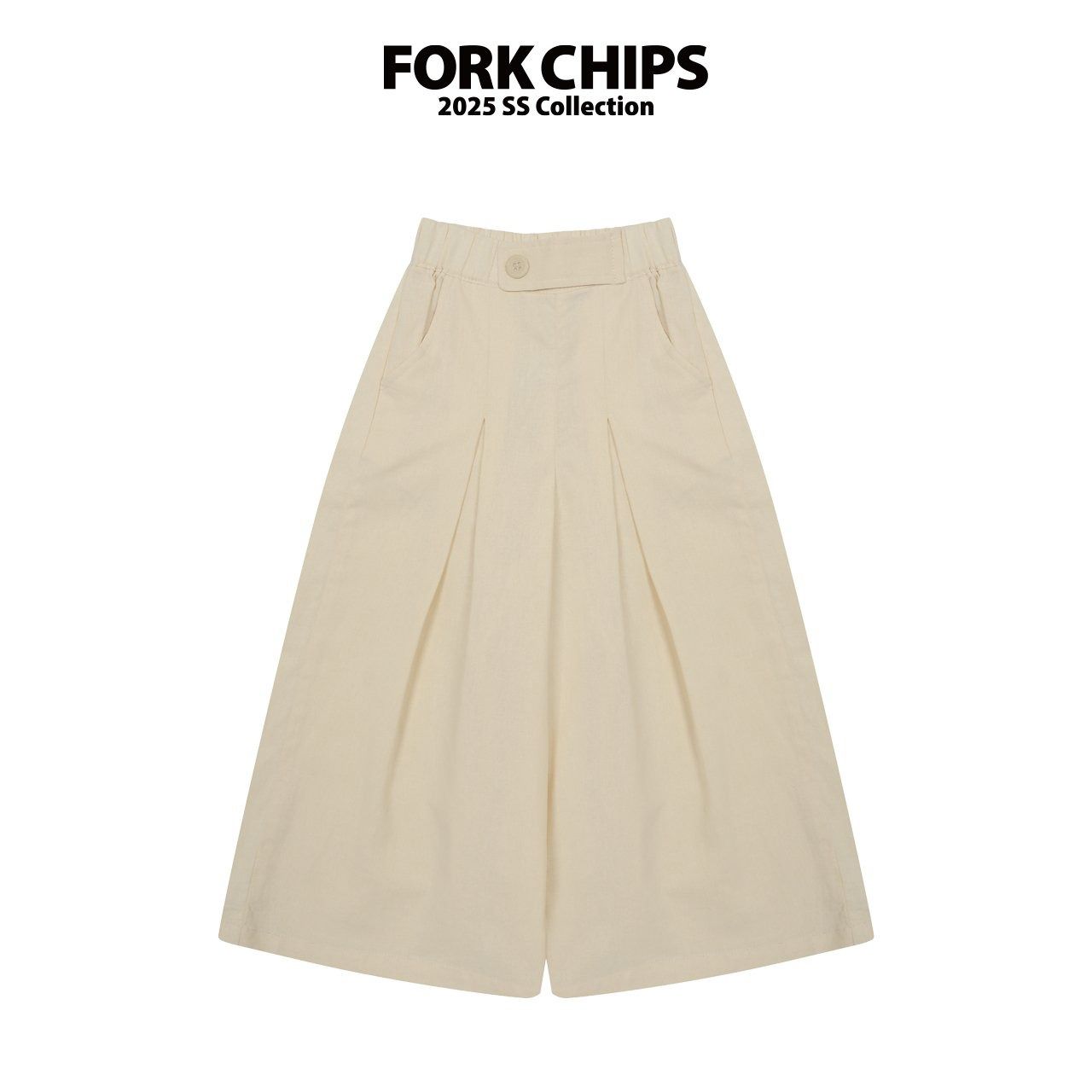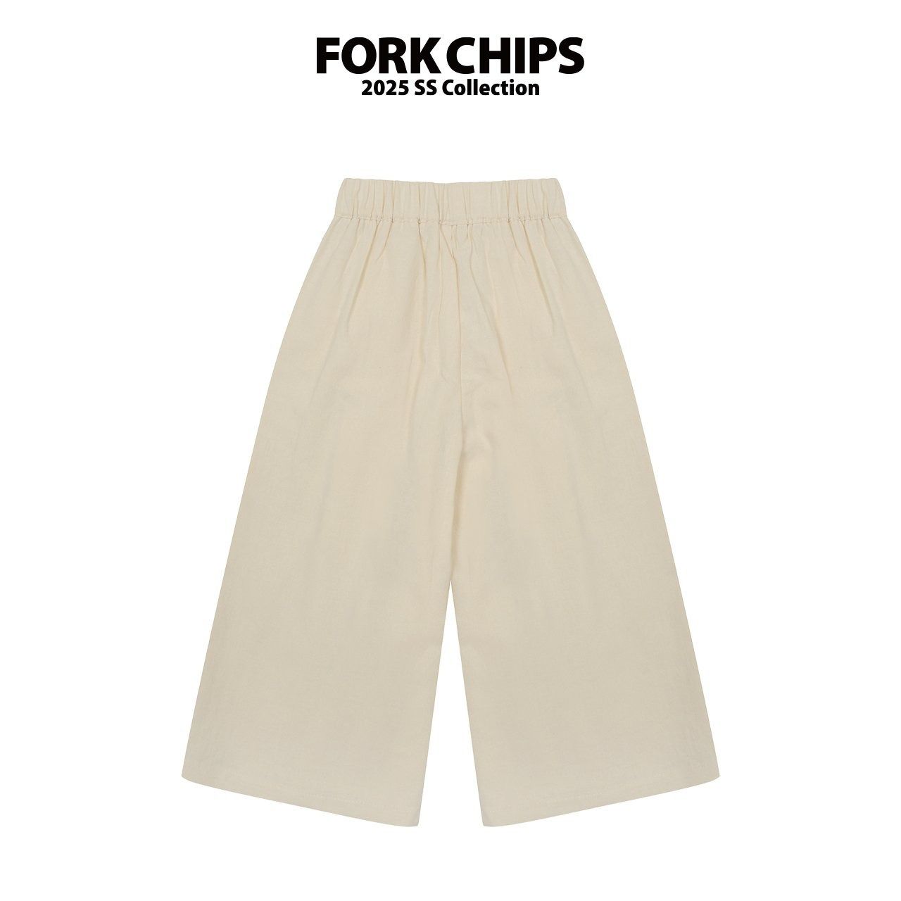 韓國 FORK CHIPS - 後鬆緊棉麻簡約打褶寬褲-米