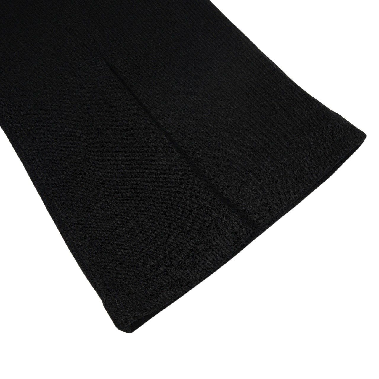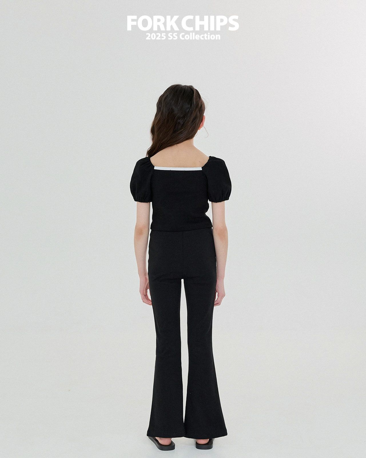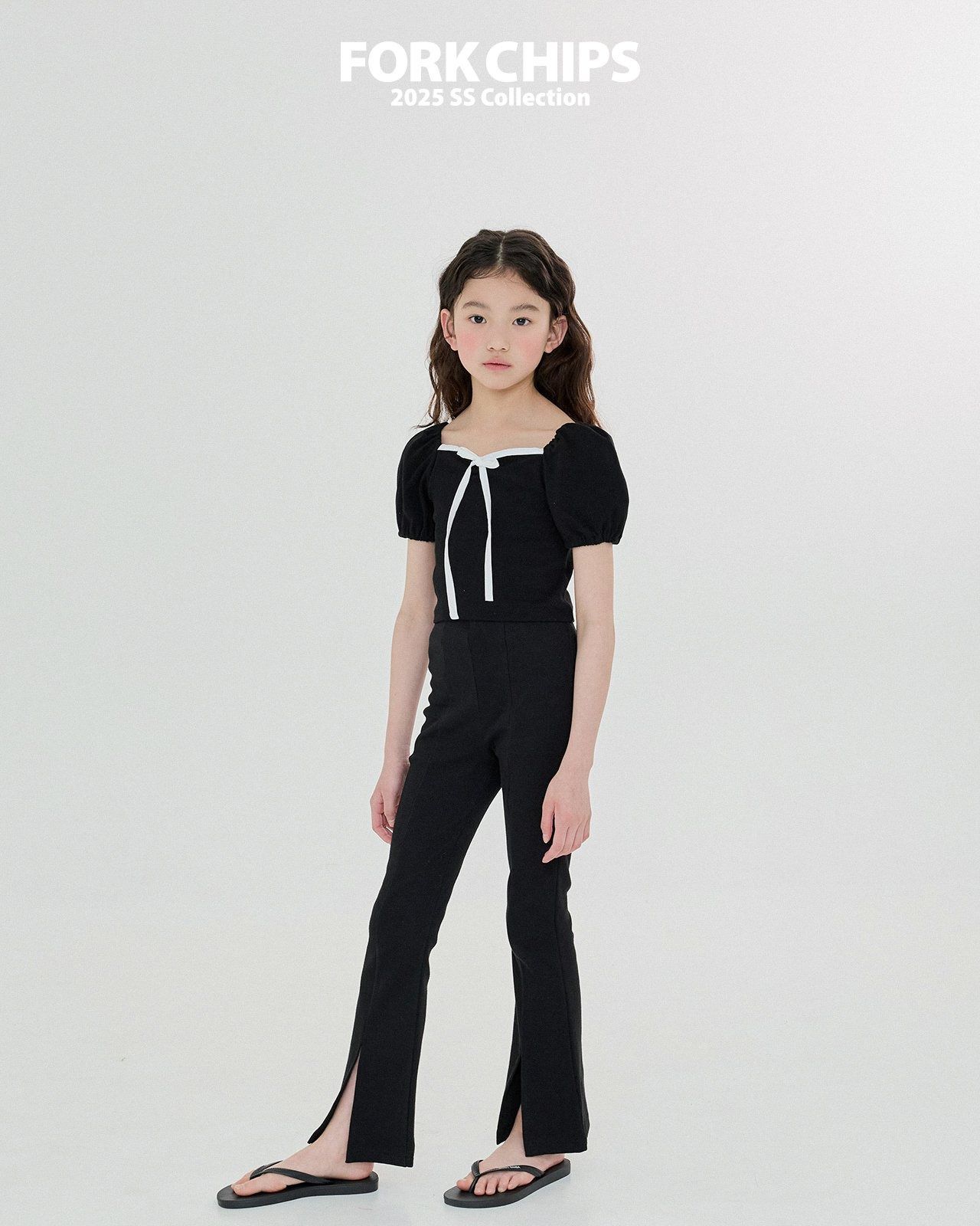 韓國 FORK CHIPS - 鬆緊腰羅紋開衩貼身喇叭褲-黑