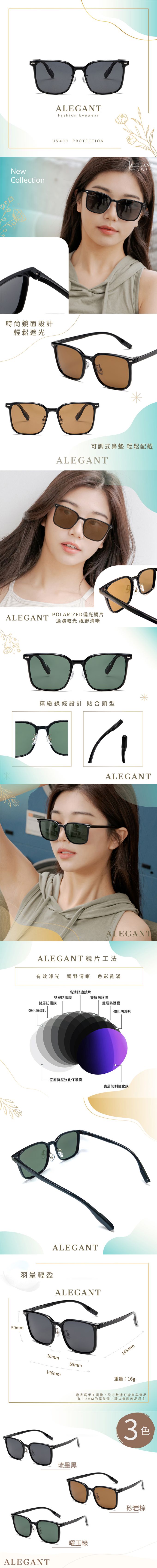 ALEGANT產品特色:韓版復古質感平面鏡框,小銀飾片點綴整體框型。零失誤時尚穿搭,內斂而不失氣場的方框墨鏡。可調式立體舒適鼻墊,低鼻樑也適合配戴,適合各種臉型。抗UV400有效阻隔紫外線傷害,炎炎夏日不僅防曬、時尚又吸睛。輕量材質鏡腳,使復古與現代美感平衡調配,增加配戴的舒適度。採用POLARIZED寶麗來偏光鏡片,讓強烈眩光變得柔和、視線更清晰。