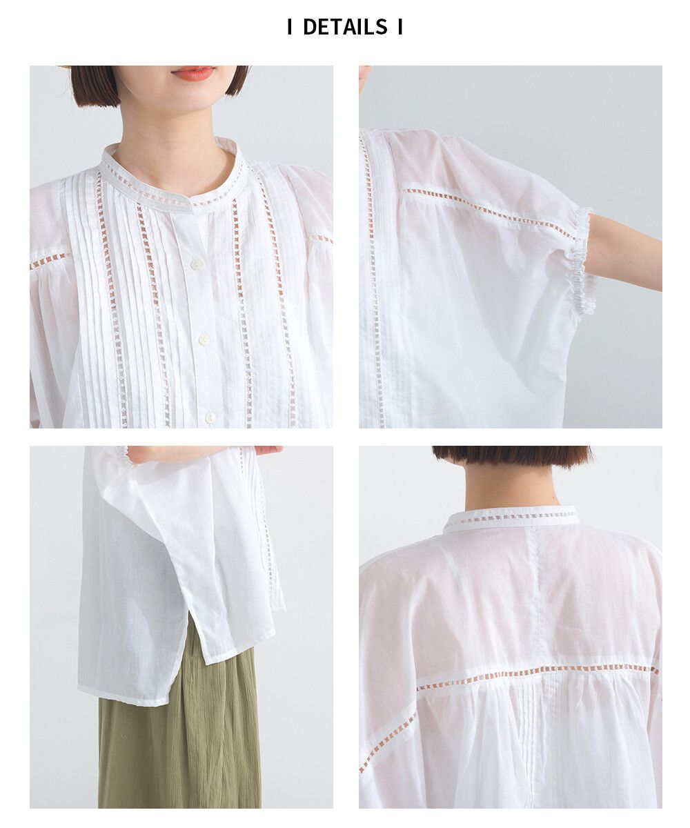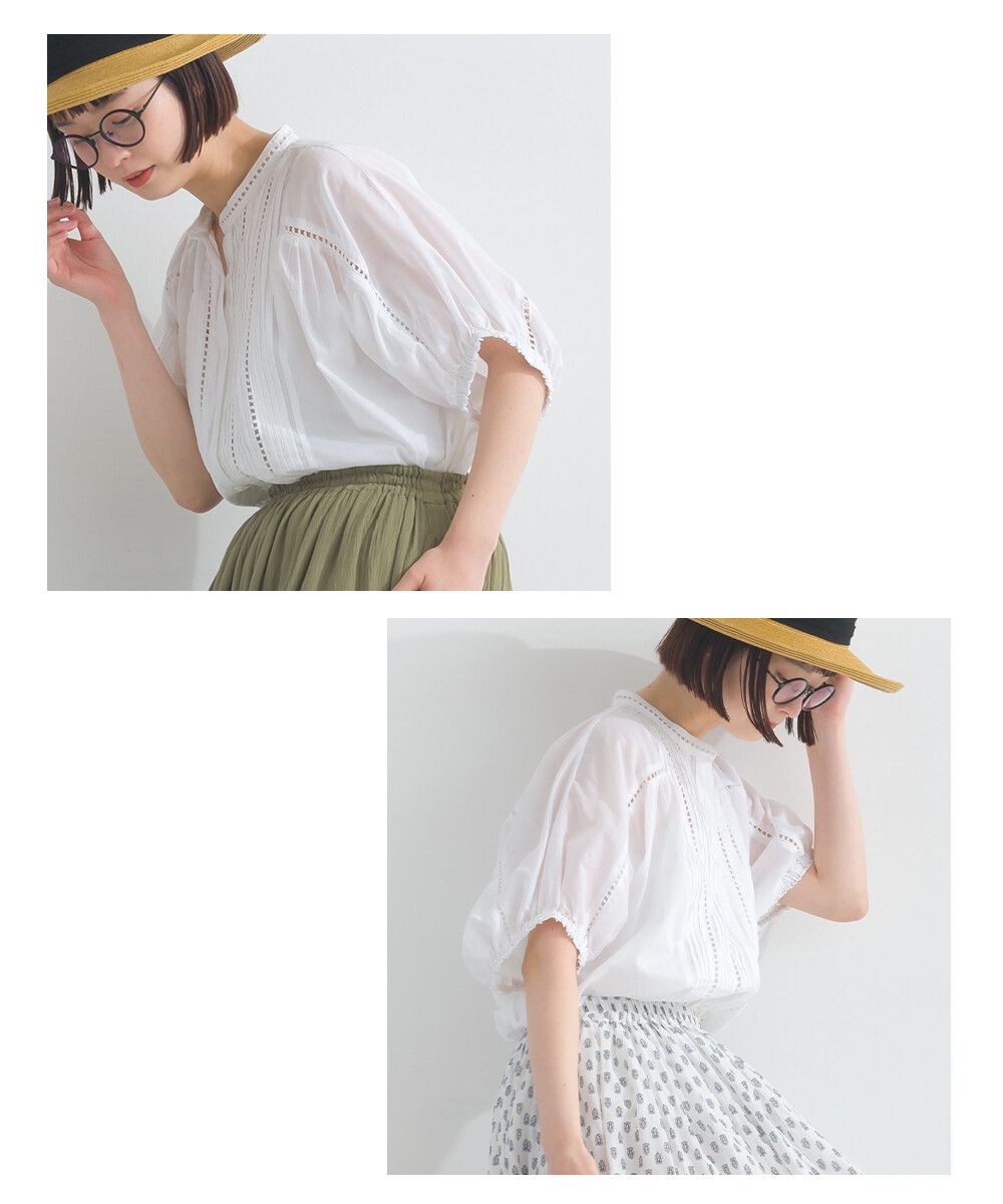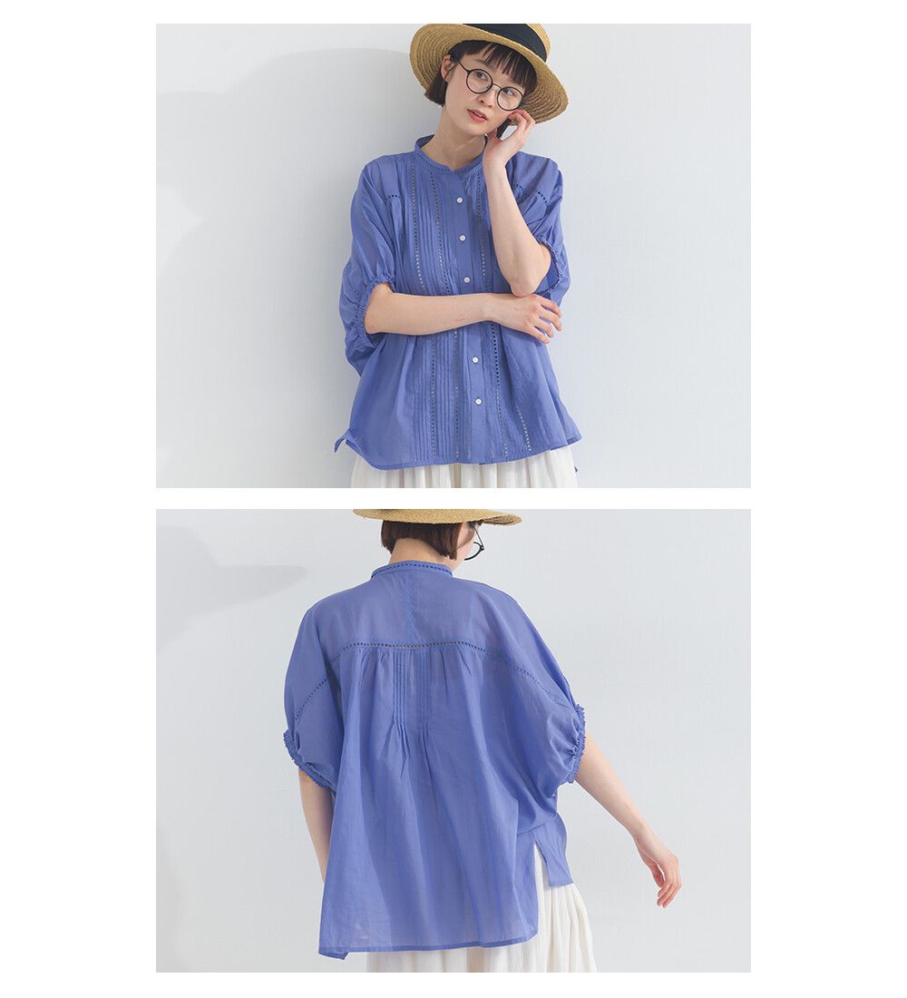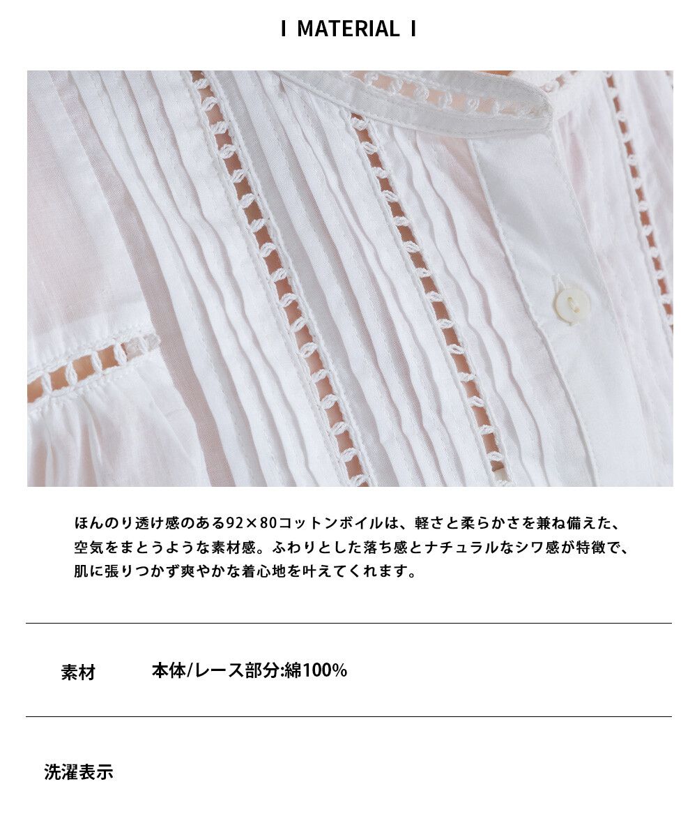 100%棉 細緻緹花小澎袖襯衫上衣