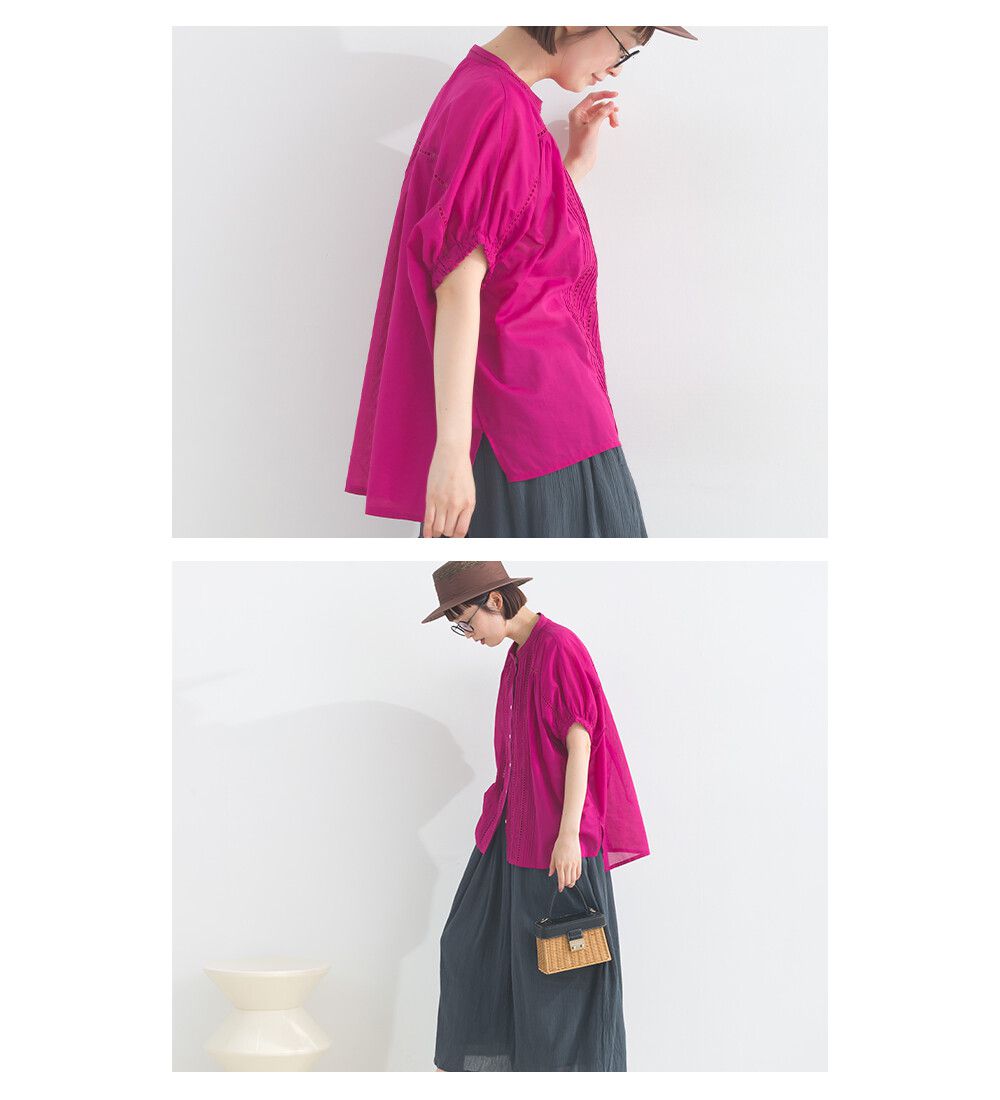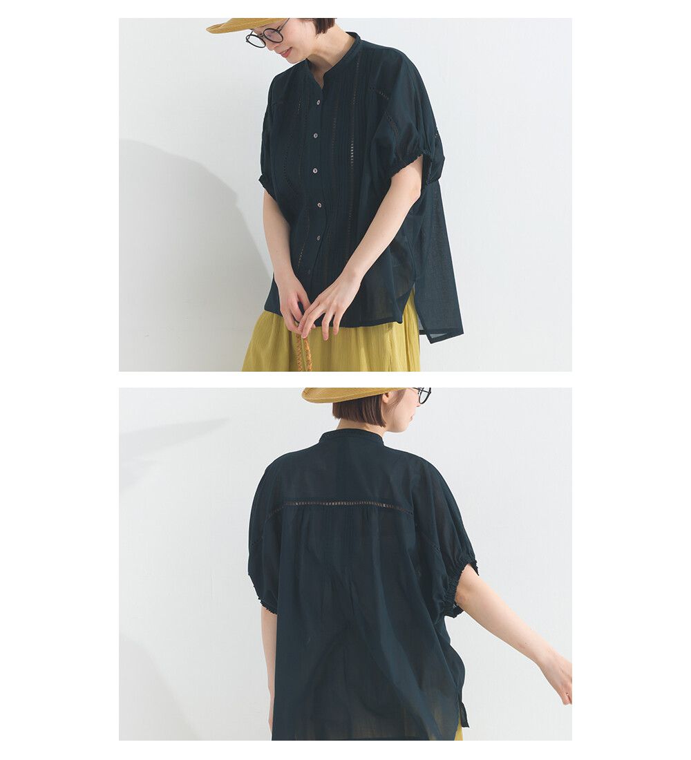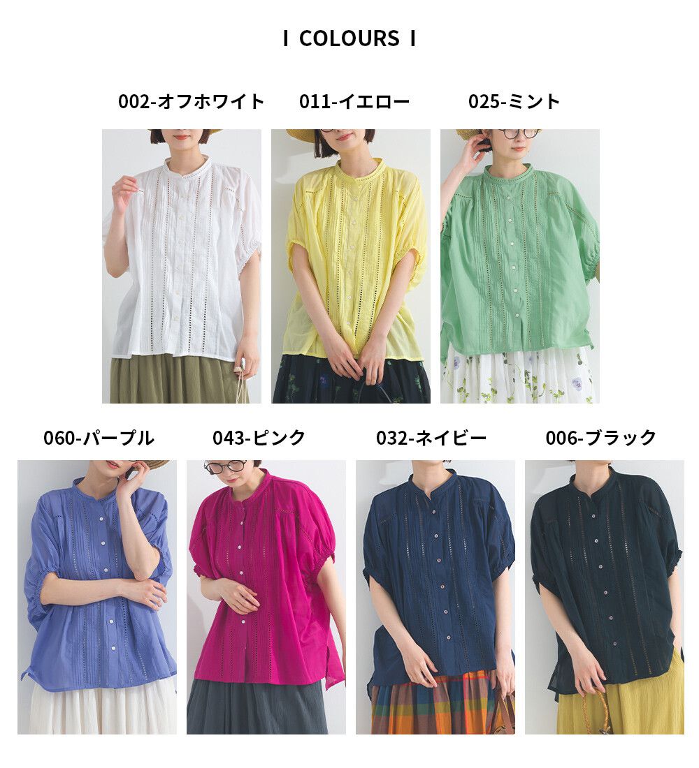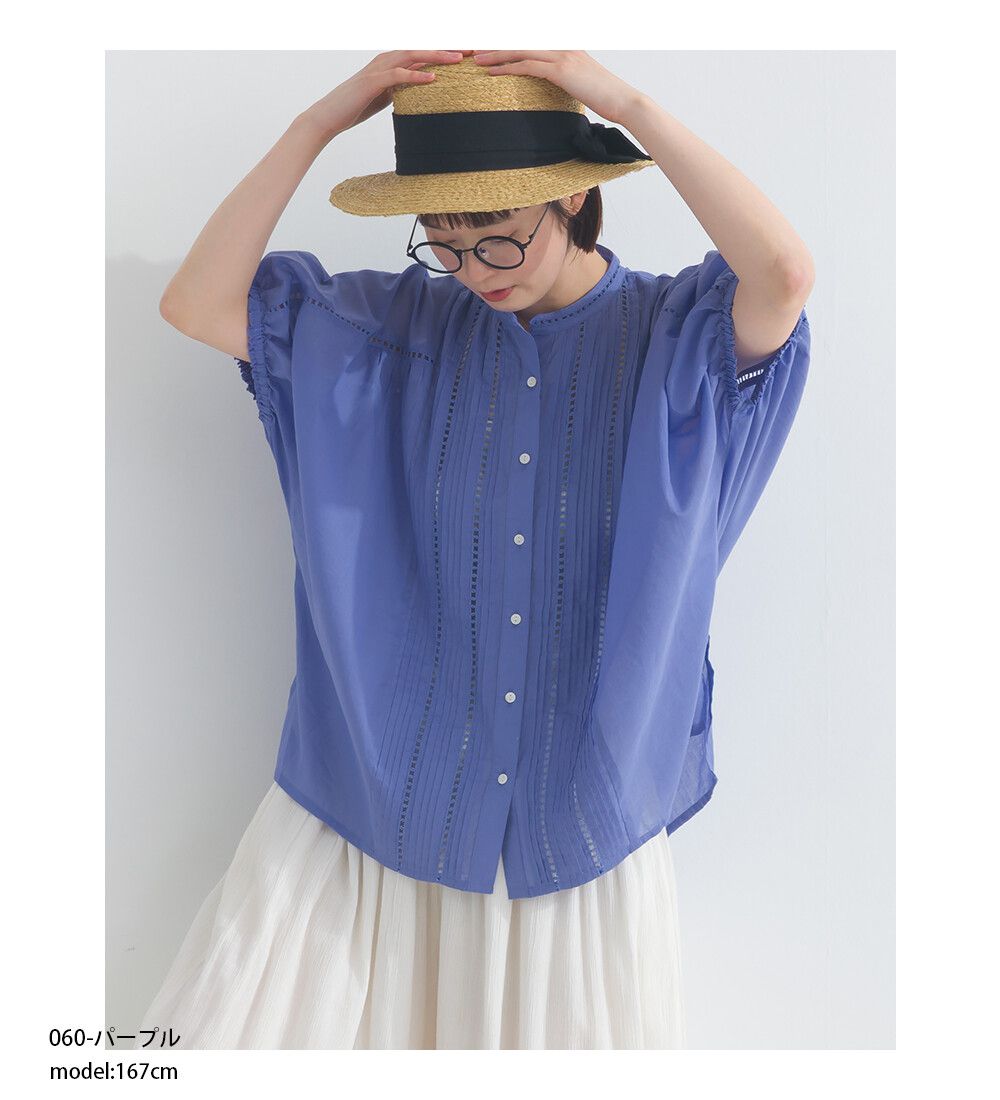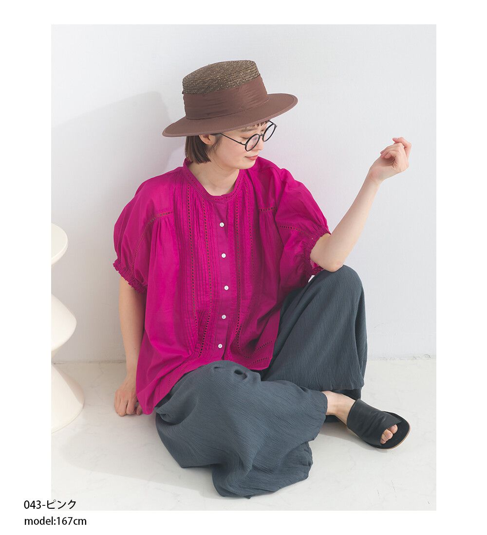 100%棉 細緻緹花小澎袖襯衫上衣