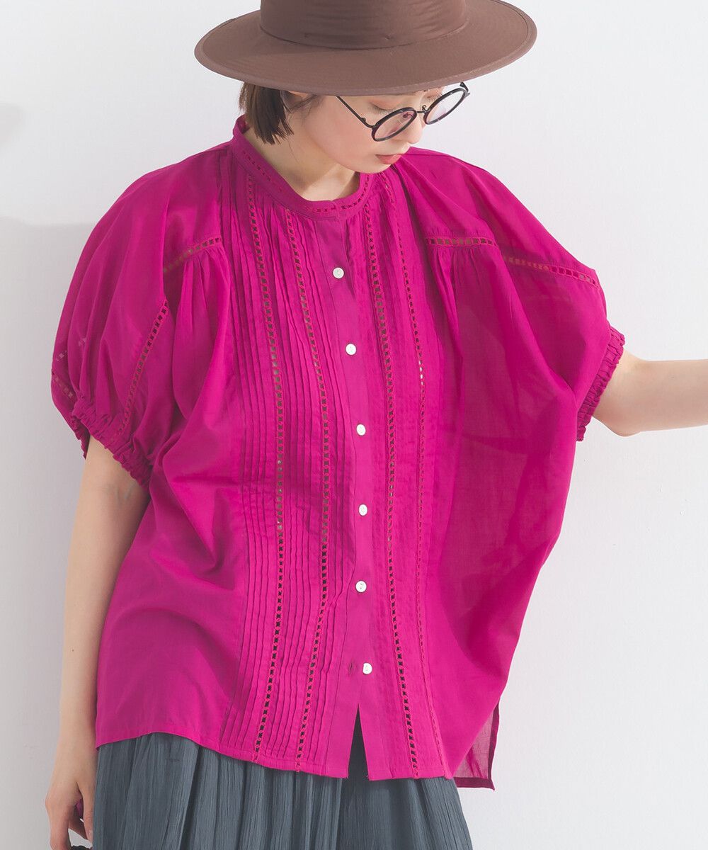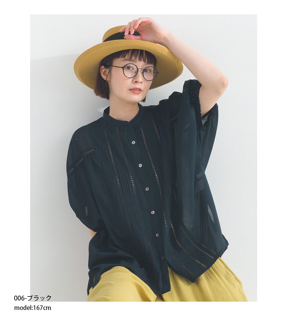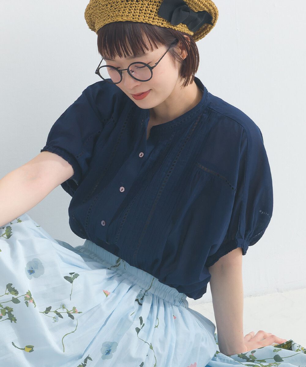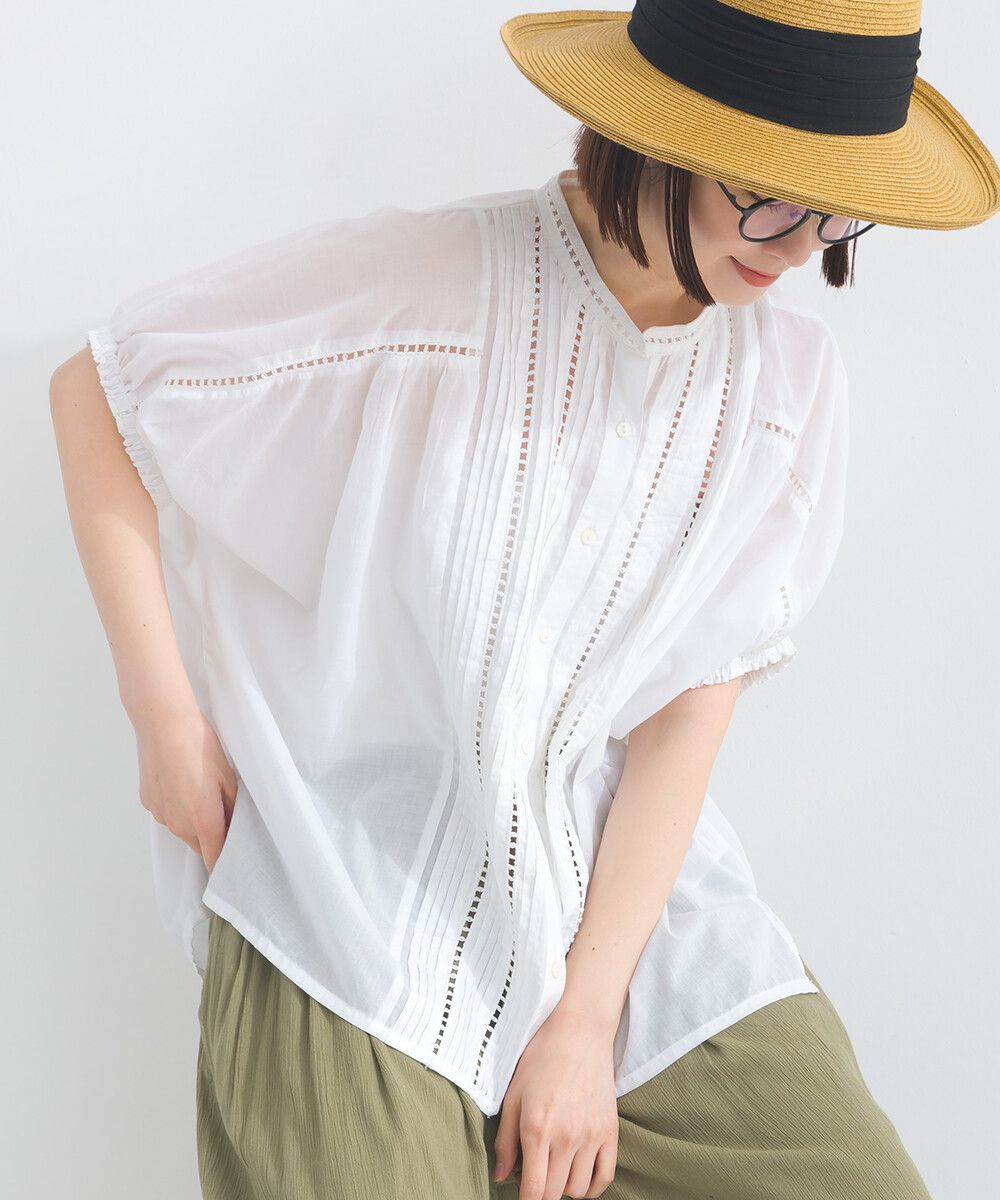 100%棉 細緻緹花小澎袖襯衫上衣