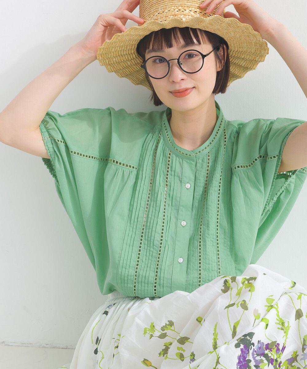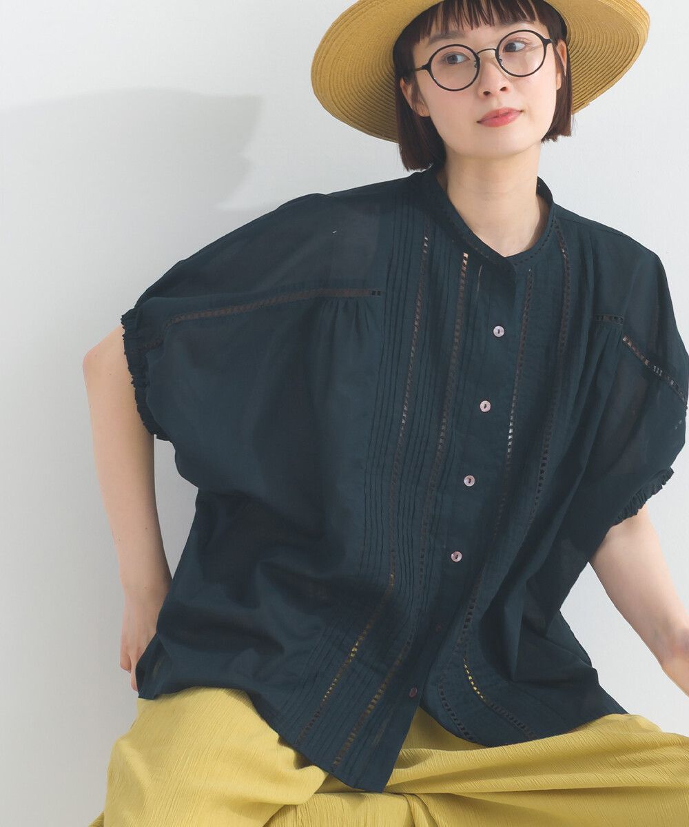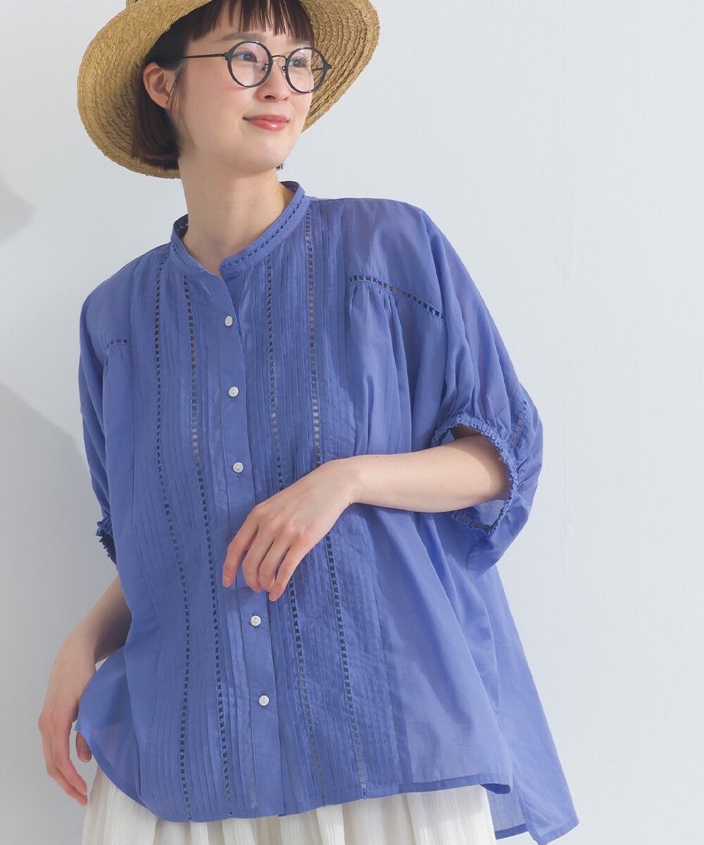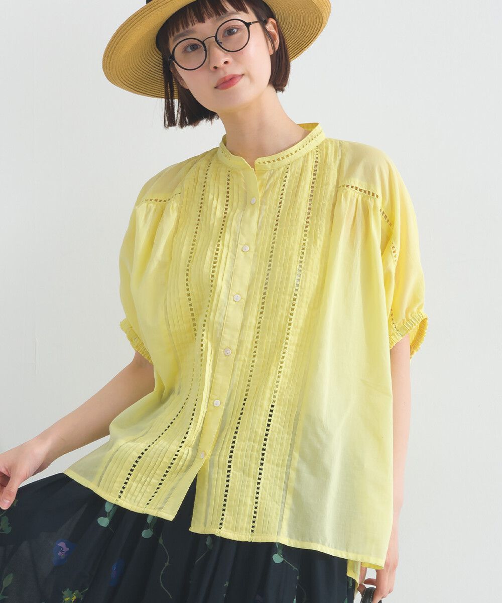 100%棉 細緻緹花小澎袖襯衫上衣