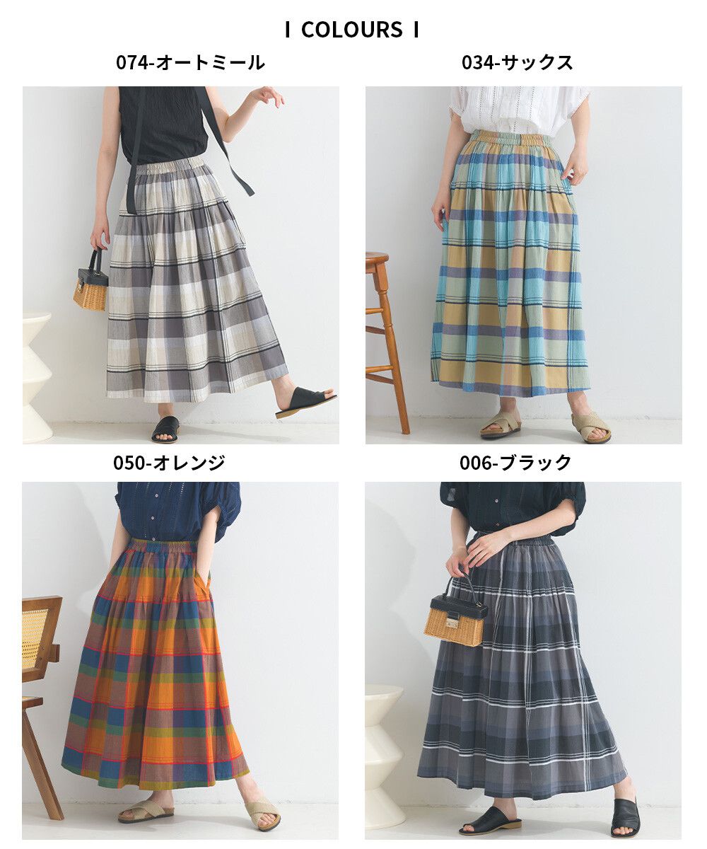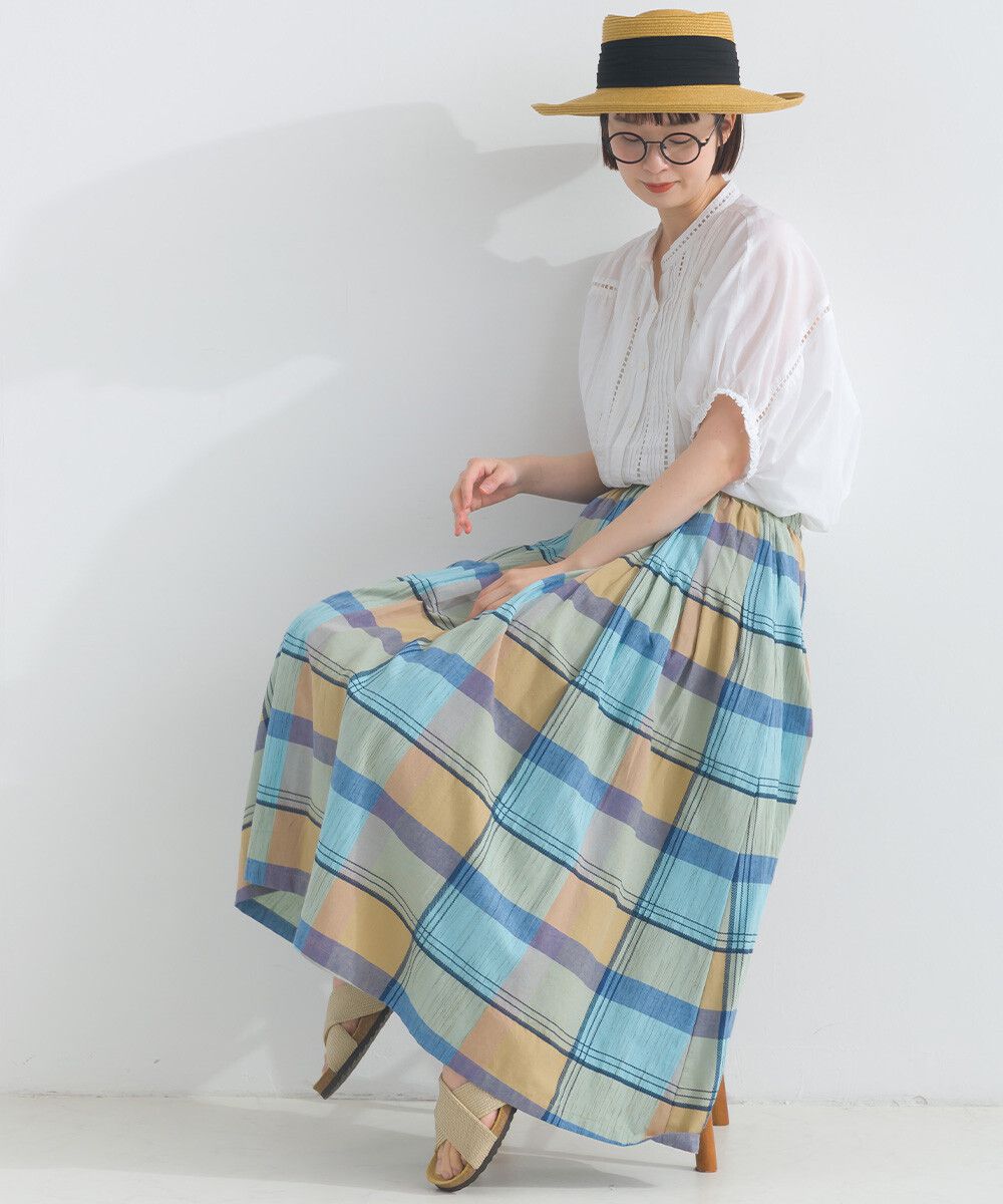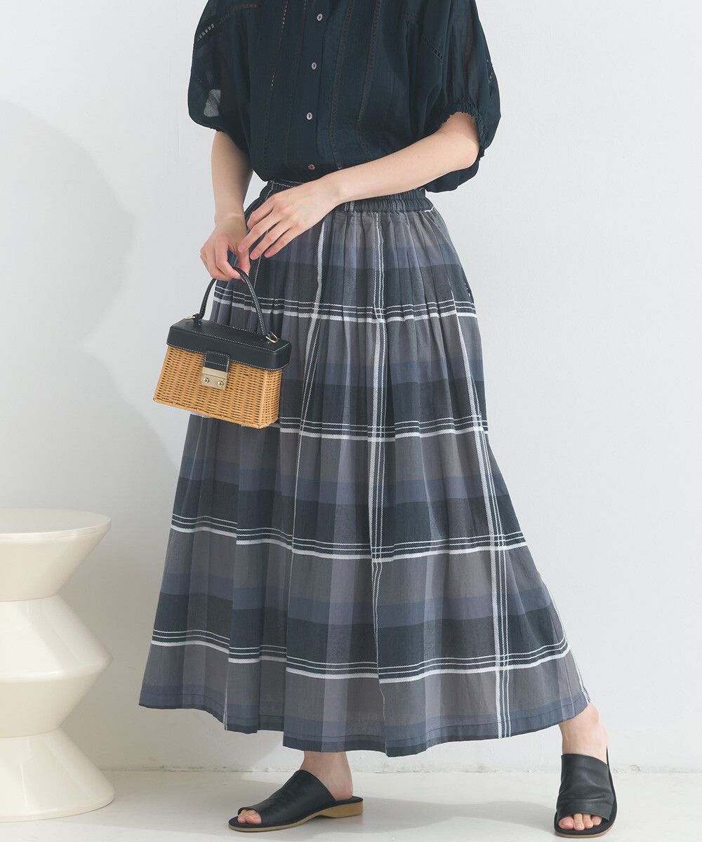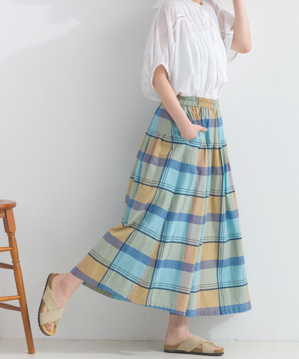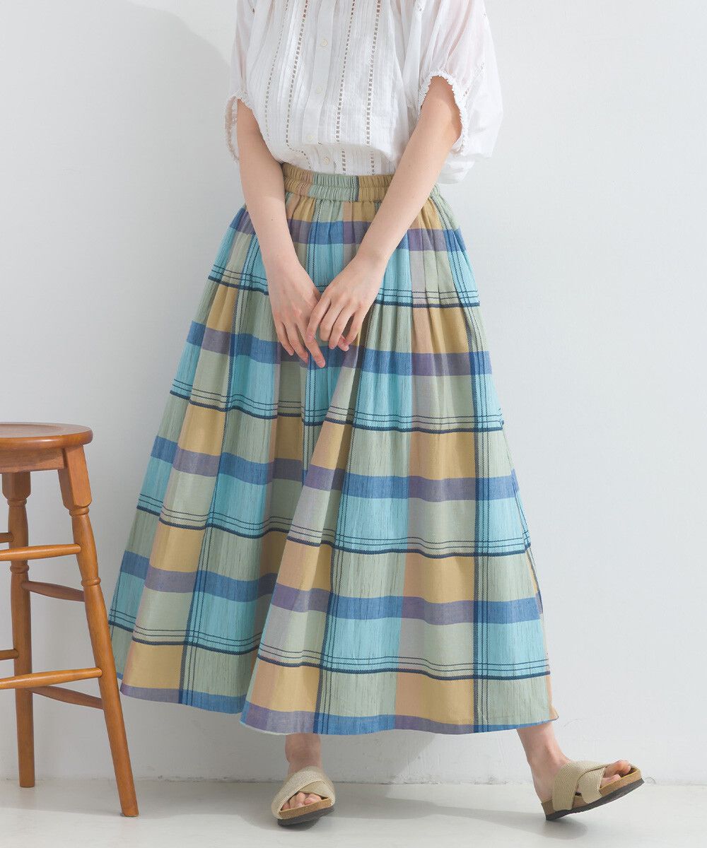 100%棉 漸層色輕盈格紋長裙