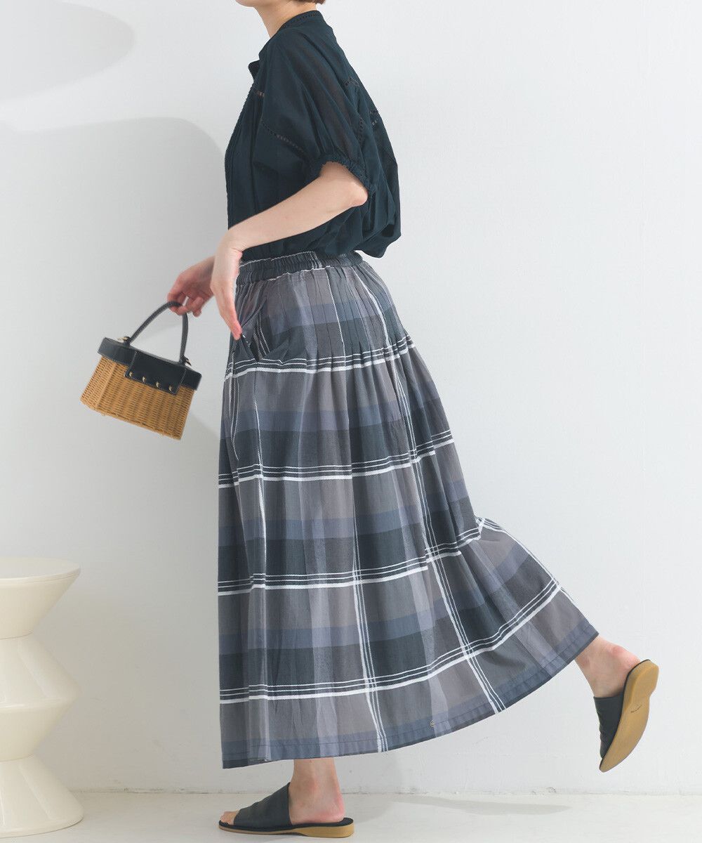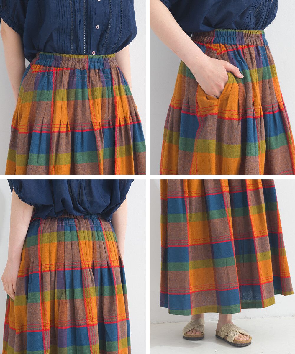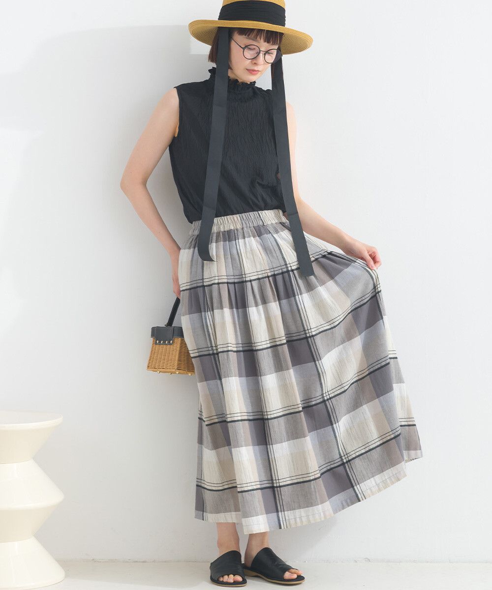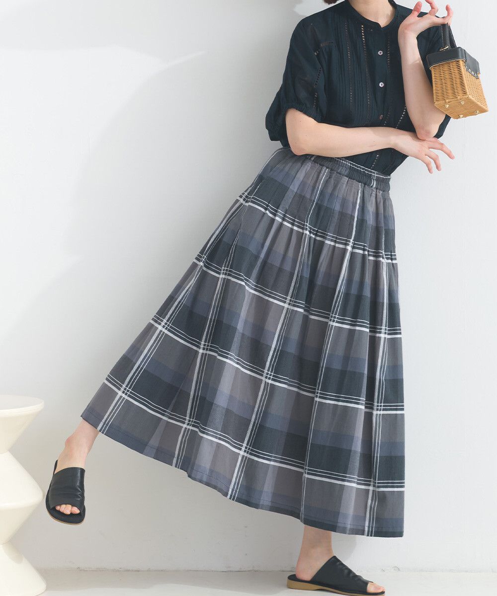 100%棉 漸層色輕盈格紋長裙