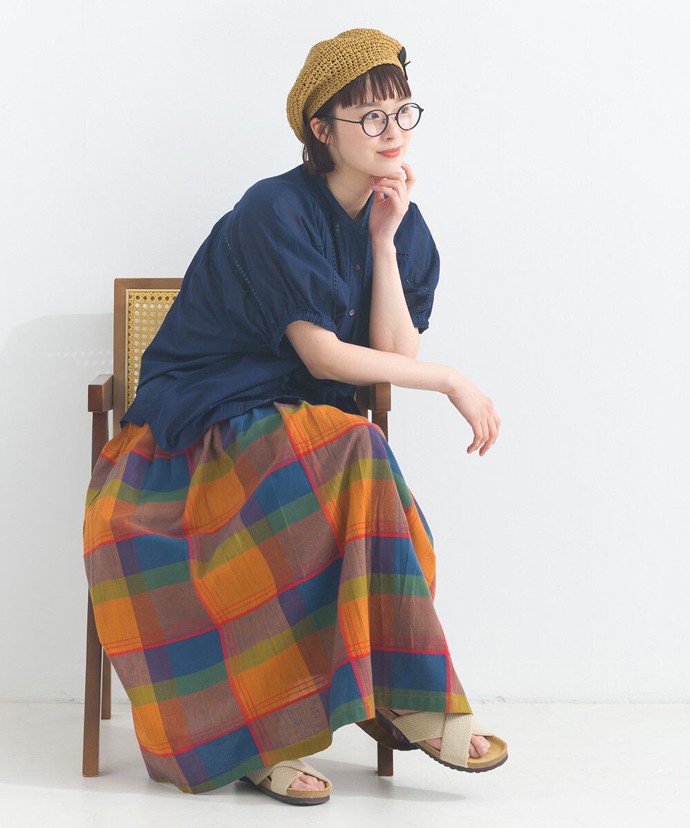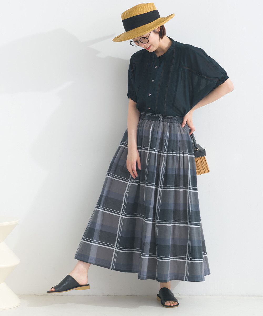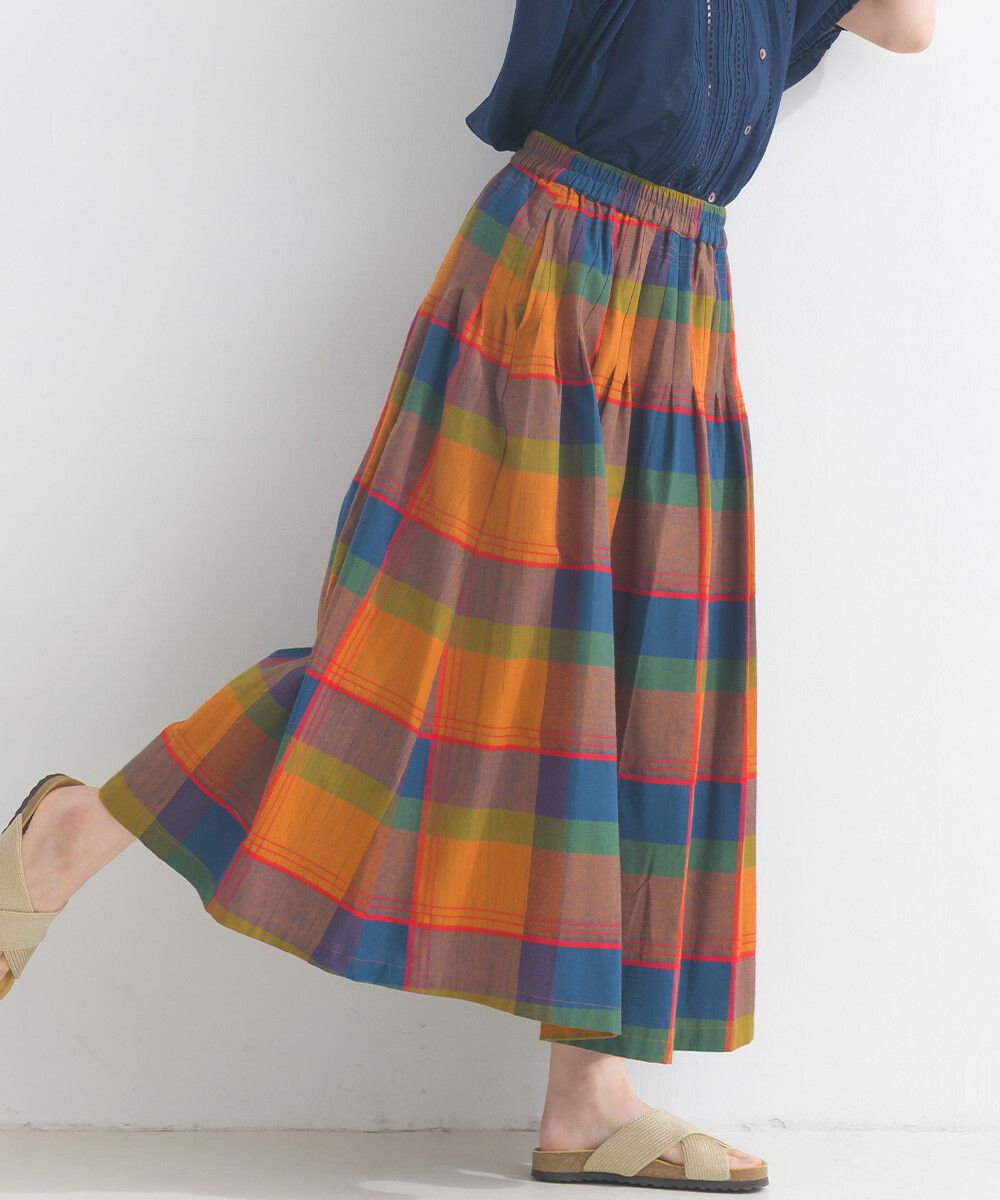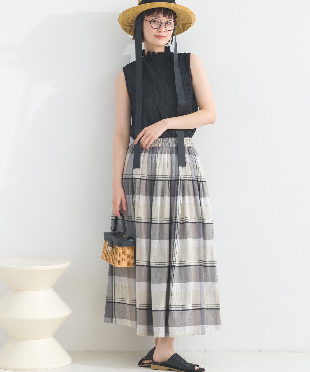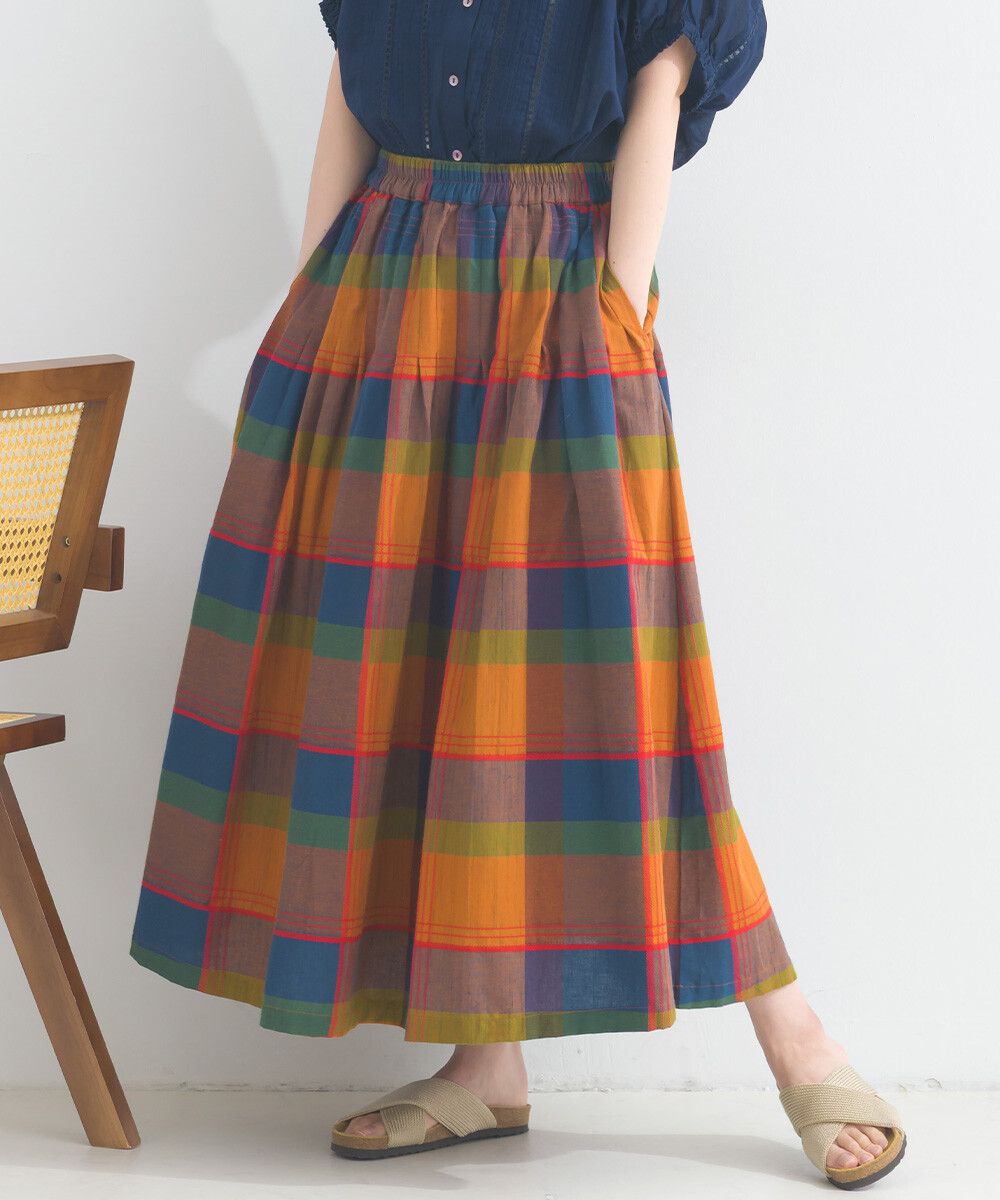 100%棉 漸層色輕盈格紋長裙