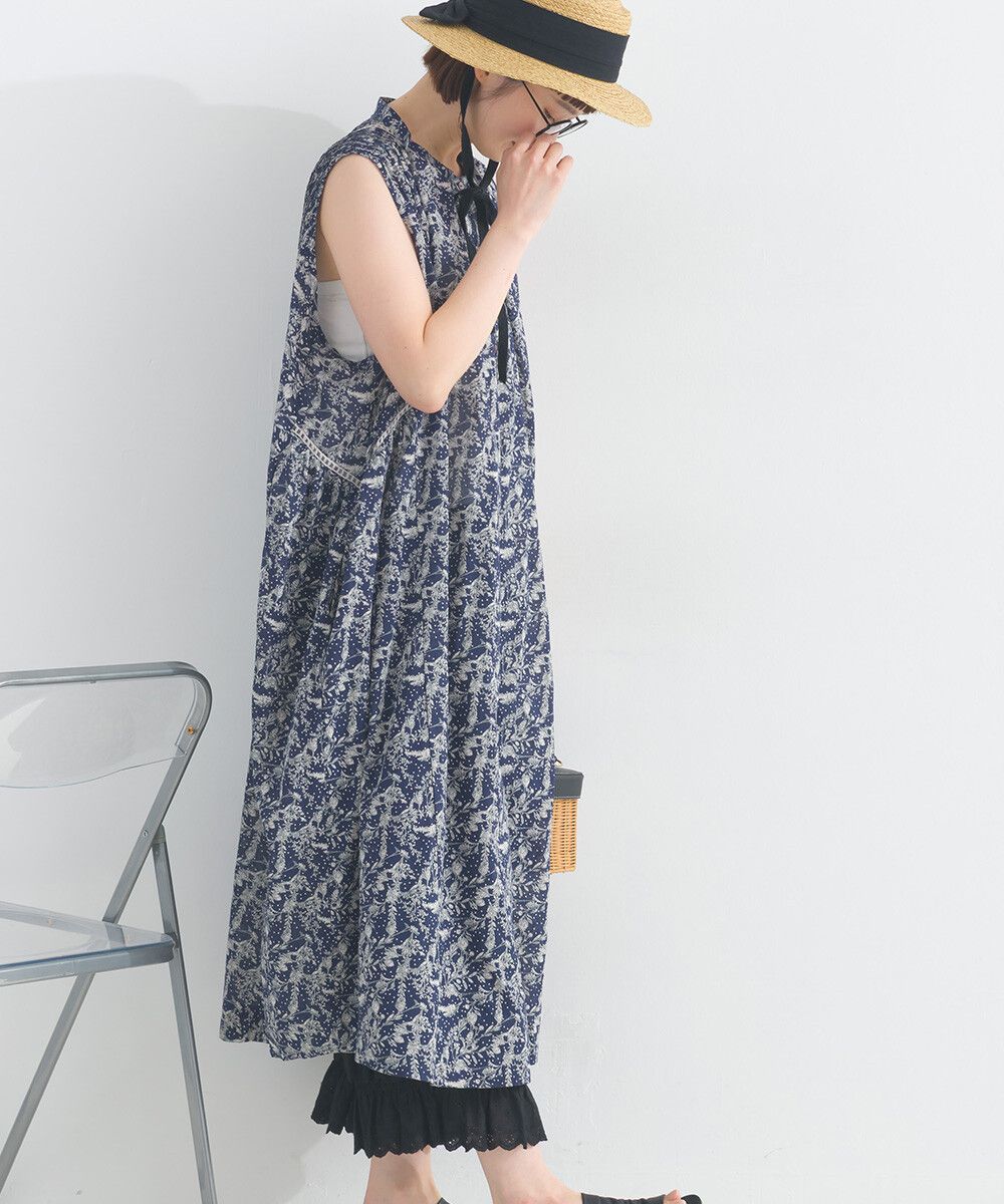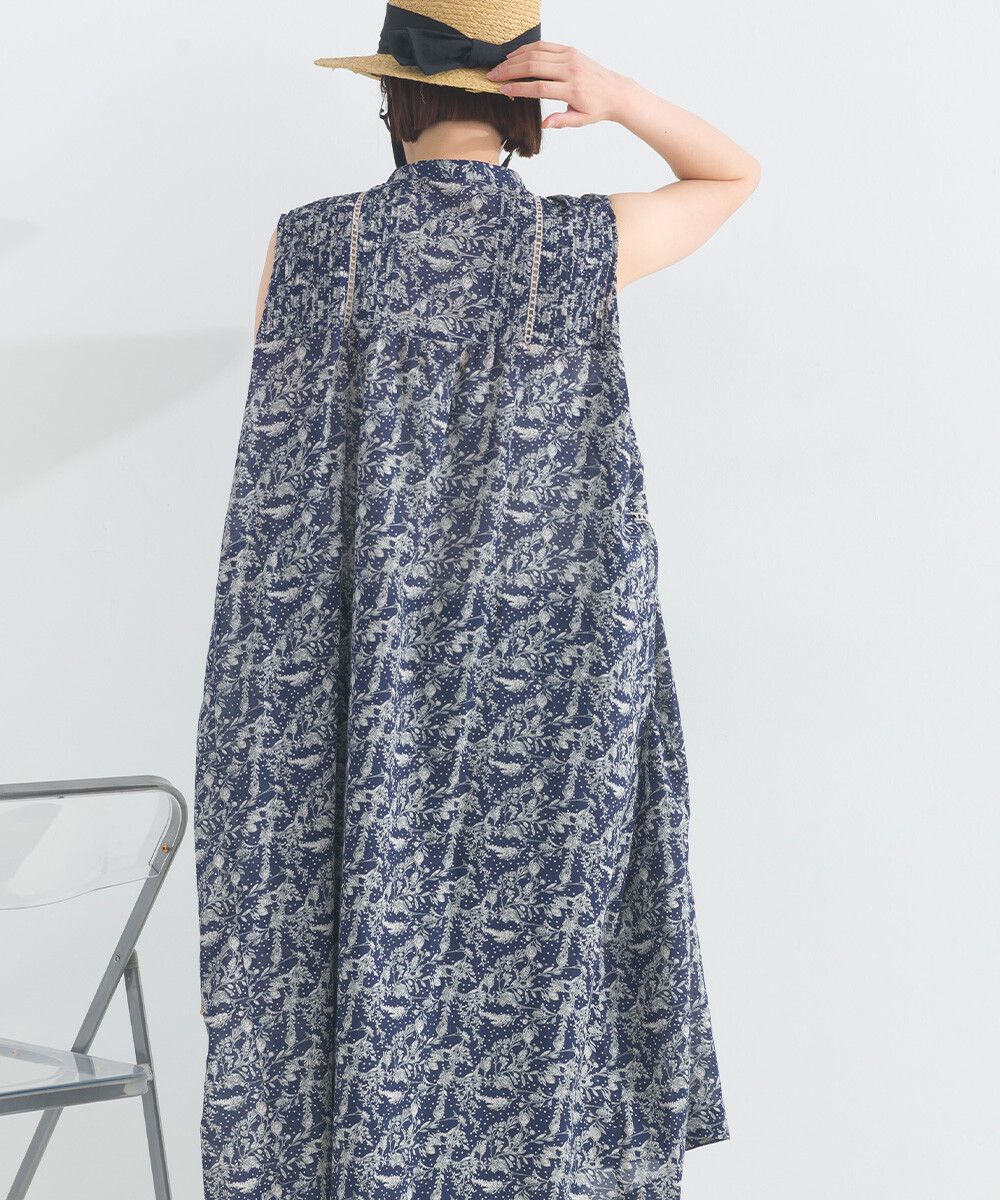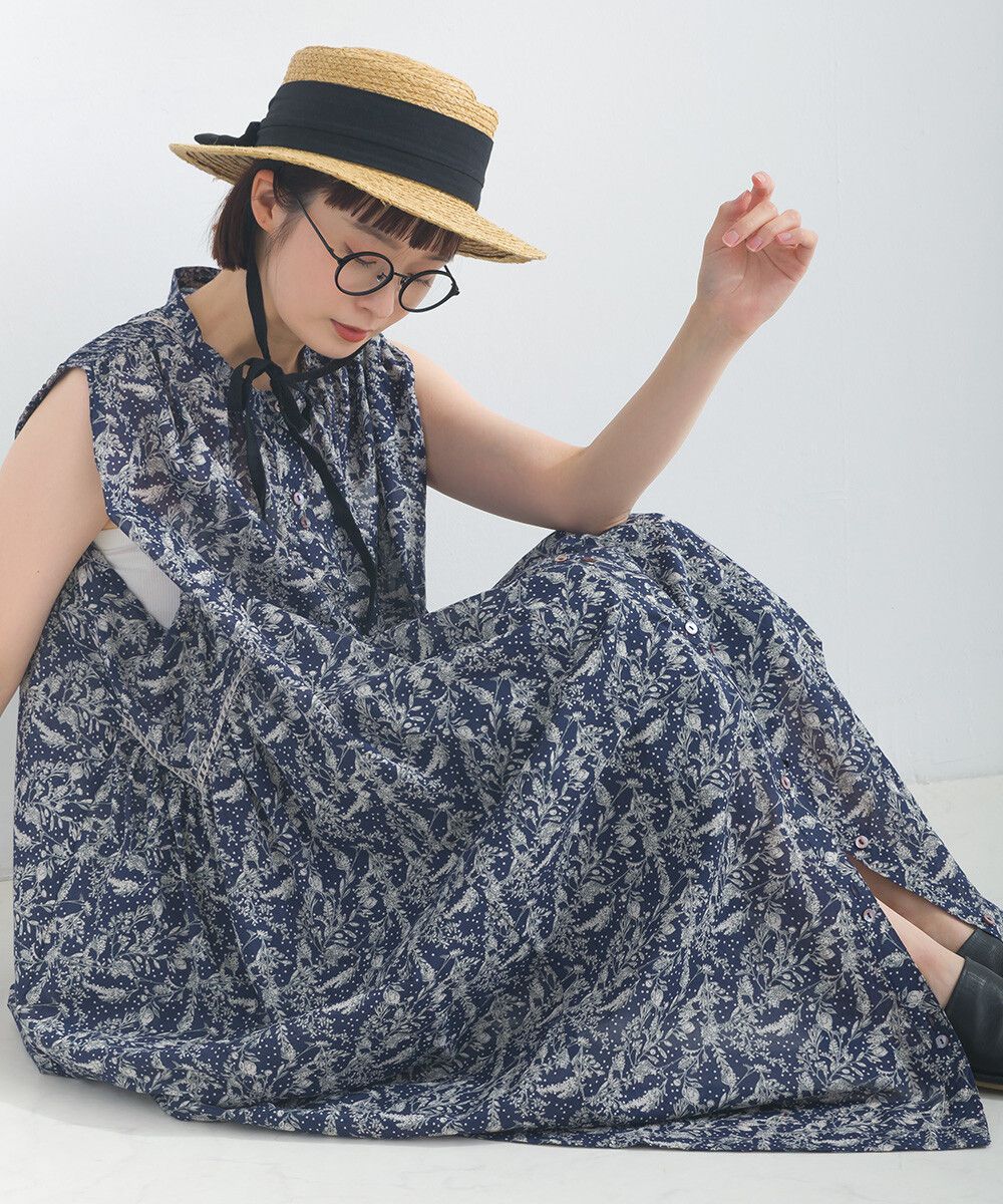 • 品名:純棉清新植物印花襯衫式無袖洋裝