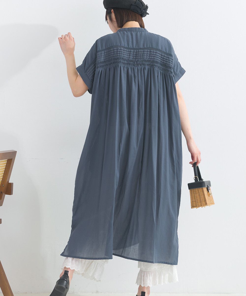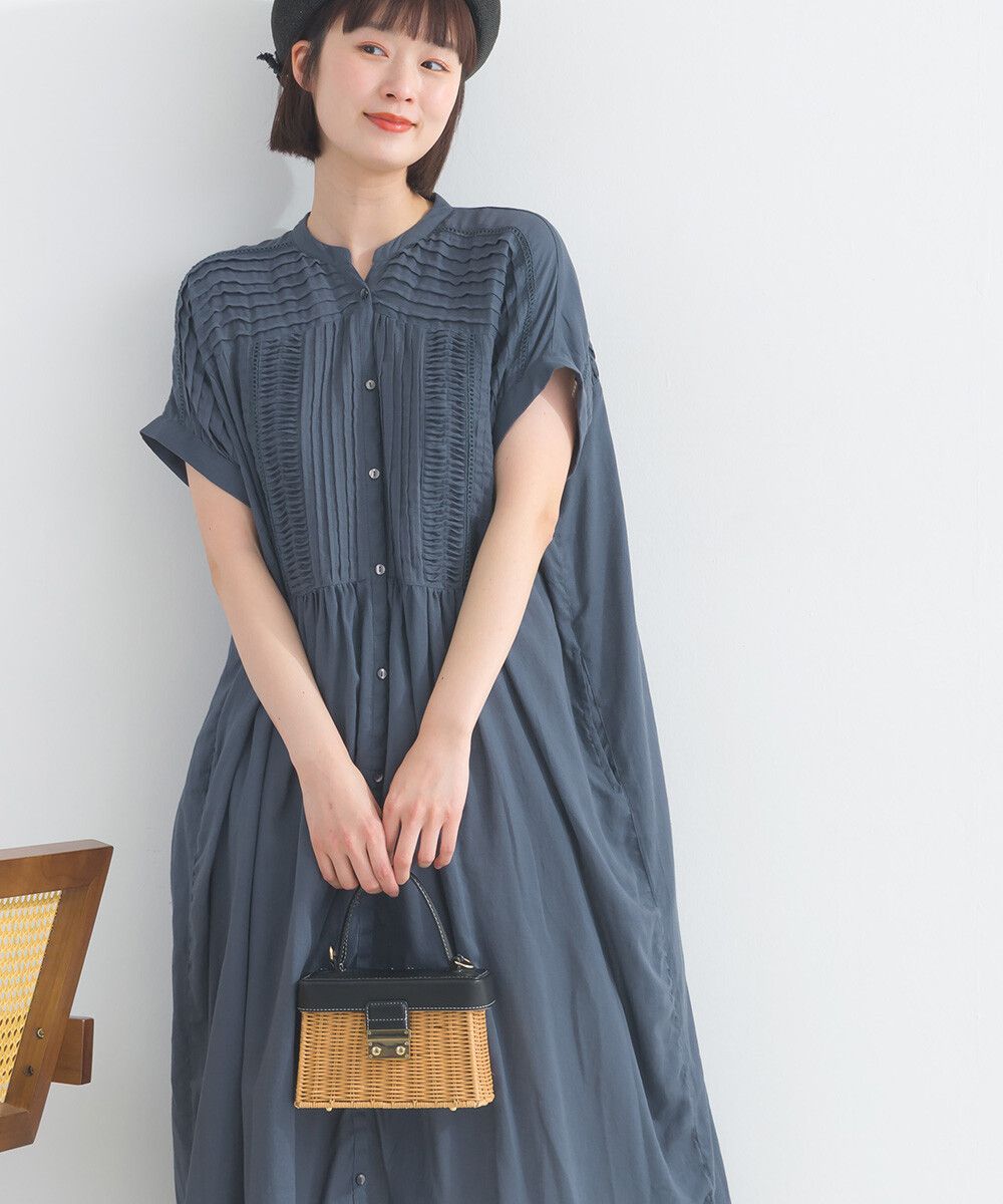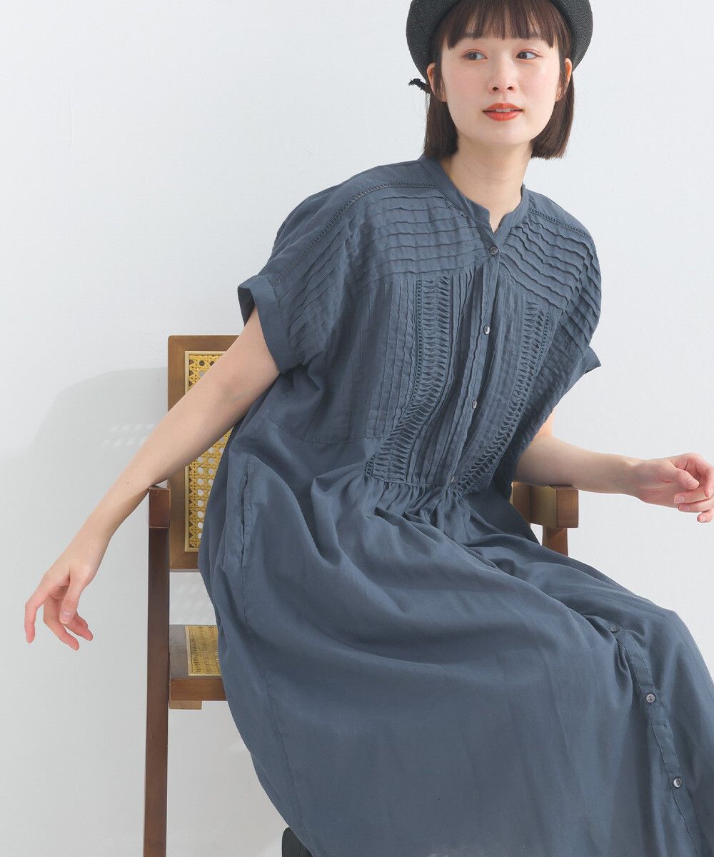 日本 Lupilien - 100%棉 迷人皺摺襯衫式短袖洋裝-炭灰