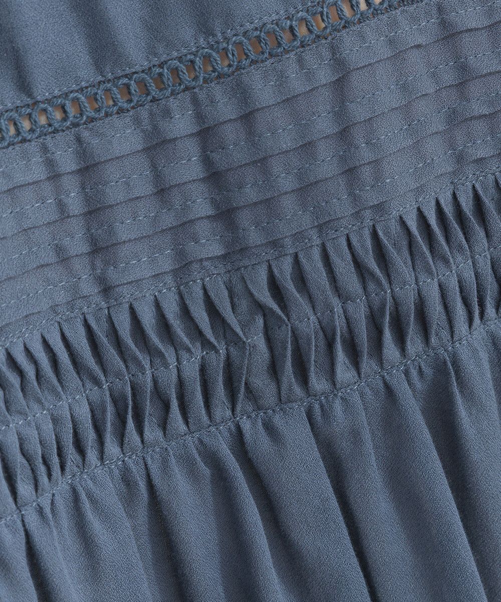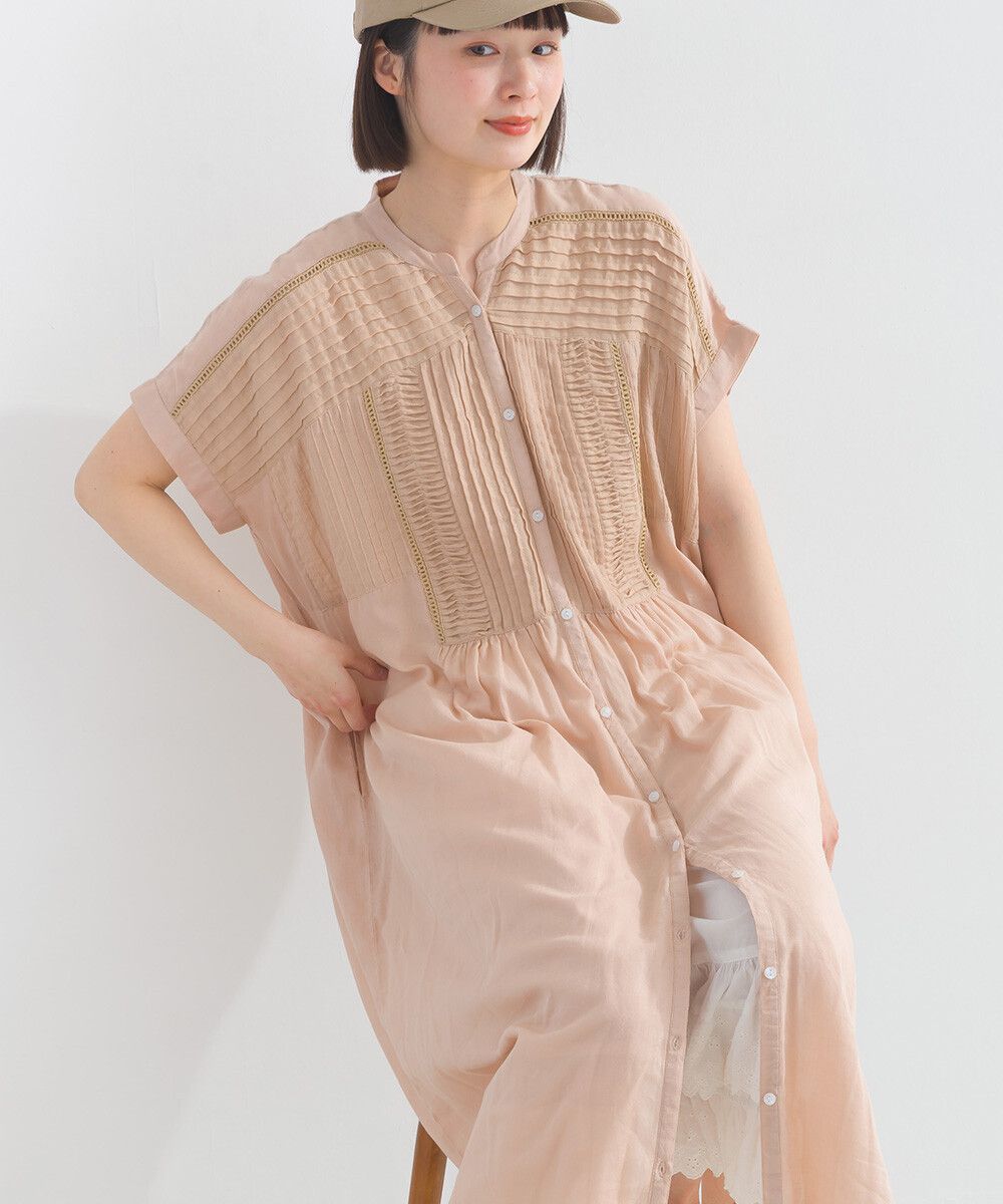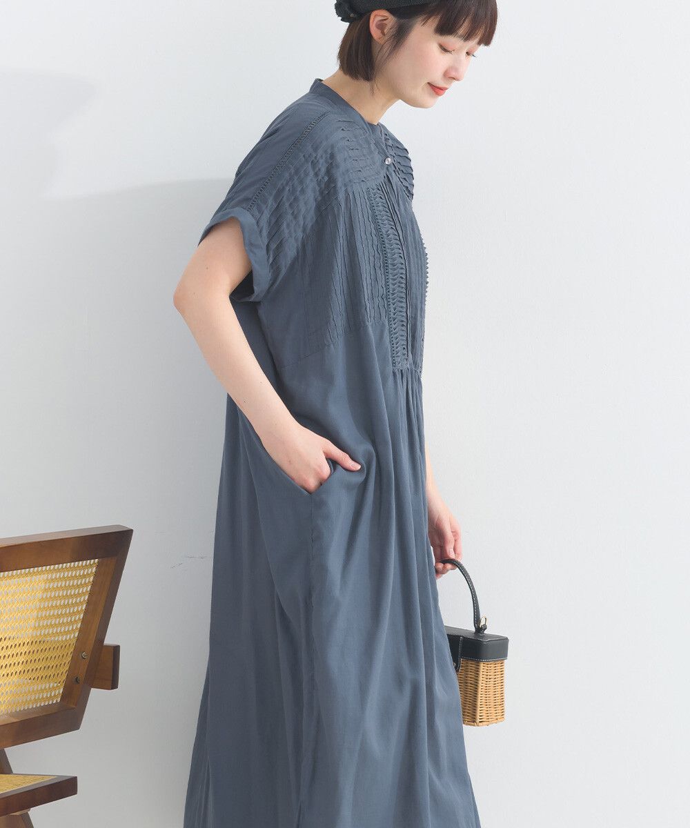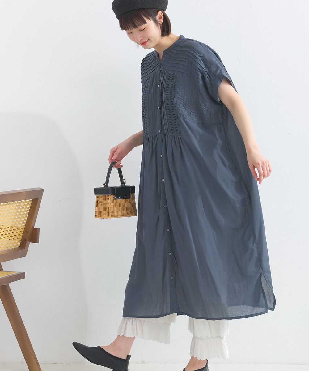 日本 Lupilien - 100%棉 迷人皺摺襯衫式短袖洋裝-炭灰