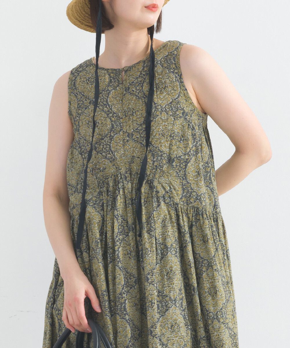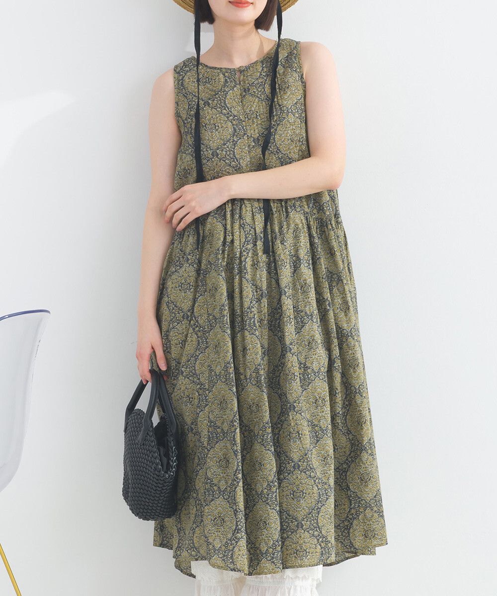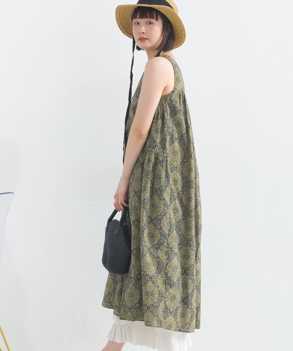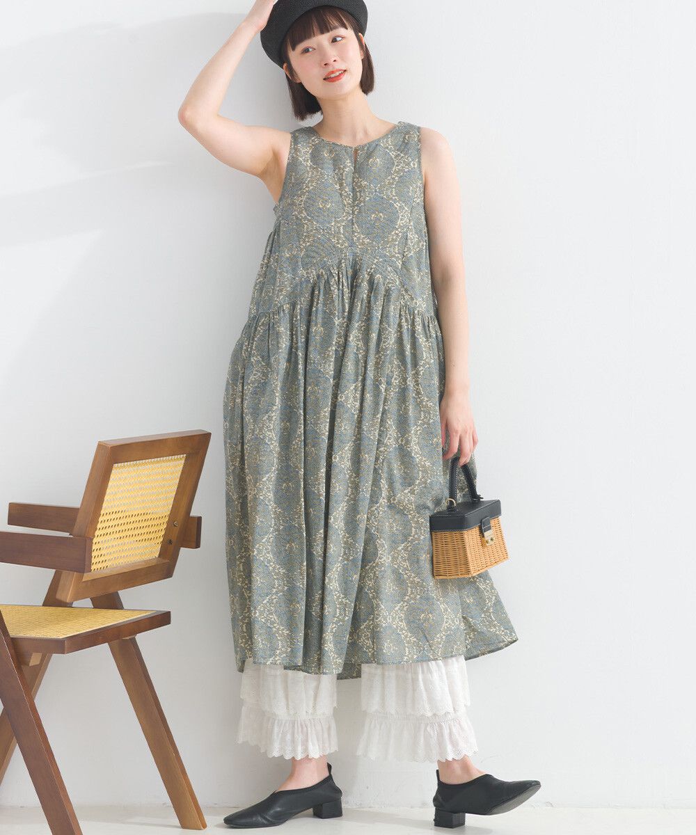 100%棉 歐風圖騰飄逸感無袖洋裝