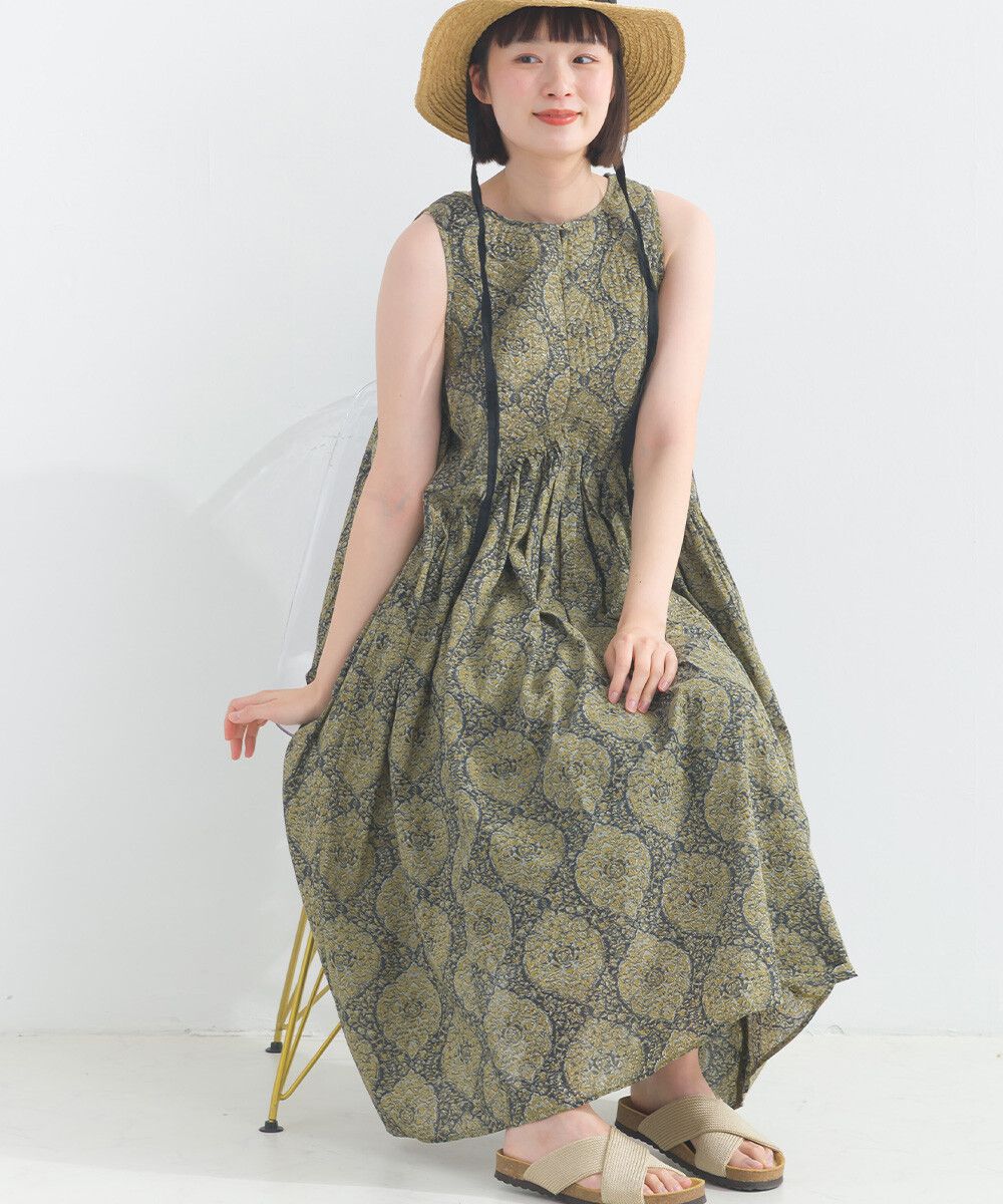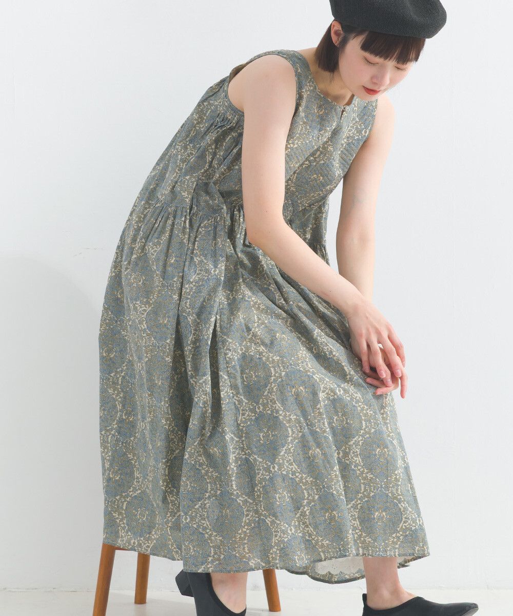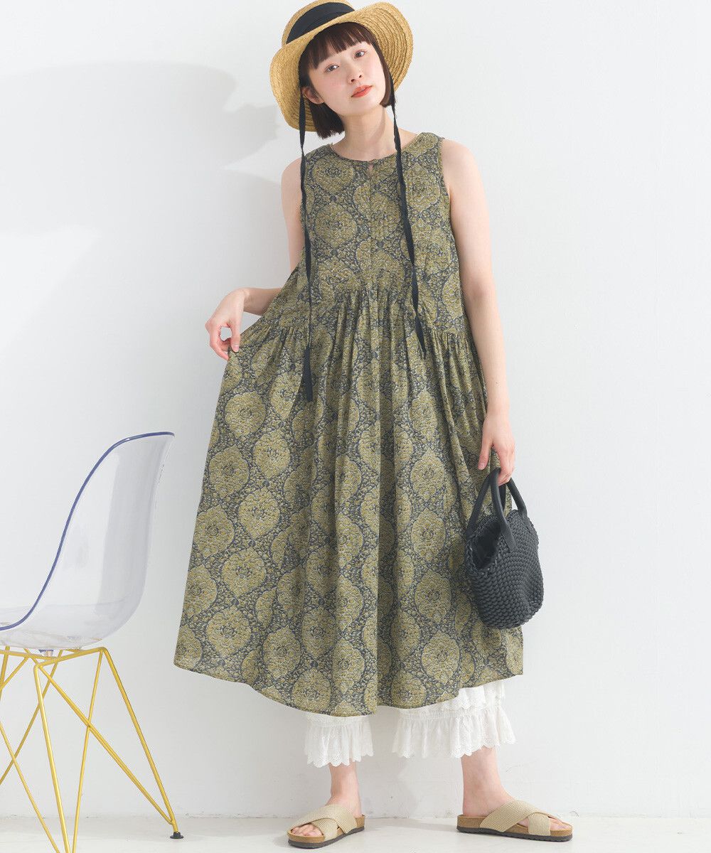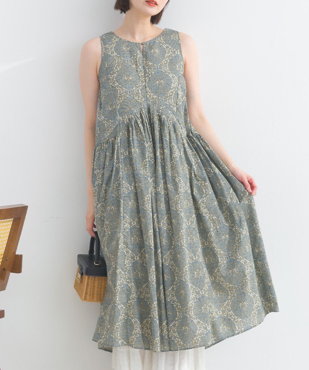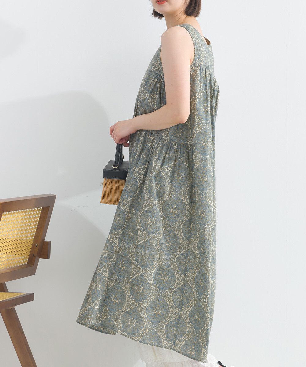 100%棉 歐風圖騰飄逸感無袖洋裝