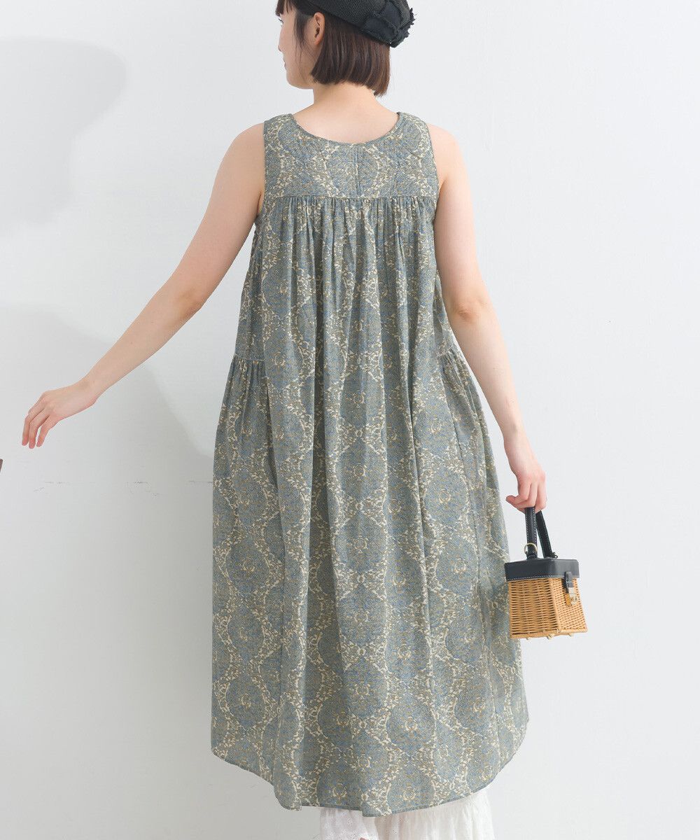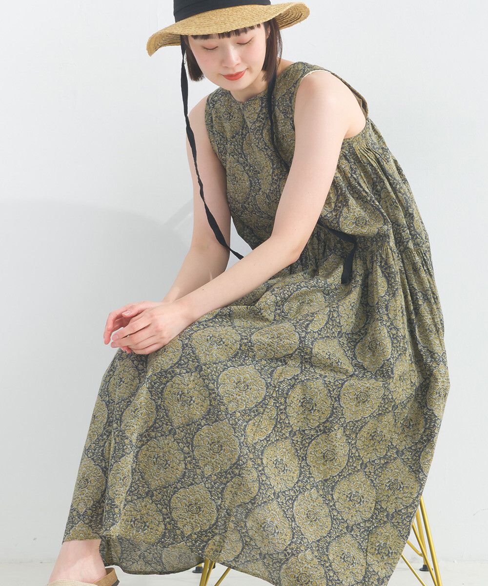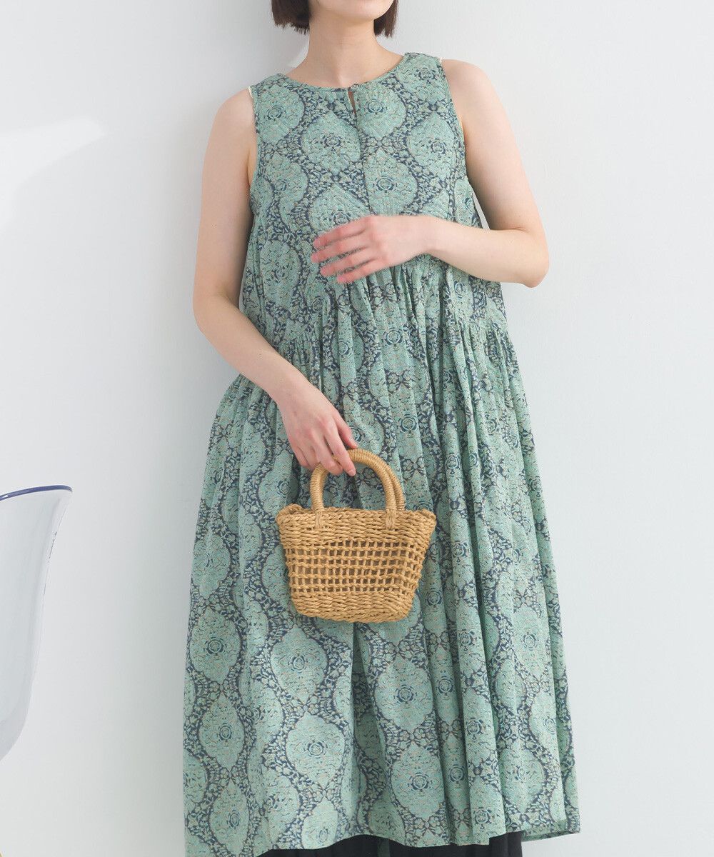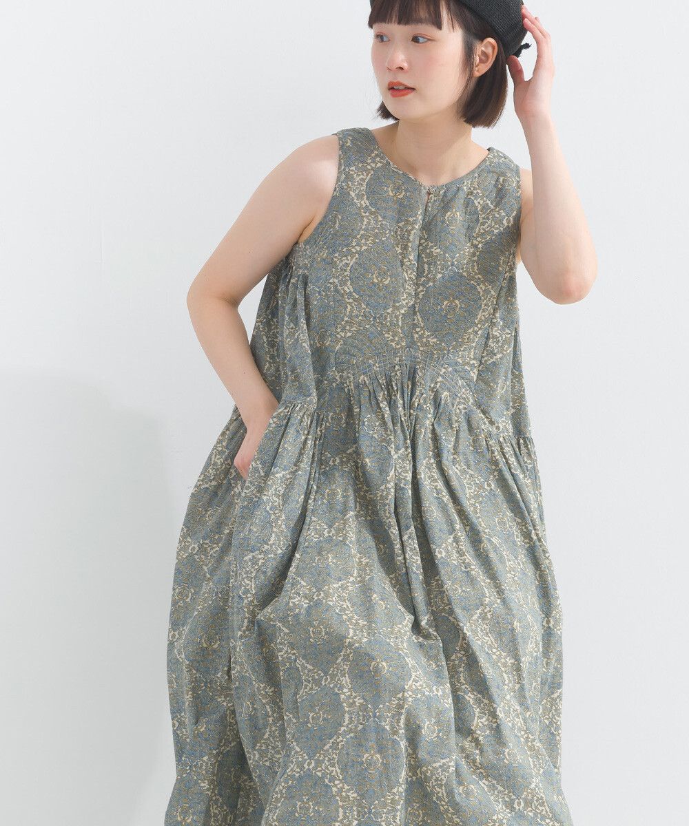 100%棉 歐風圖騰飄逸感無袖洋裝