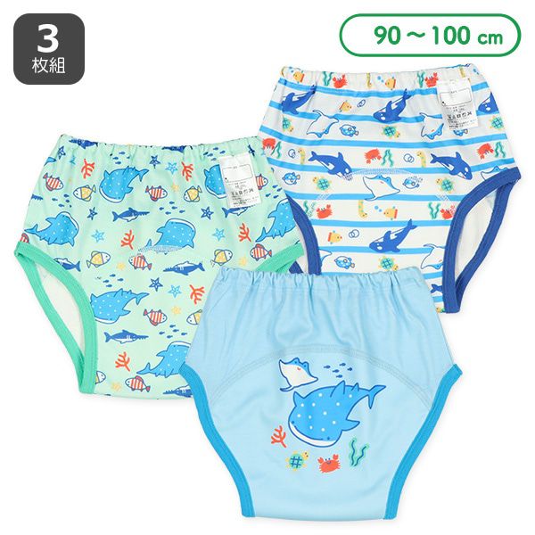 日本西松屋 - 三層密縫式學習褲3件組-海洋鯨鯊-水藍
