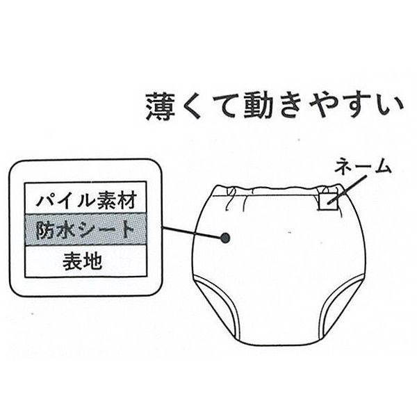 三層學習褲從最外層到親膚層則分別是:表布、防水層、毛巾層。雖然有三層,整體也輕薄不厚重。