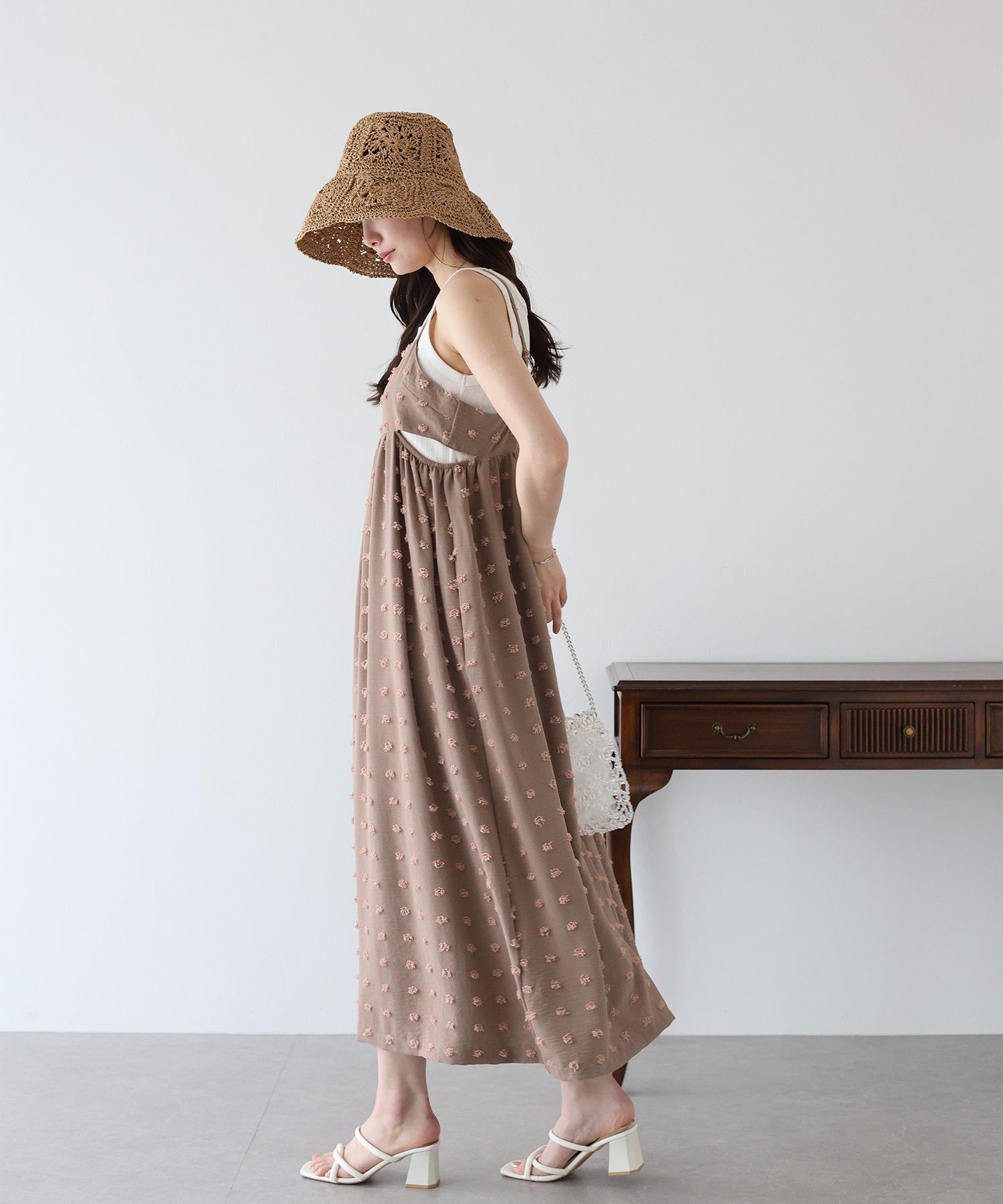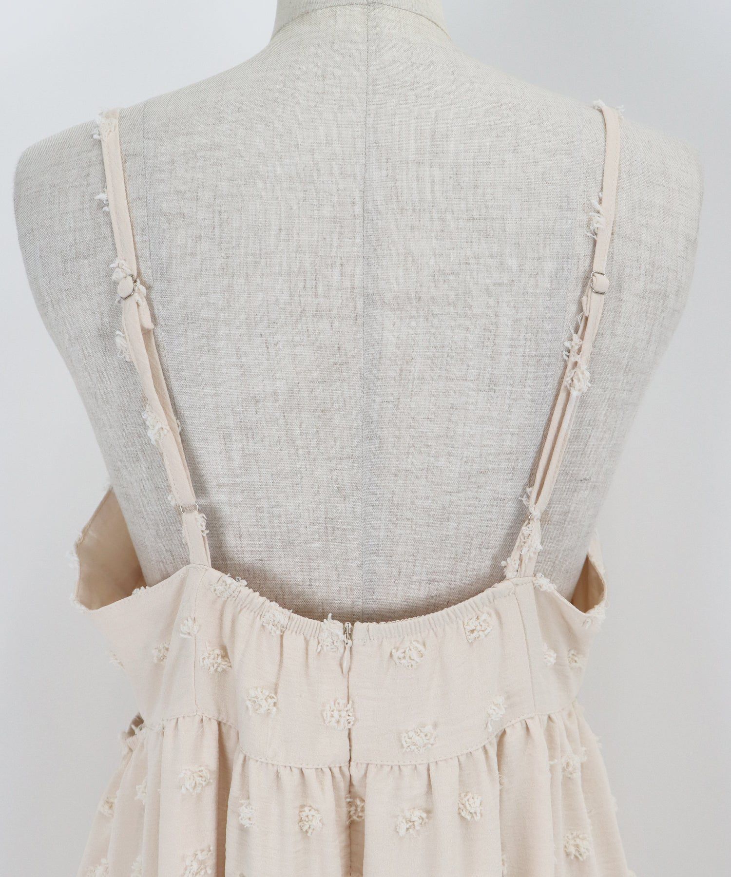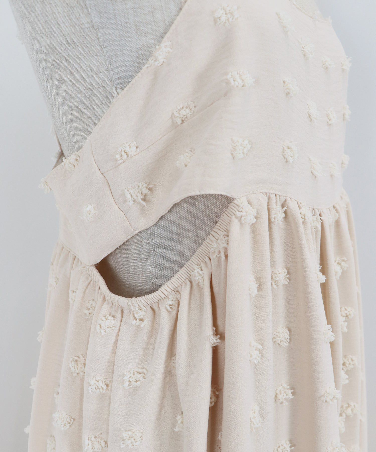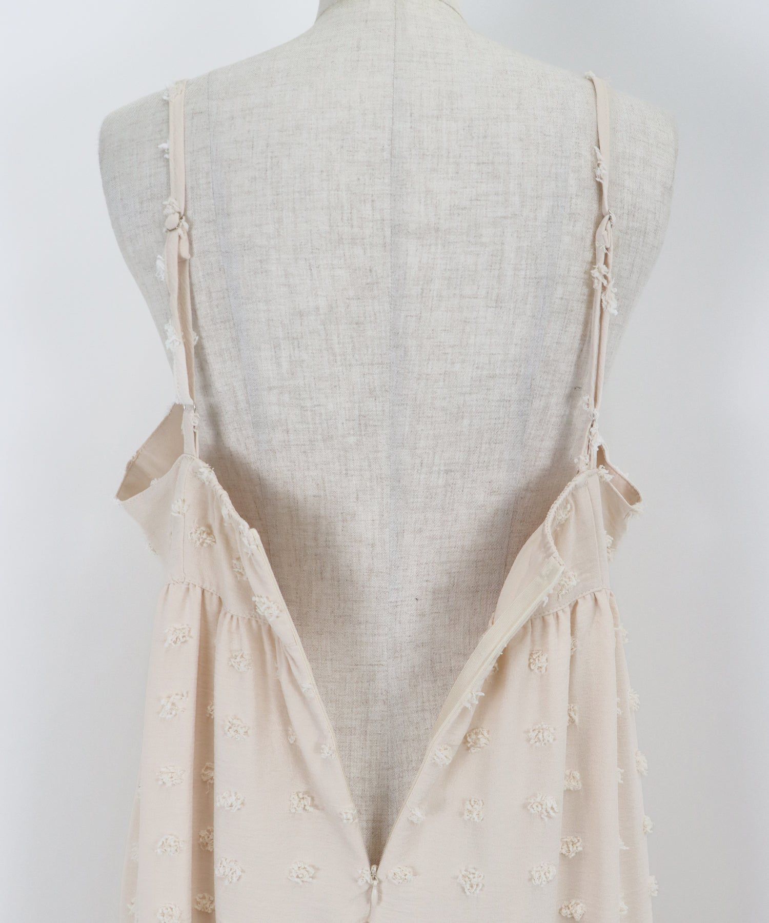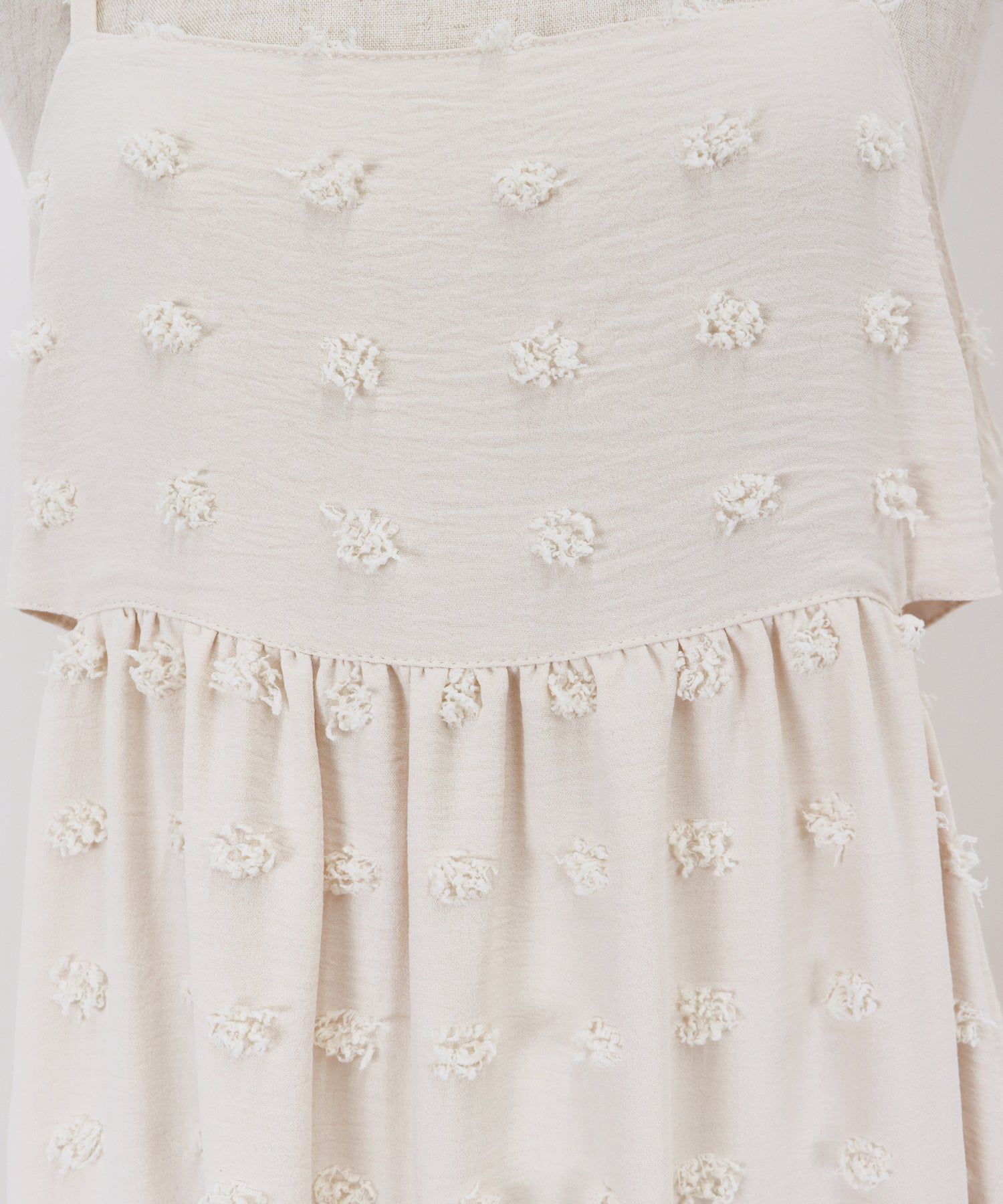 • 品名:甜美圓點緹花側腰鏤空細肩帶洋裝
