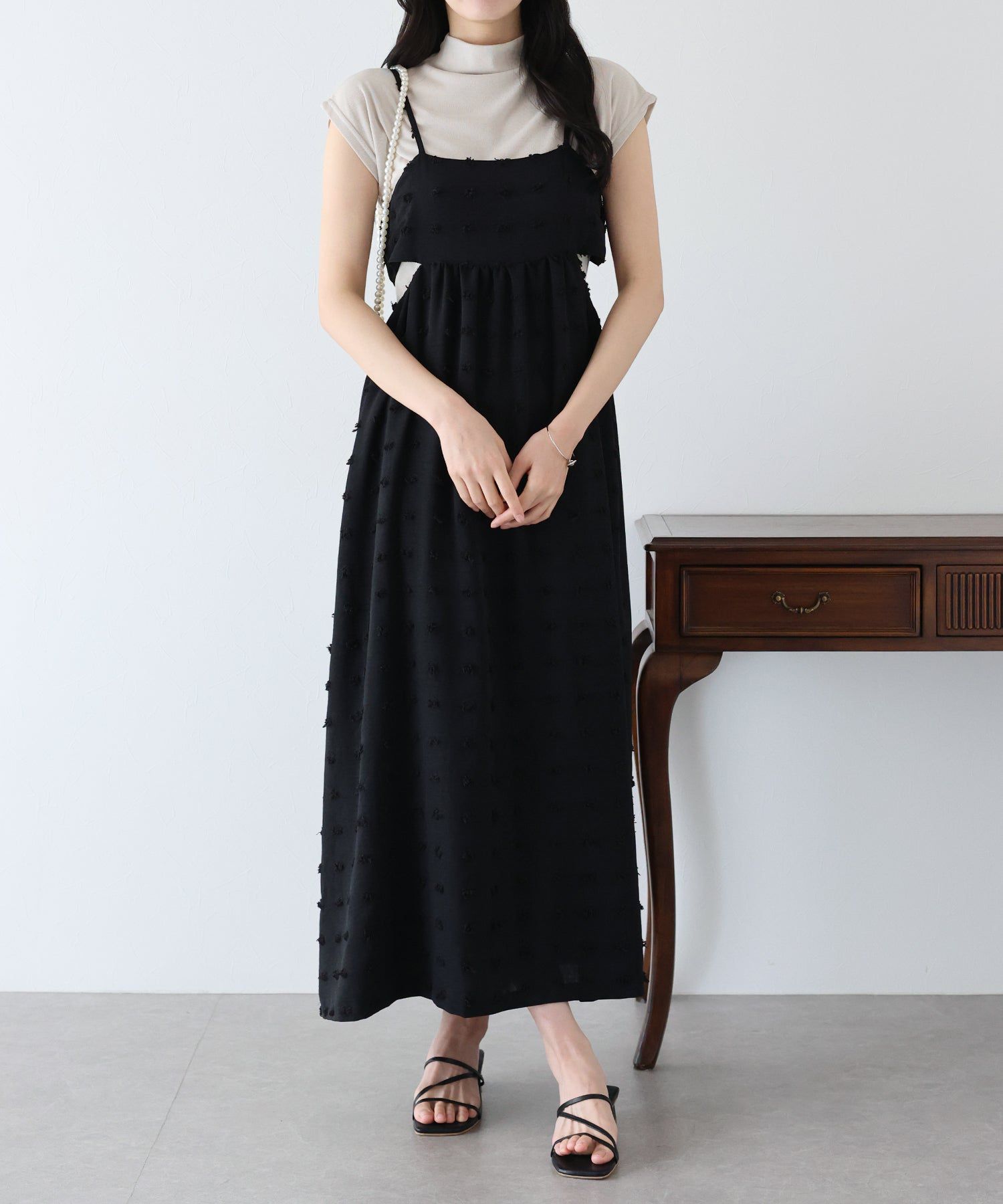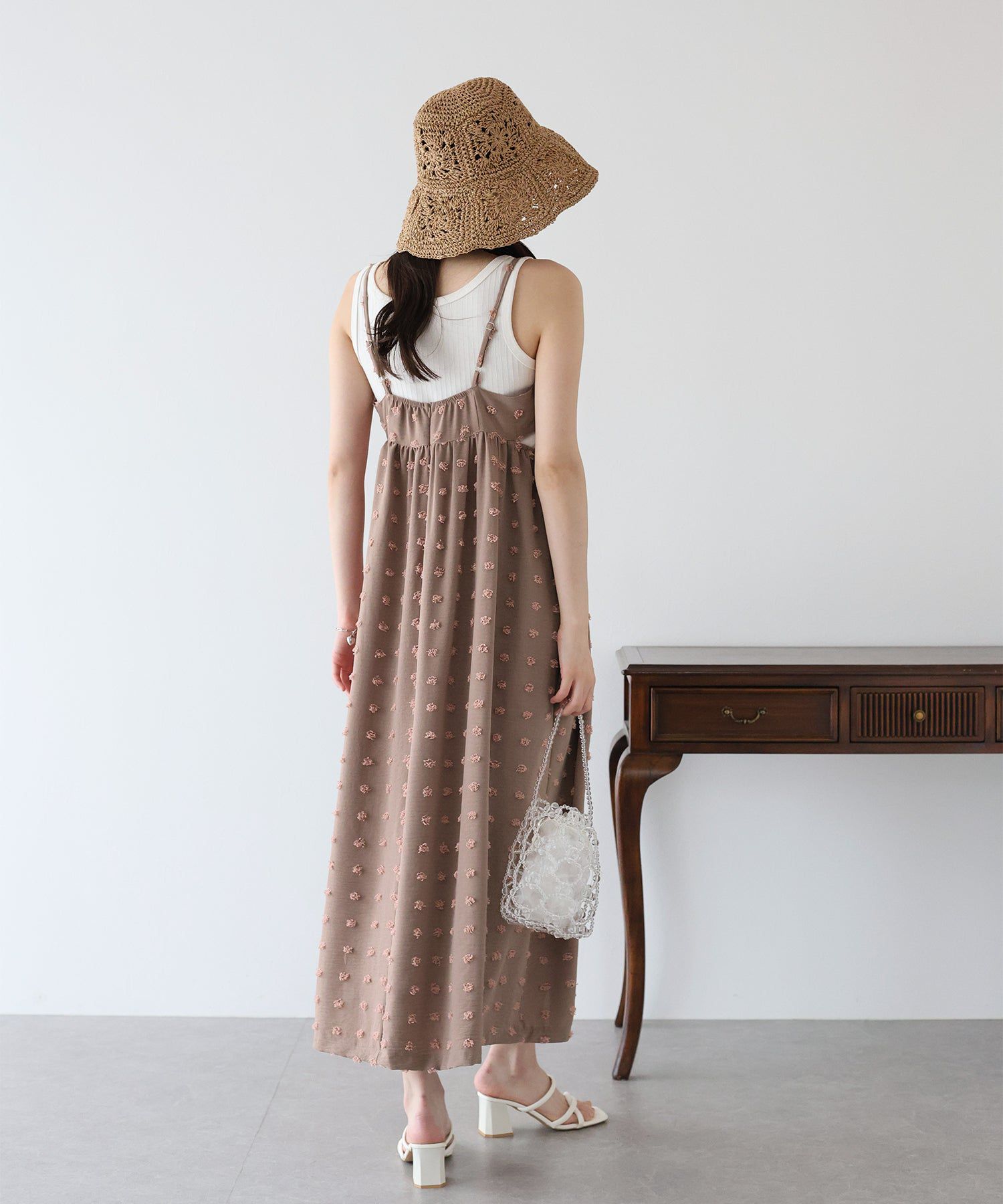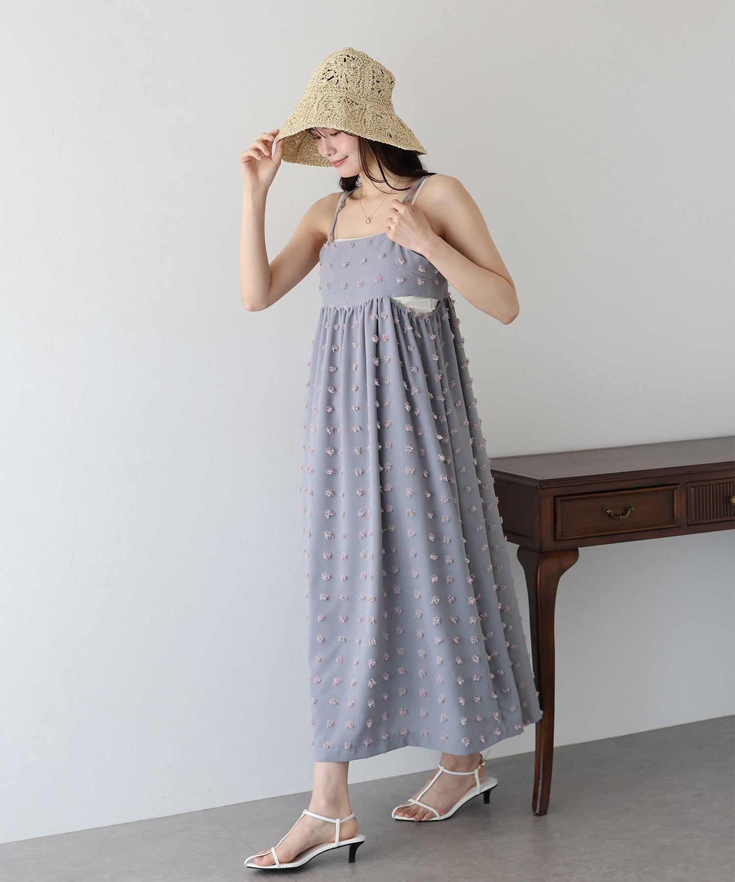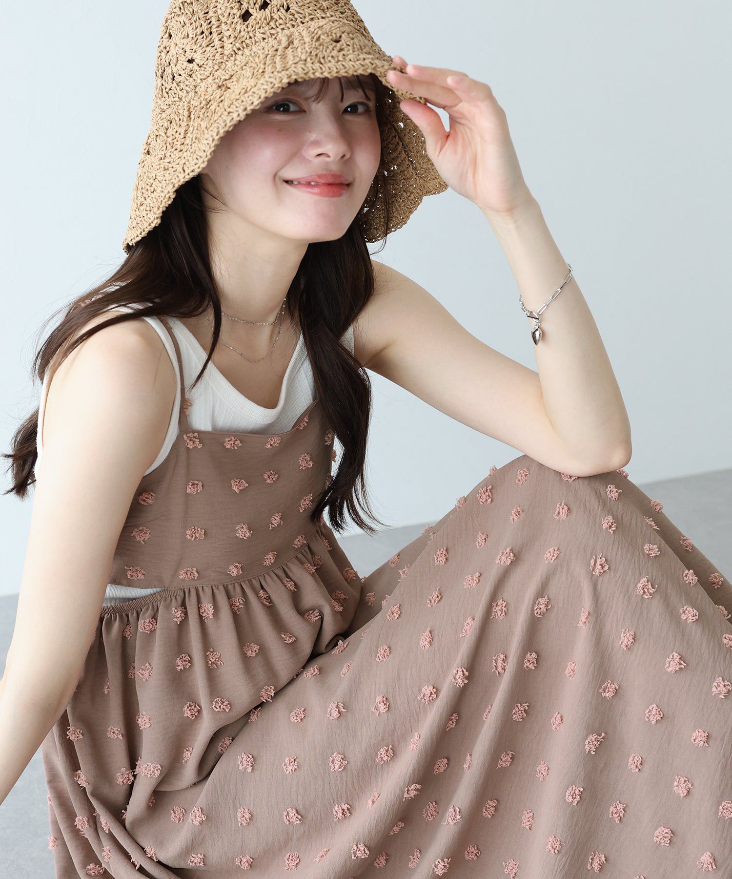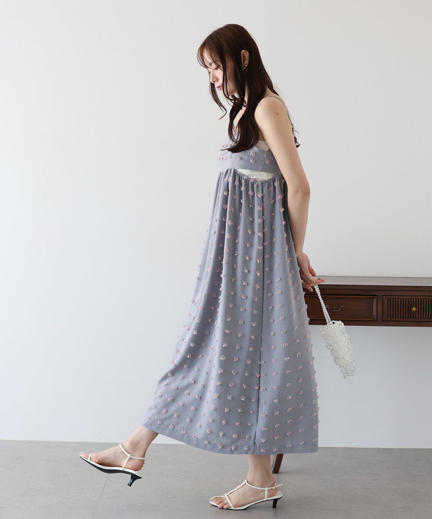 • 品名:甜美圓點緹花側腰鏤空細肩帶洋裝