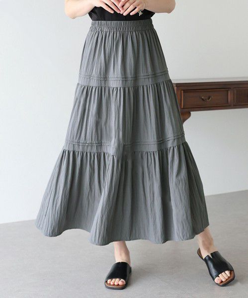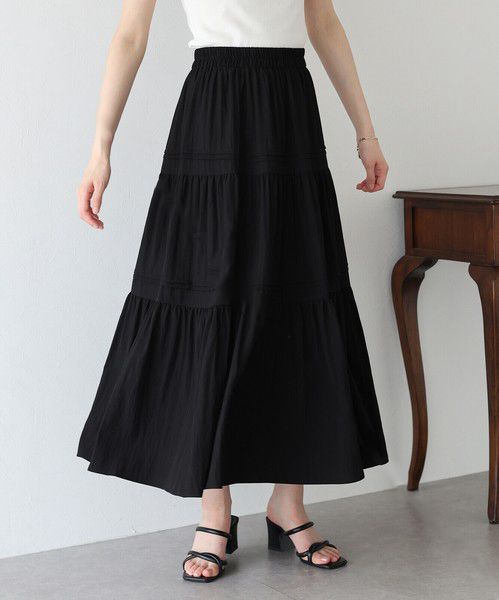 日本 BLUE EAST - 夏季嫘縈分層皺褶感長裙-黑 (M)