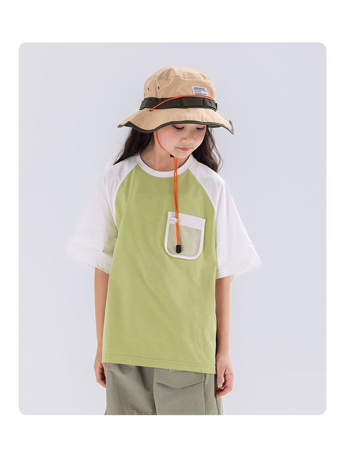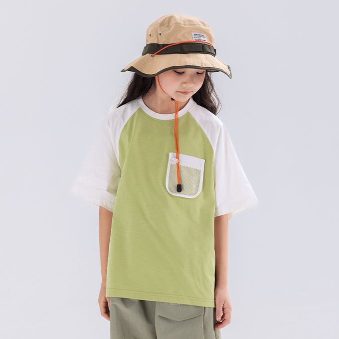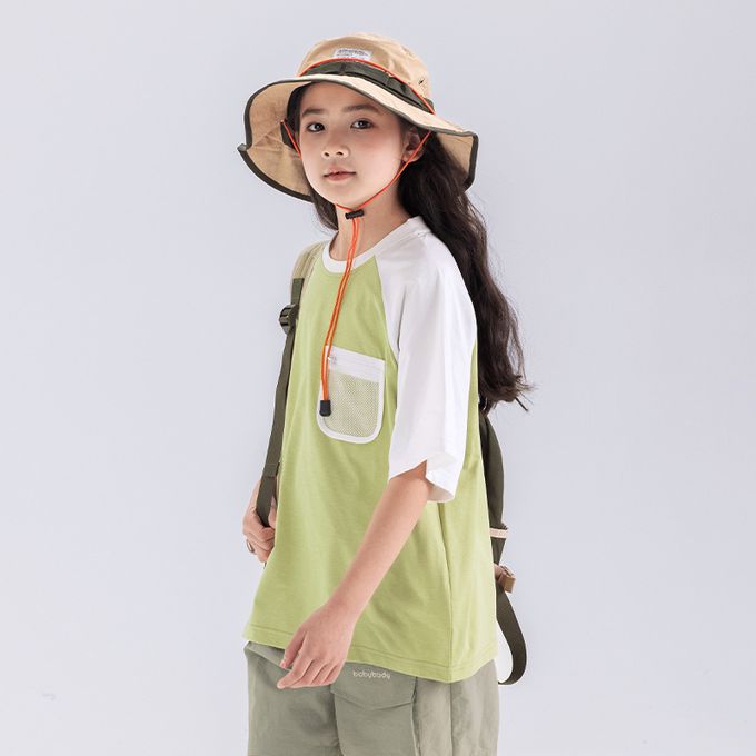 原紗防曬吸濕快乾短袖上衣-網格口袋-綠色