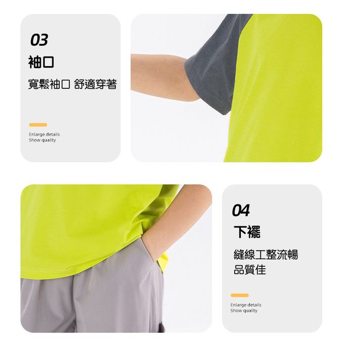 原紗防曬吸濕快乾短袖上衣-拼袖-黃色