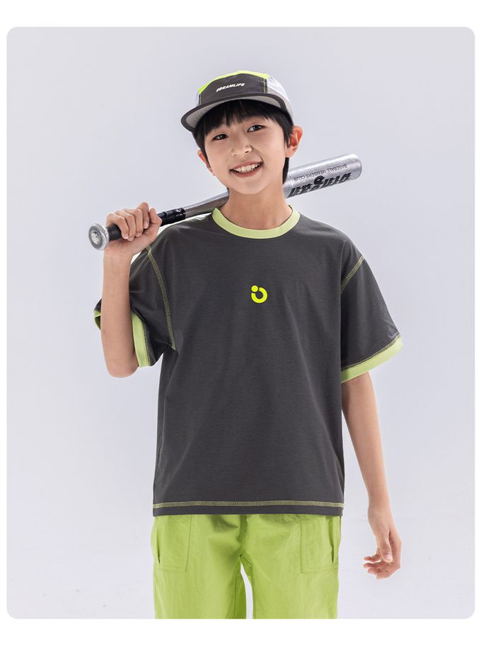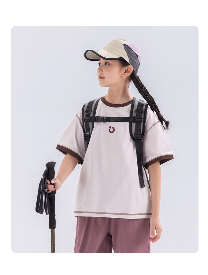 原紗防曬吸濕快乾短袖上衣-撞色滾邊-深灰