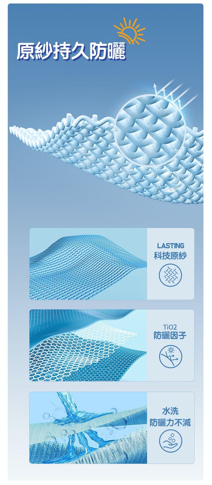 原紗持久防曬,耐水洗防曬力不減