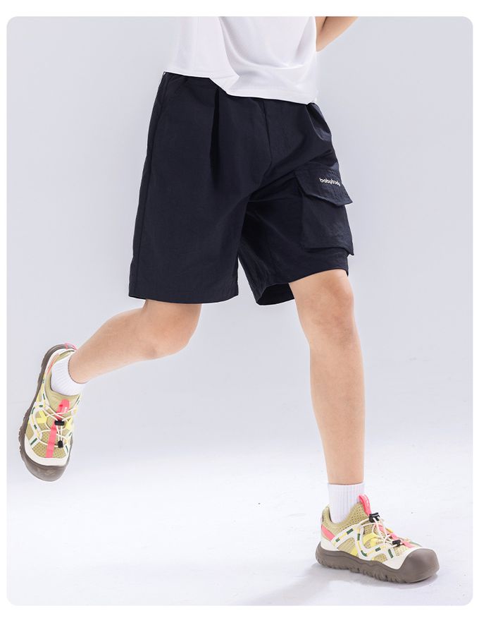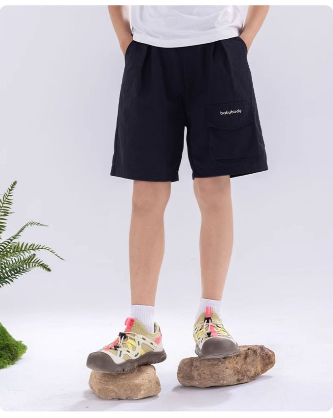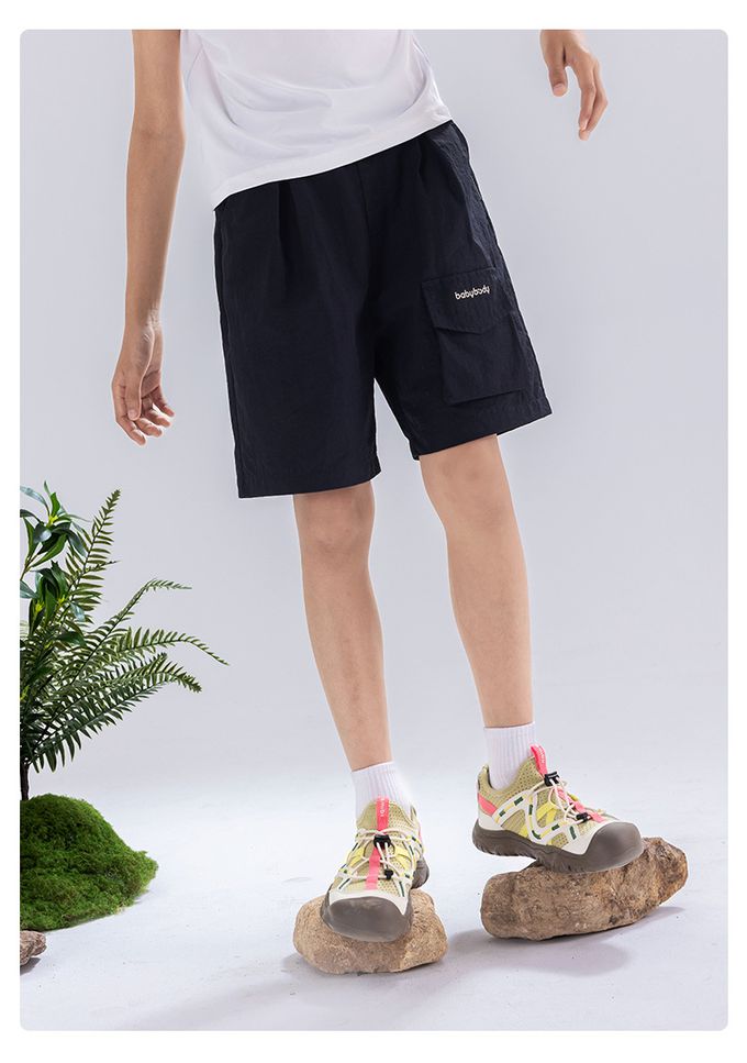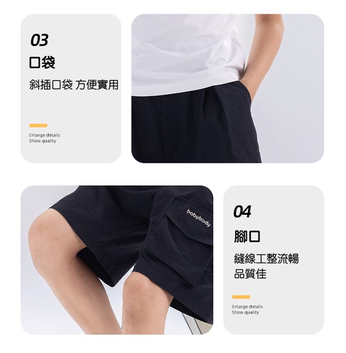 原紗防曬腰鬆緊休閒短褲-造型口袋-藏青
