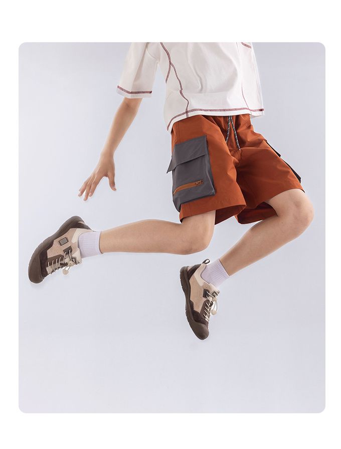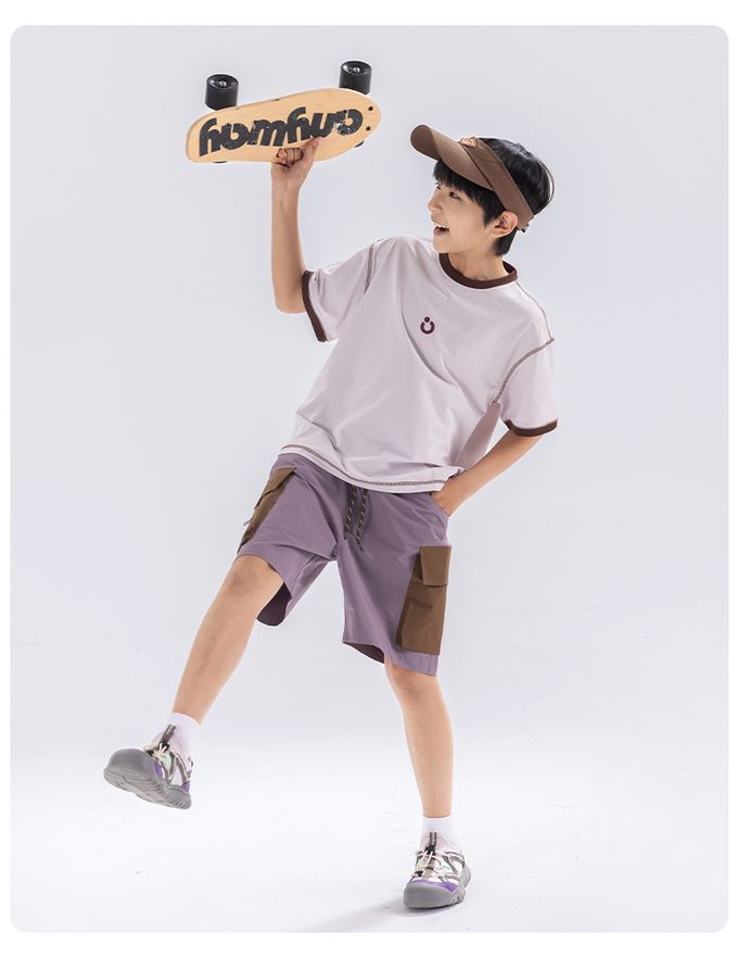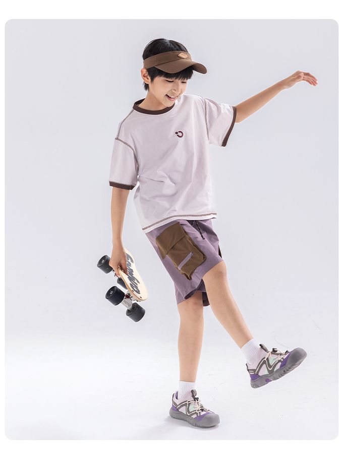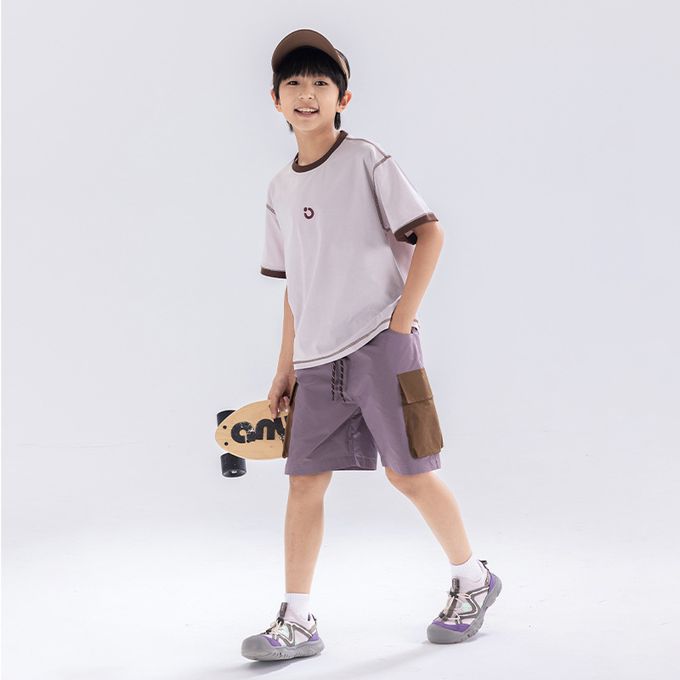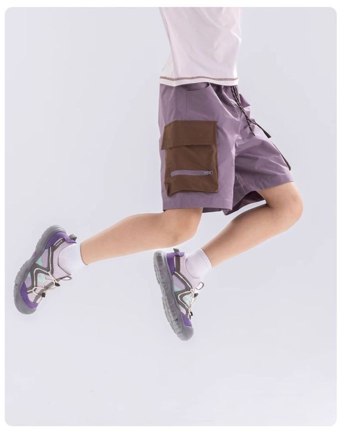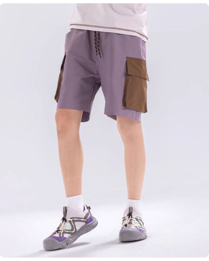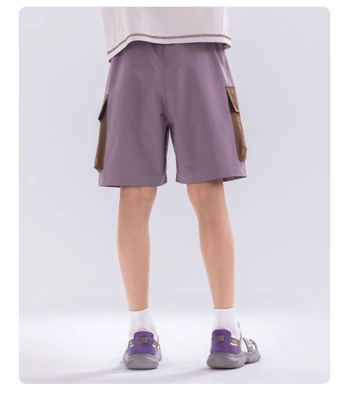 原紗防曬腰鬆緊休閒短褲-拼色口袋-紫色