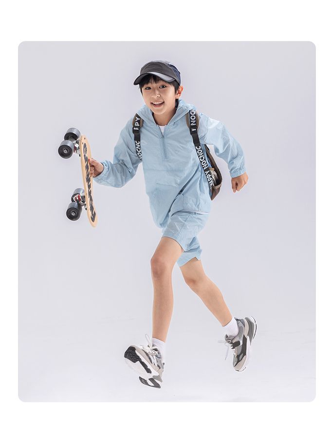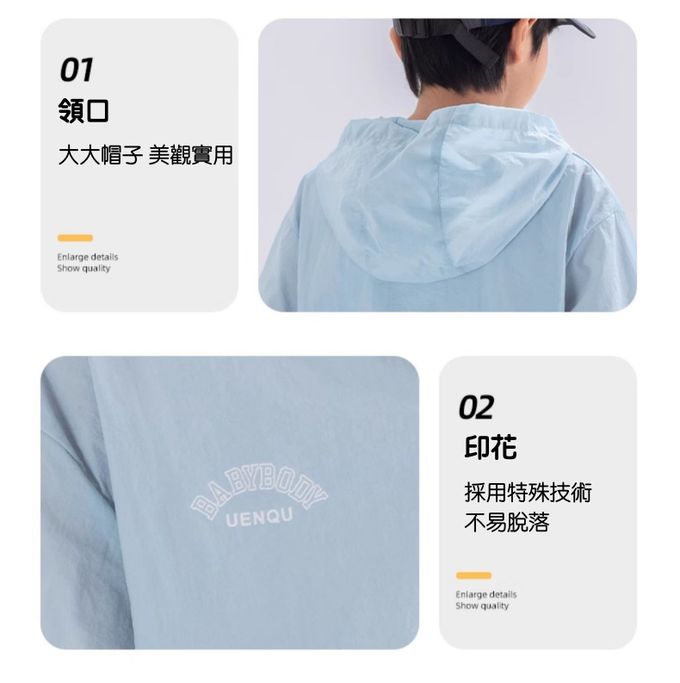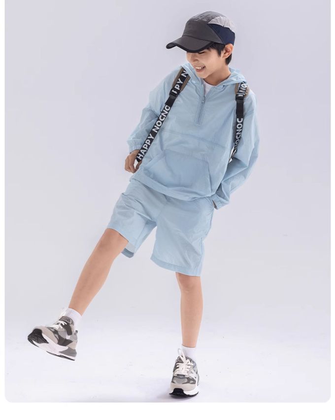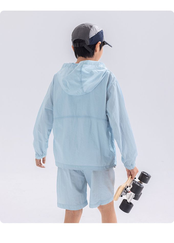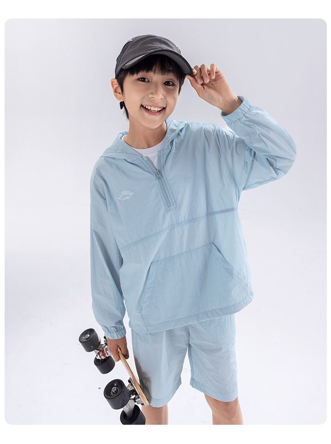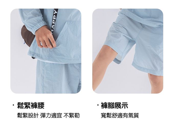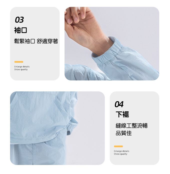 原紗防曬涼感透氣兩件式套裝-半開襟-藍色