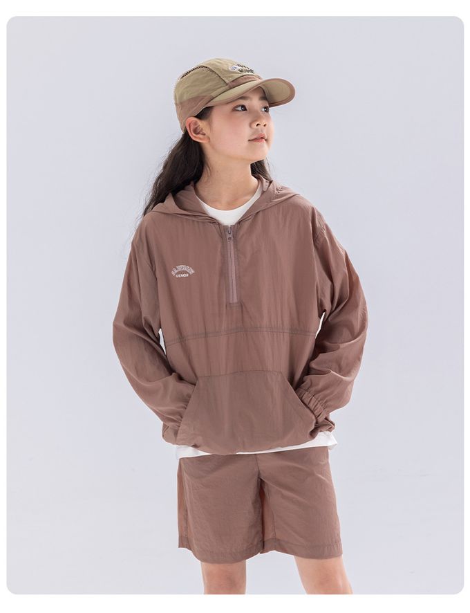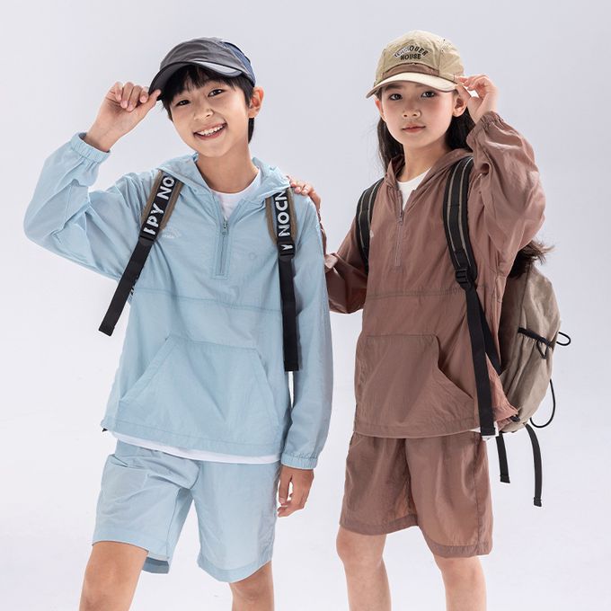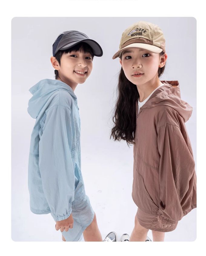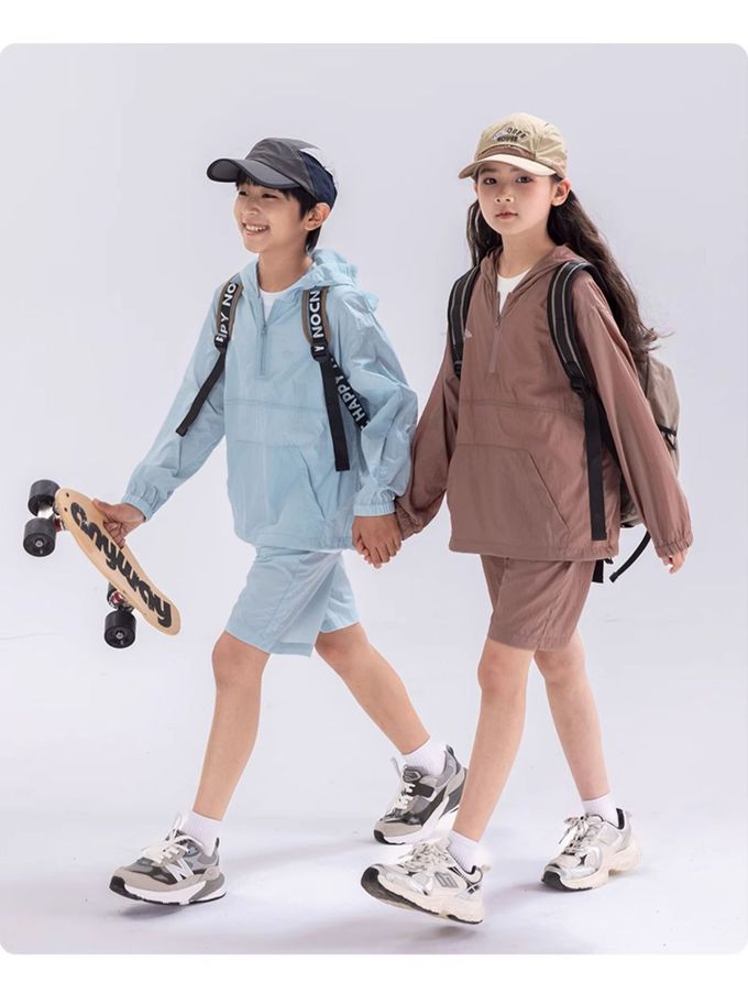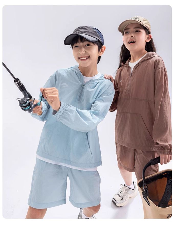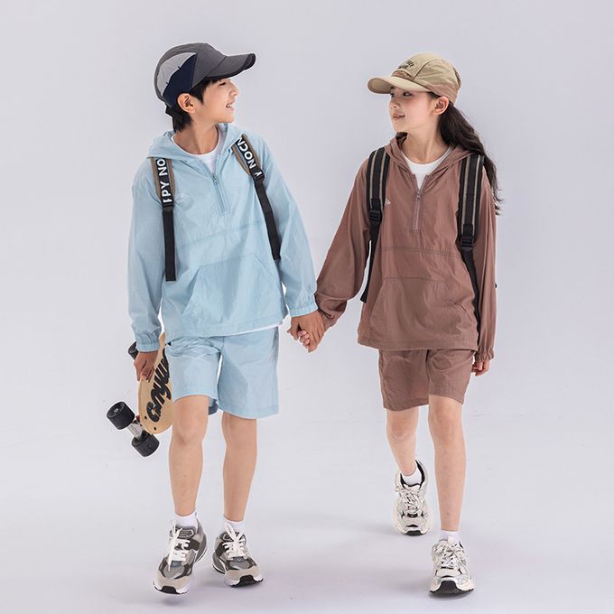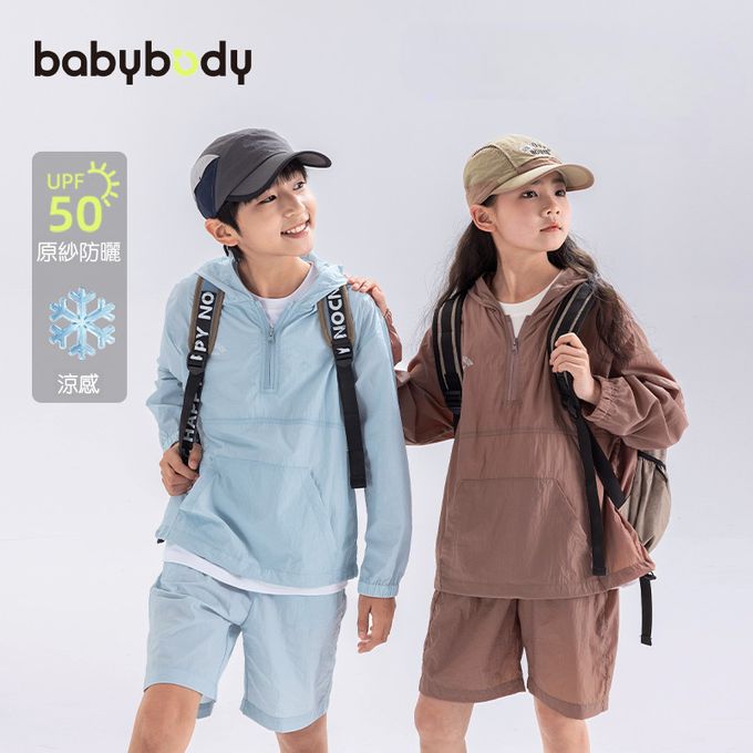 原紗防曬涼感透氣兩件式套裝-半開襟-藍色