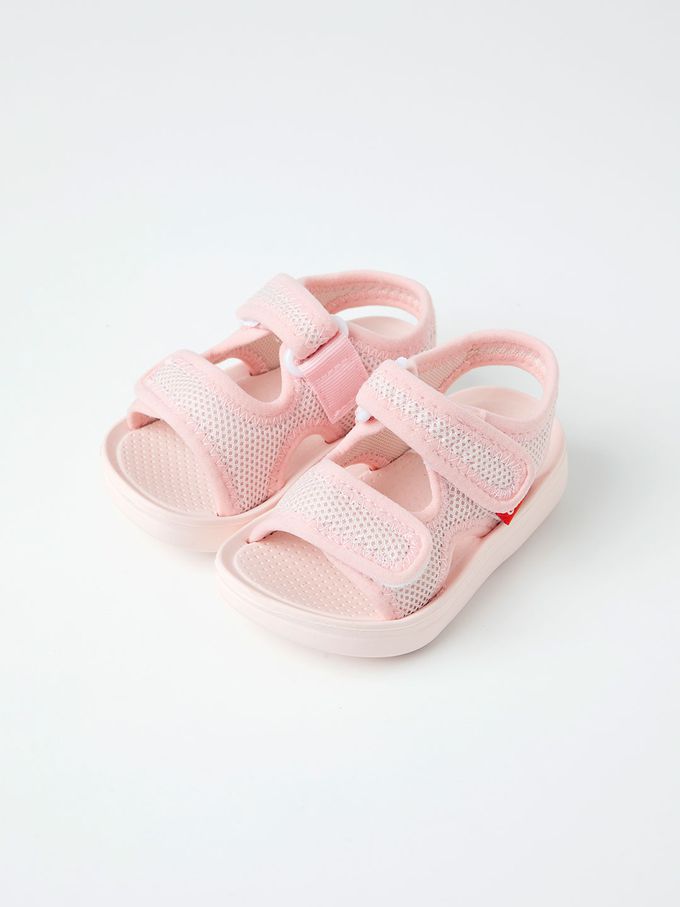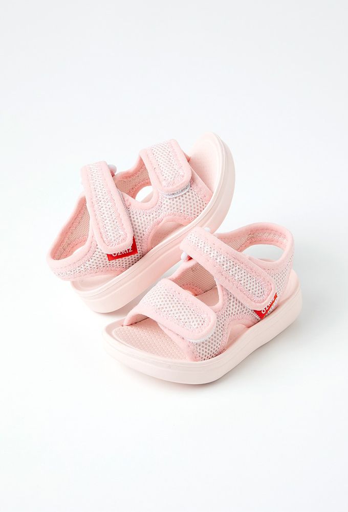 韓國 OZKIZ - 網眼透氣輕量防滑魔鬼氈涼鞋-淺粉