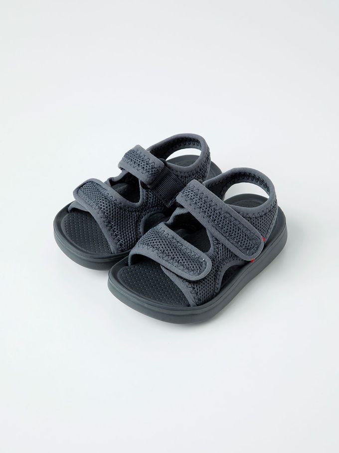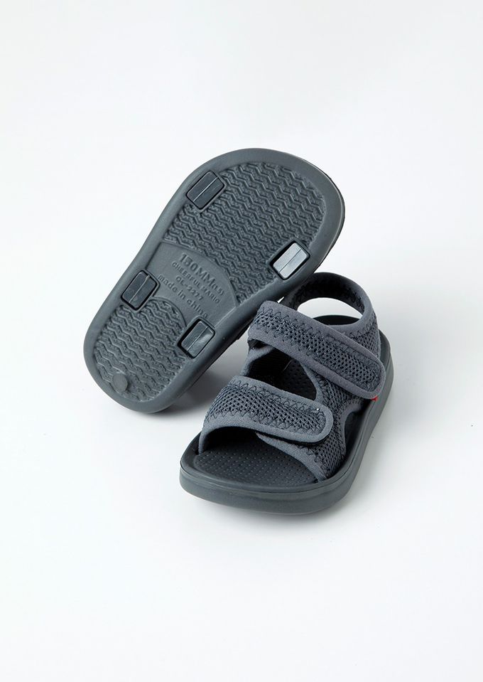 韓國 OZKIZ - 網眼透氣輕量防滑魔鬼氈涼鞋-深灰