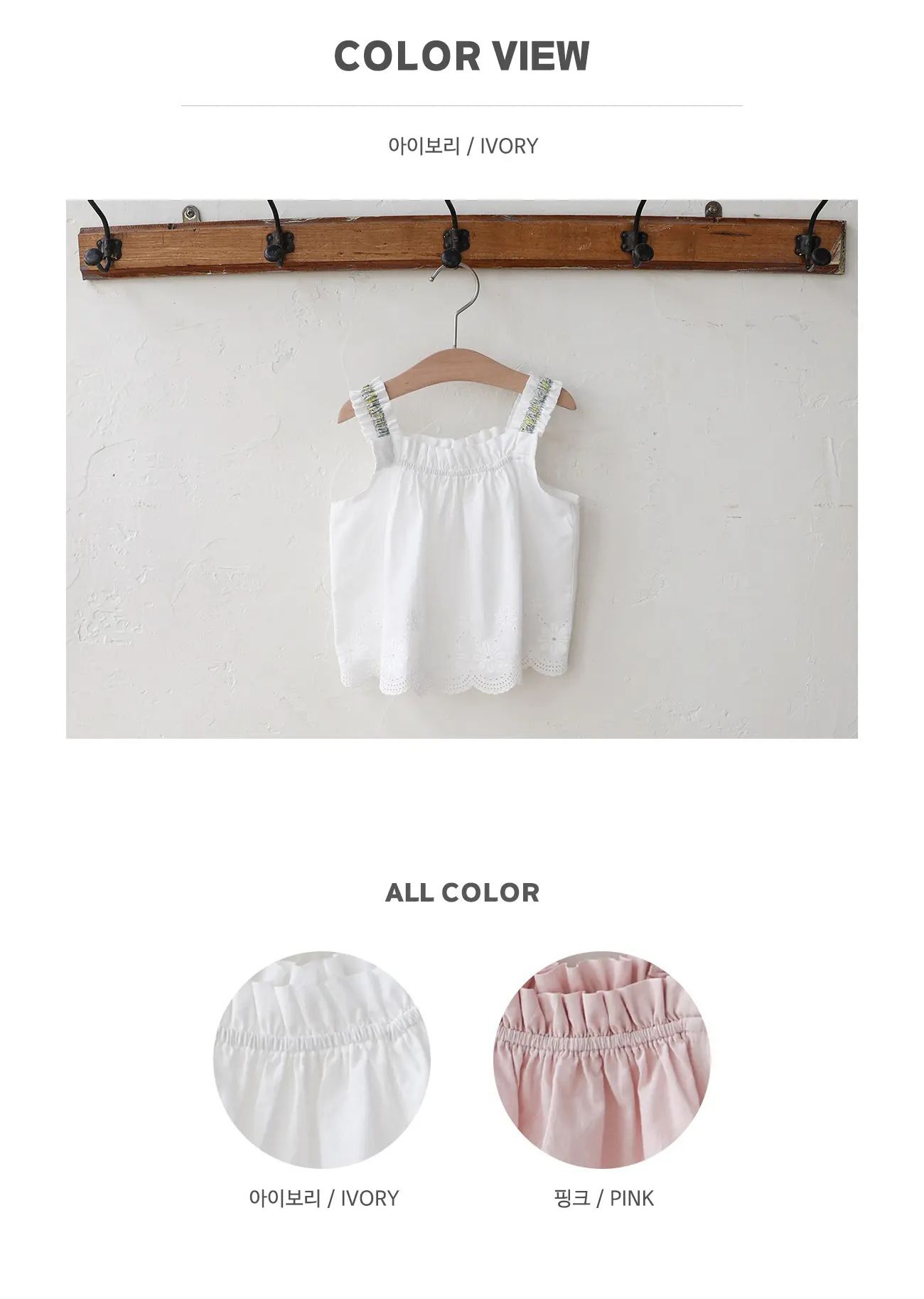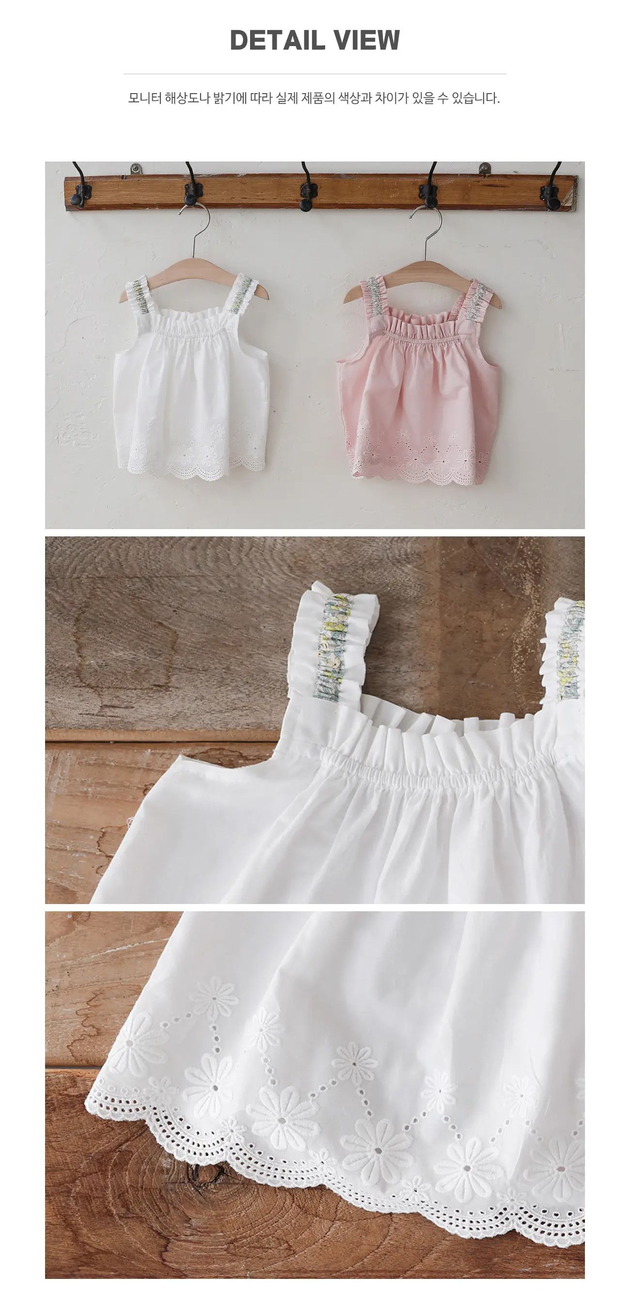 韓國 PuellaFLO - 皺褶肩帶繡花布背心上衣-白