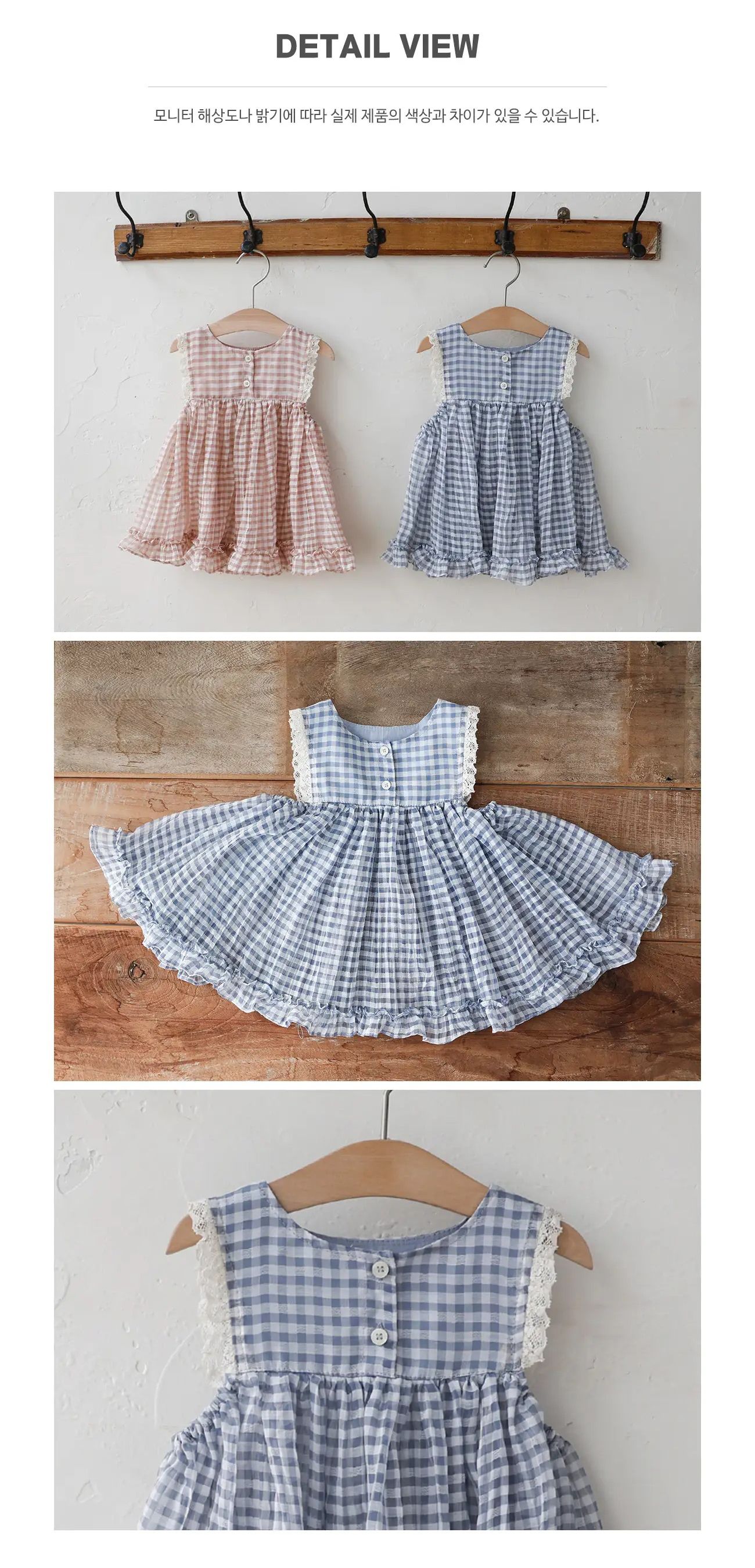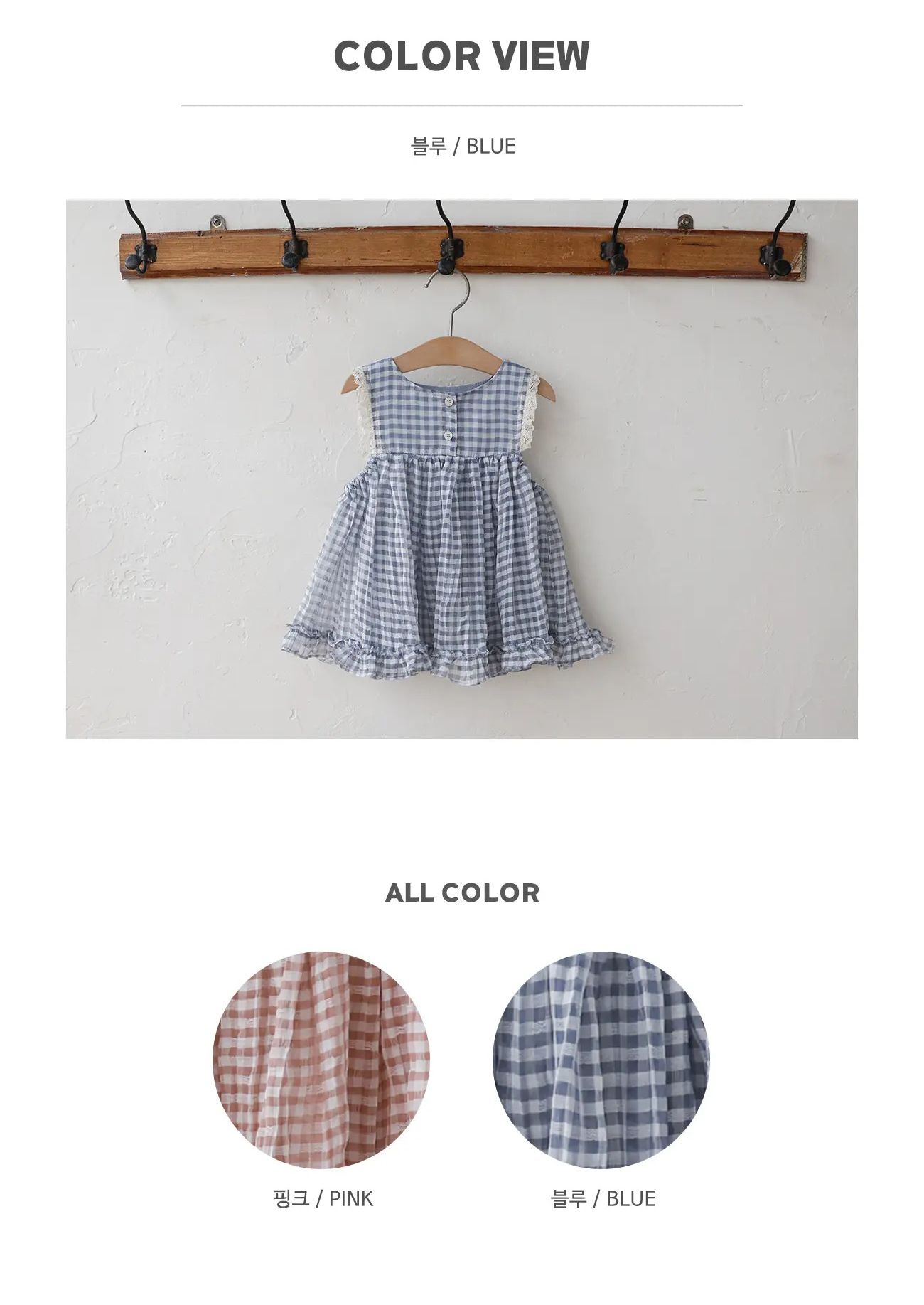 韓國 PuellaFLO - 田園格紋荷葉襬微透無袖襯衫-藍