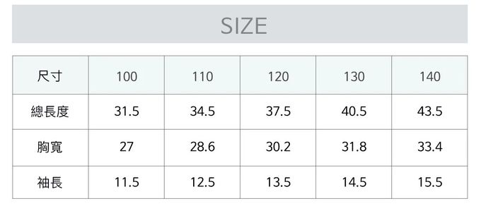 1. 尺寸表單位皆為公分(cm),實際尺寸會因布料彈性、水洗、測量起迄點等因素略有誤差。