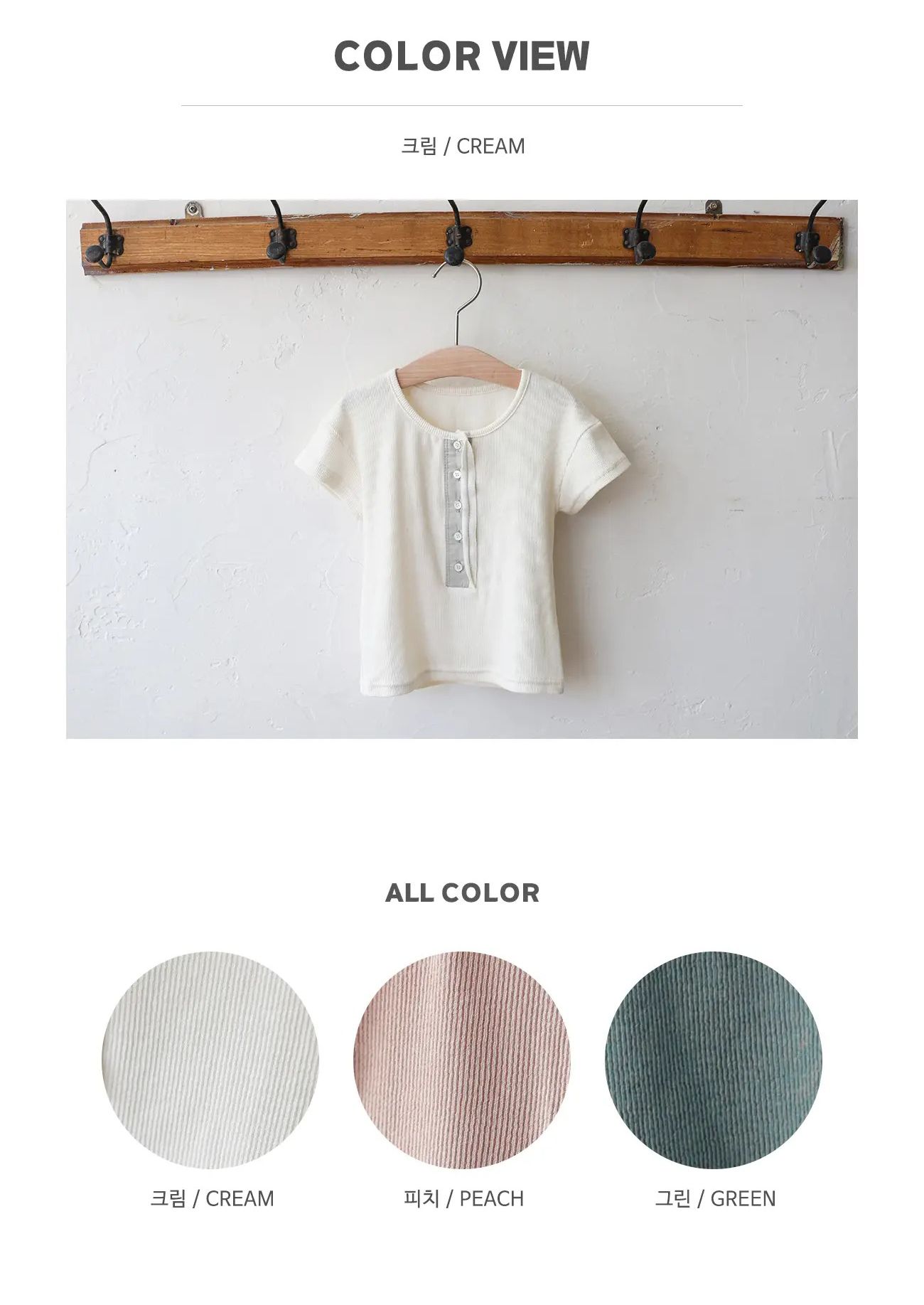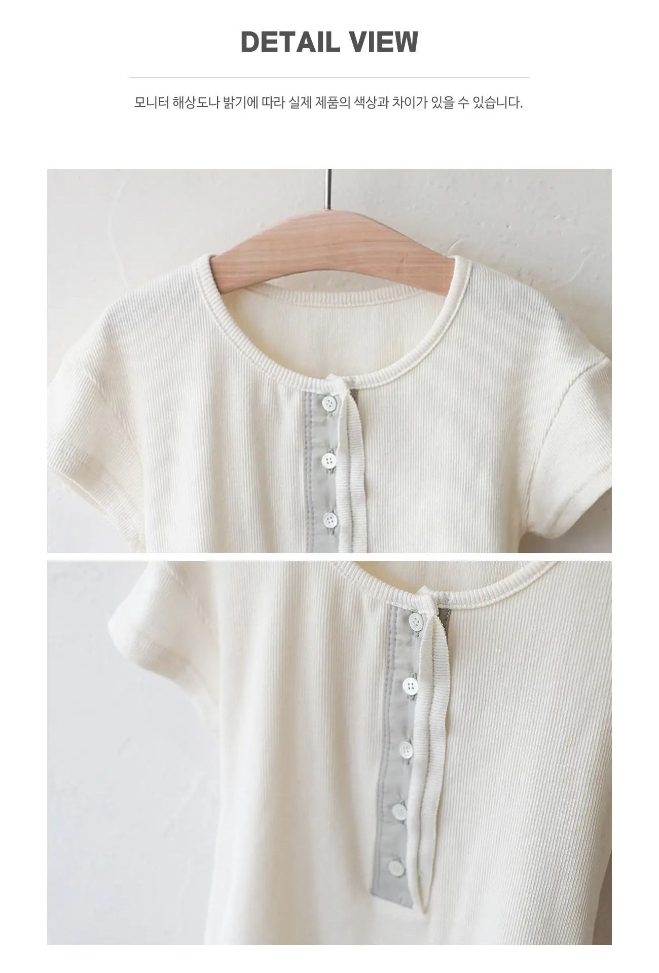 韓國 PuellaFLO - 簡約鈕釦羅紋短袖上衣-奶白