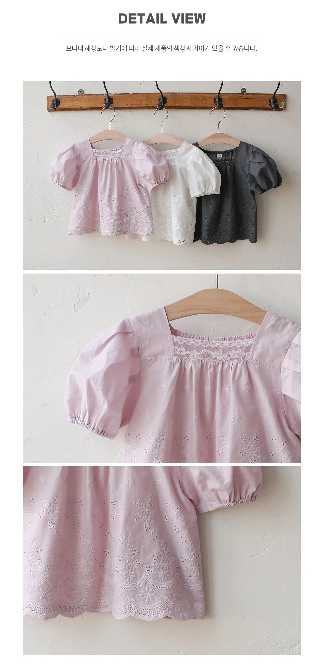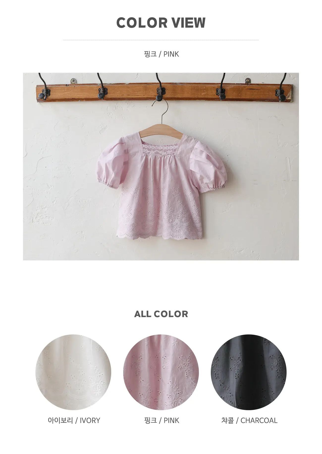 韓國 PuellaFLO - 波紋繡花方領泡泡袖襯衫-粉