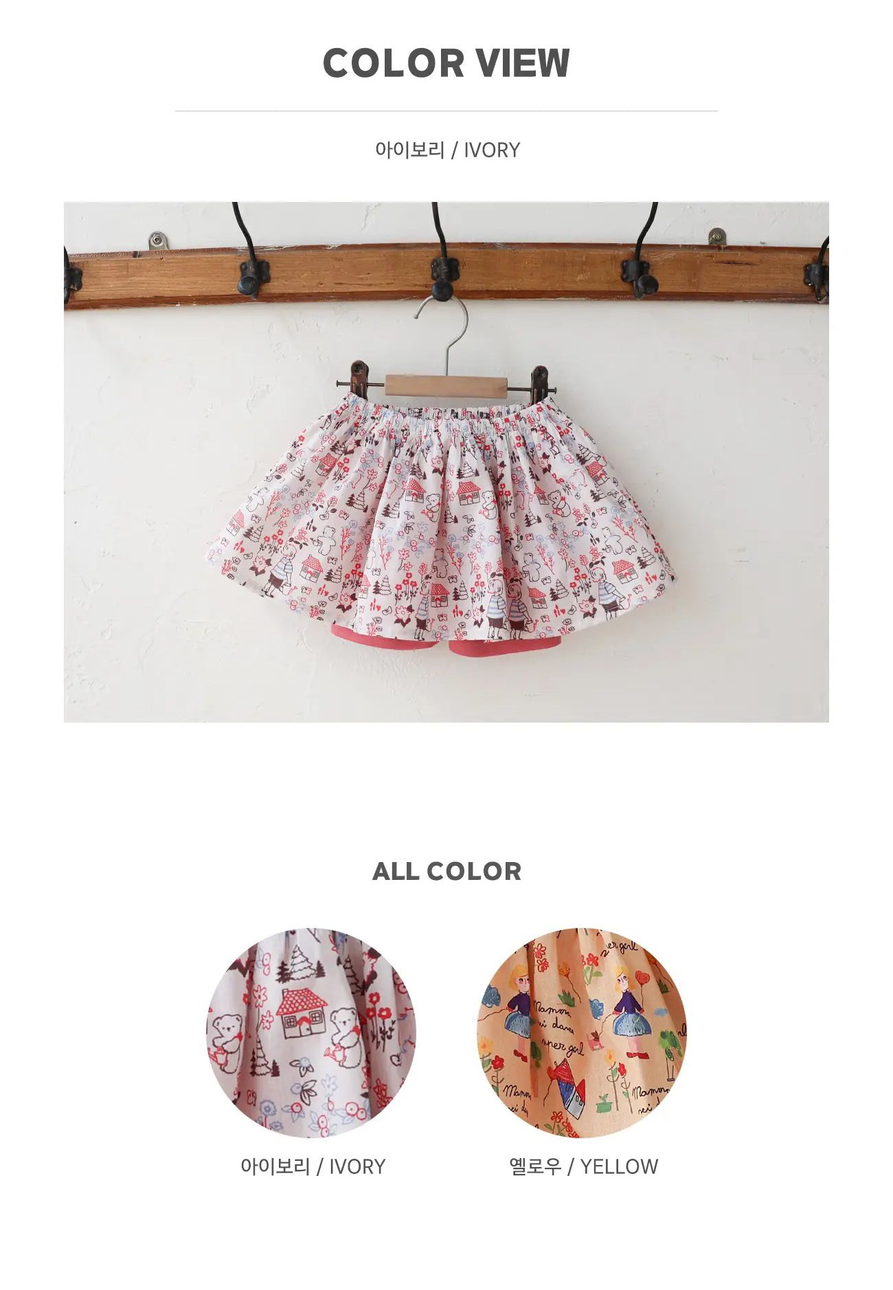 韓國 PuellaFLO - 鬆緊腰童趣彩繪內搭褲短裙-象牙白X紅