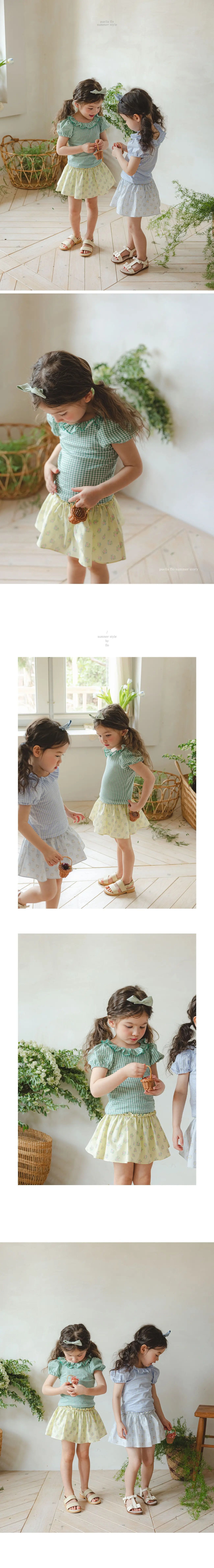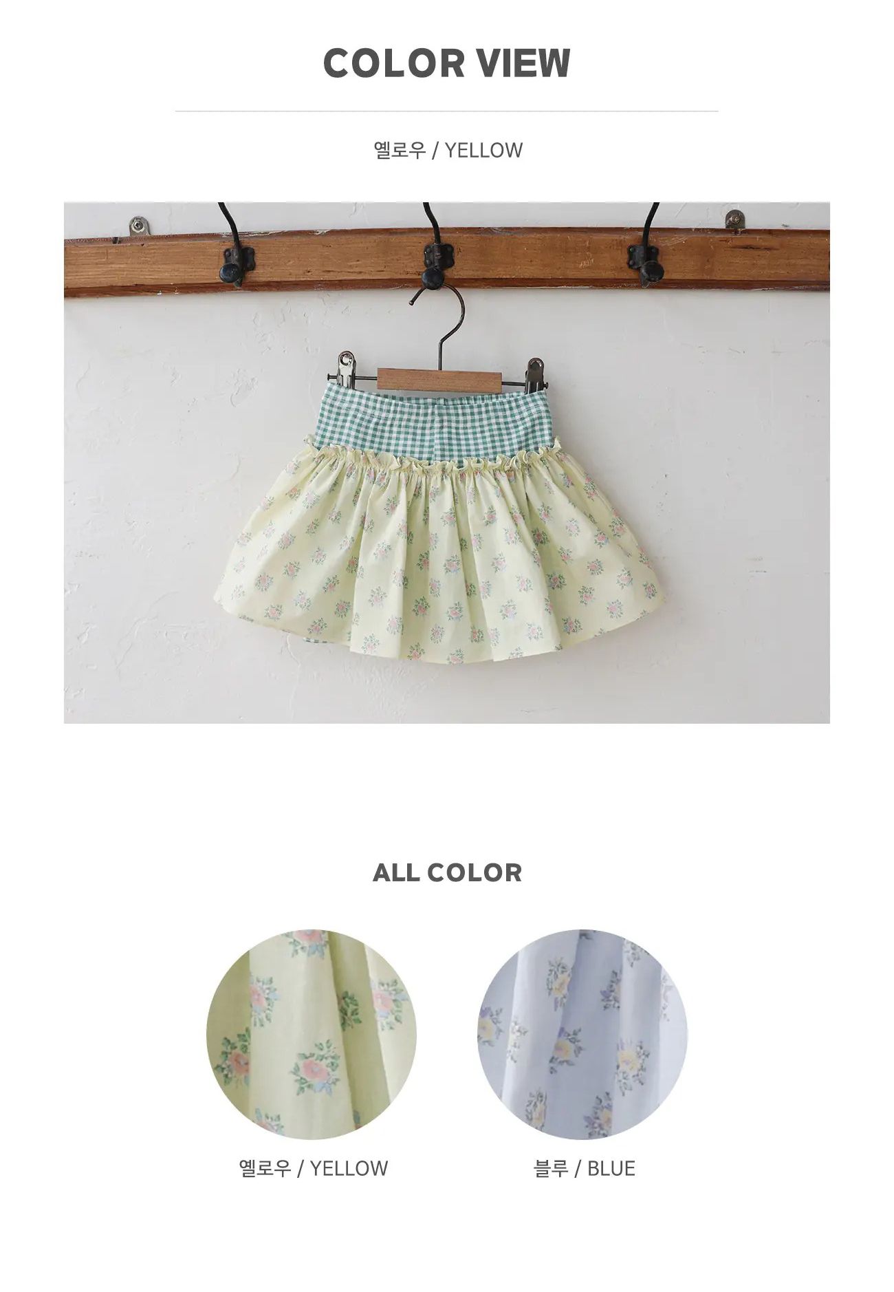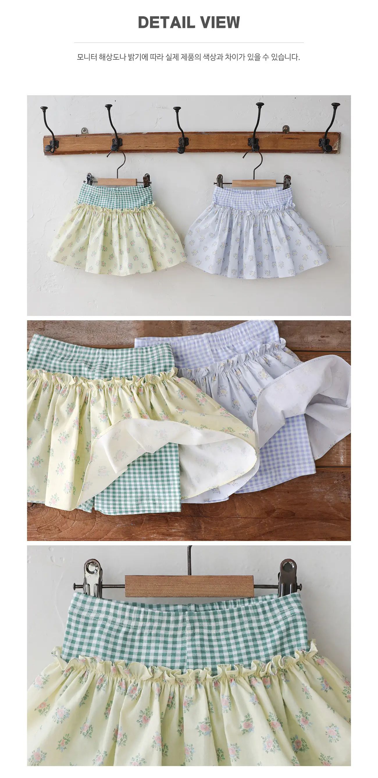 韓國 PuellaFLO - 鬆緊腰碎花裙裝飾格紋彈力褲-綠X黃