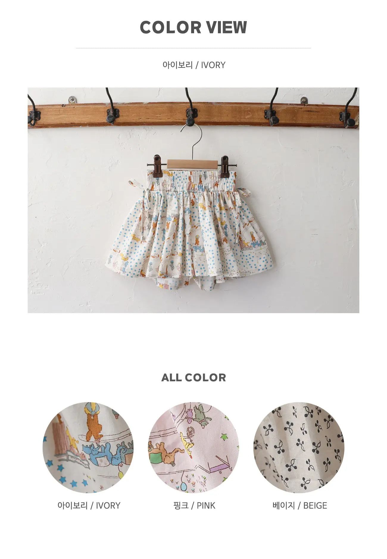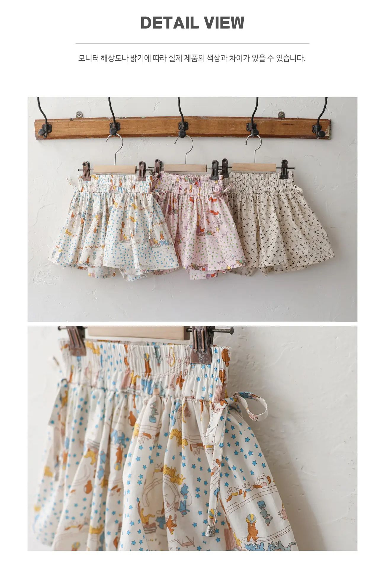 韓國 PuellaFLO - 鬆緊腰寬鬆飄逸短褲-彩繪馬戲團-白