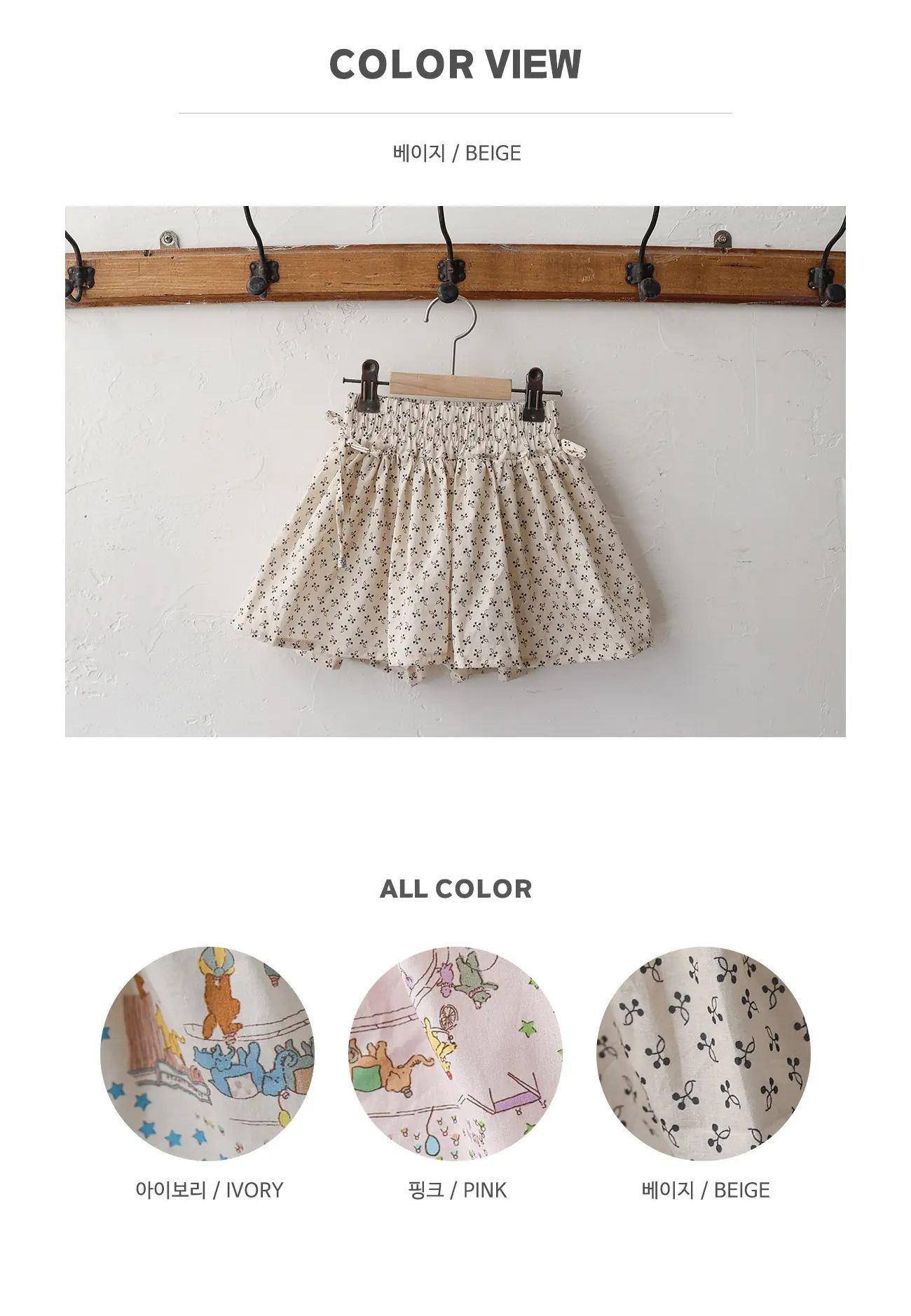 韓國 PuellaFLO - 鬆緊腰寬鬆飄逸短褲-小花紋-杏